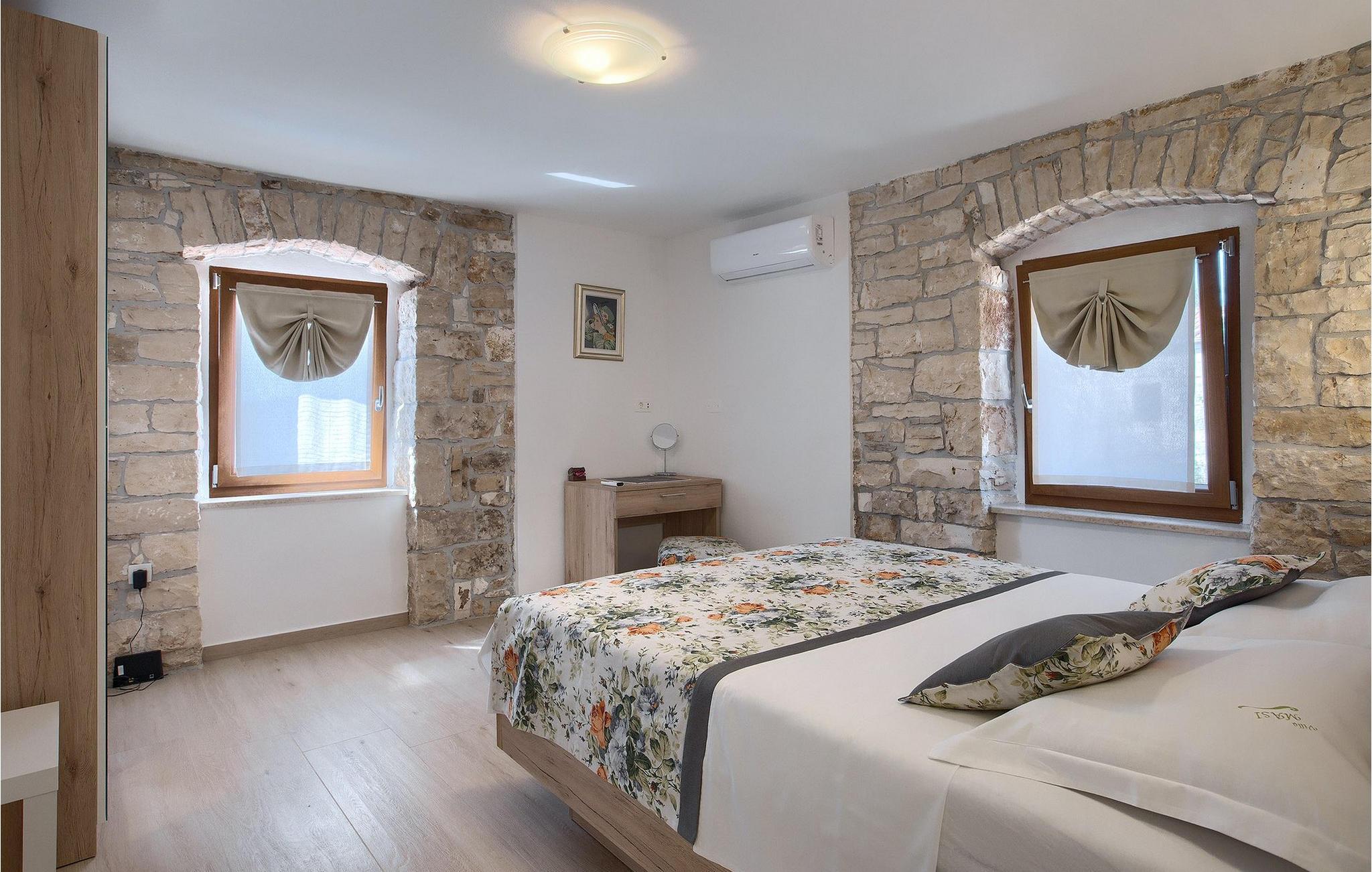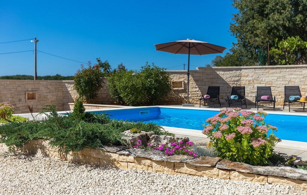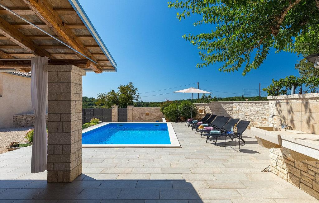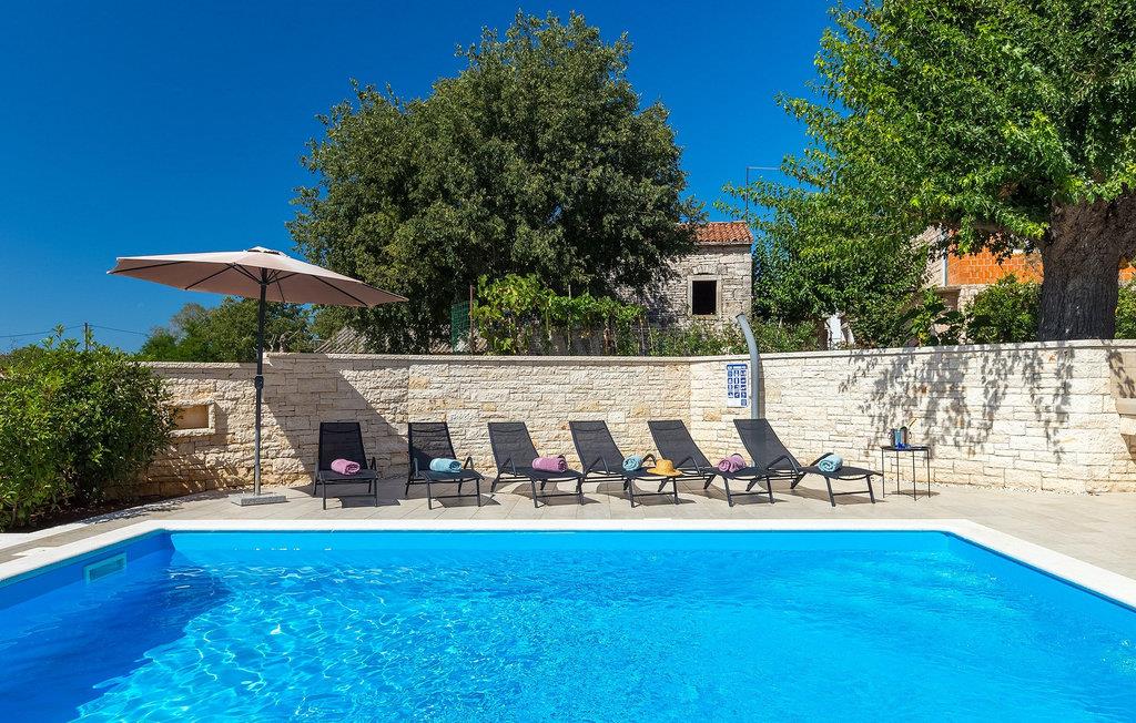 Villa Masi ist eine wunderschöne alte restaurierte Villa, die ideal für einen erholsamen Urlaub in Istrien für eine Gruppe mit 6 Gästen ist. Das Äußere und das Innere der Villa tragen mit ihren Steinwänden zum antiken Flair bei und bringen Nostalgie aus den alten Zeiten. Im Erdgeschoss der Villa Masi erwartet Sie ein offenes Wohnzimmer mit einem Esstisch für 6 Personen und einer voll ausgestatteten Küche. Im Wohnzimmer befindet sich ein bequemes Ecksofa mit Fernseher. Vom Wohnzimmer führt die Treppe in den ersten Stock, wo Sie weitere 2 Schlafzimmer mit eigenem Bad finden. Eines der Schlafzimmer verfügt über ein Doppelbett und das andere über 2 Einzelbetten, die auf Anfrage zu einem Doppelbett zusammengestellt werden können. Wenn Sie die Treppe hinaufsteigen, gelangen Sie schließlich auf den Dachboden, in dem sich das geräumige Schlafzimmer mit Doppelbett und zusätzlicher Schlafcouch, sowie ein ensuite- Badezimmer befindet. Das Äußere der Villa ist sehr geräumig und verfügt über einen schönen Pool zum erfrischen und Liegestühle. Die mediterranen Pflanzen rund um den Hof runden den Gesamteindruck der Villa ab.Diese Villa befindet sich in dem kleinen Dorf Kurili in der Gemeinde Kanfanar im Inneren Istriens. Hier finden Sie mittelalterliche Ruinen von Dvigrad und unberührte Natur der Bucht von Lim sowie zahlreiche archäologische Stätten. Diese Region gilt als Heimat des istrischen Ochsen, der einst fast vom Aussterben bedroht war und Fuzi - die Königin der istrischen Nudeln. Istrischer Ochse und Fuzi sind ein zentraler Bestandteil von Kanfanars größter Veranstaltung - Jakovlje, bei der Sie Istrien so erleben können, wie es einmal war.