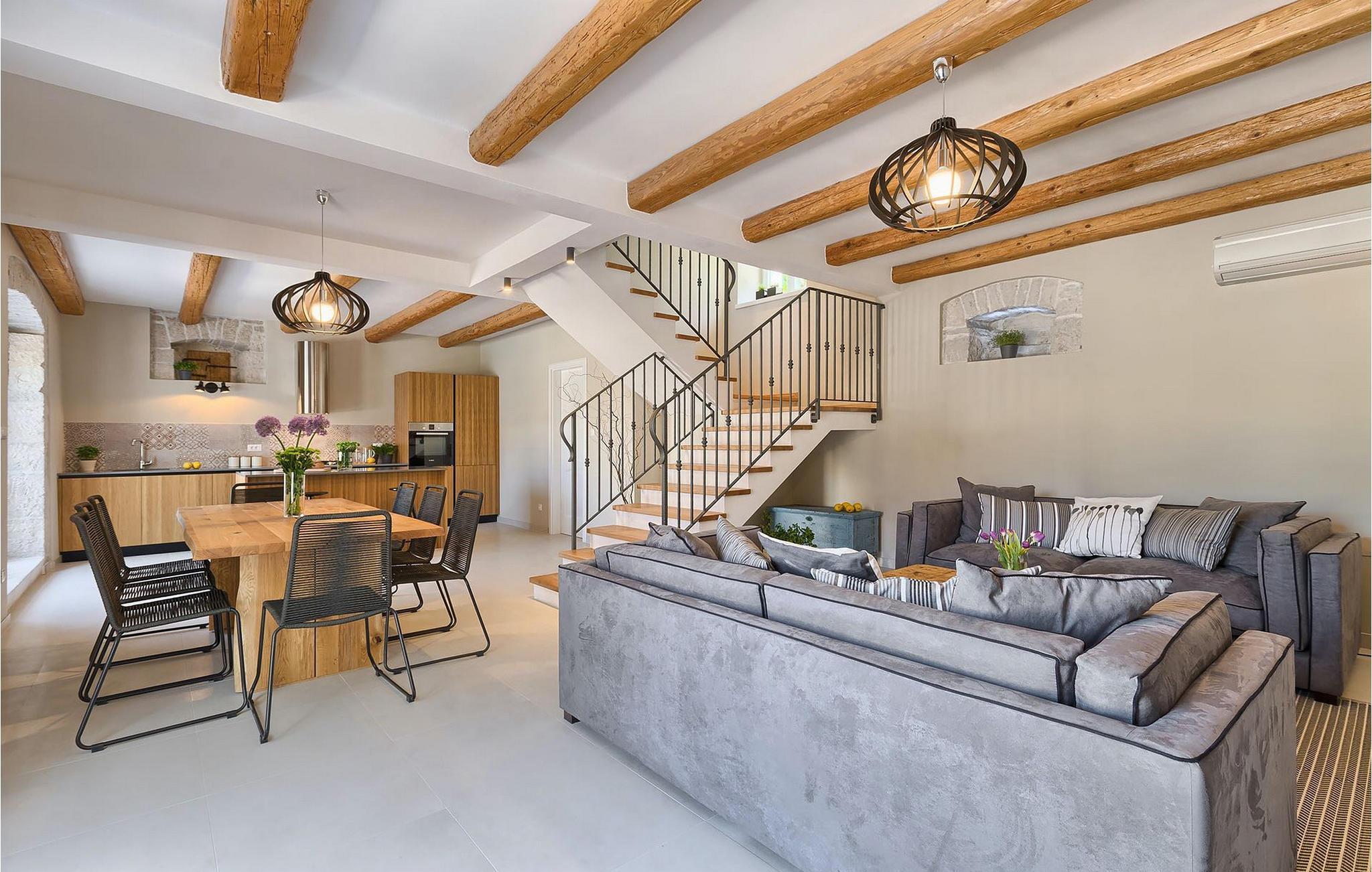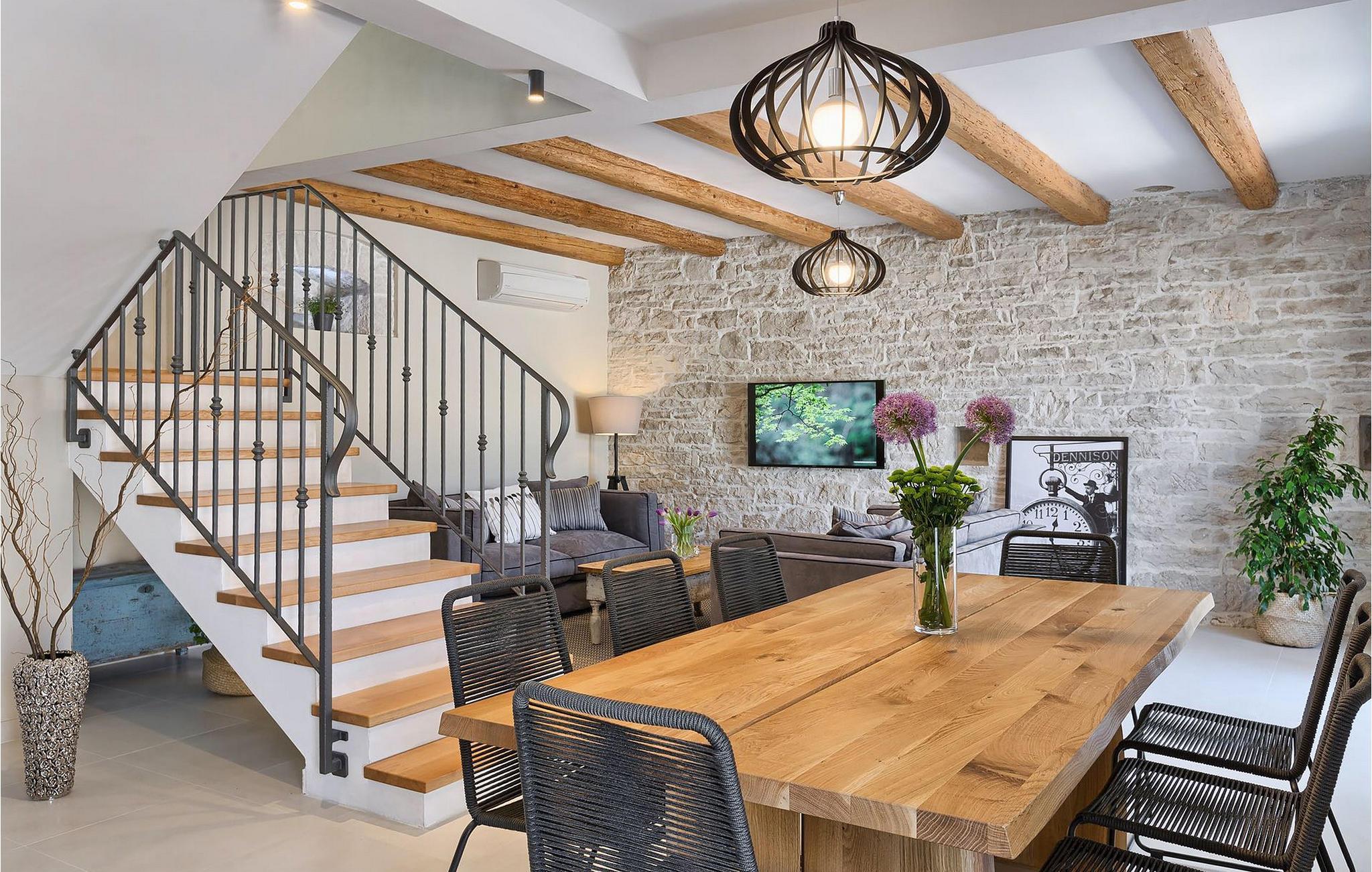 Beliggende i den charmerende og maleriske lille landsby Mrgani, tæt på byen Rovinj, er Villa Luvi det perfekte sted at bo, hvis du ønsker at nyde et moderne opholdsrum og være tæt på turist-hotspots i Istrien, men stadig opleve charmen og freden i en typisk istrisk landsby. Dette er et gammelt istrisk landsted, der er blevet renoveret og istandsat, så du kan nyde det fuldt ud. Villaen har 4 soveværelser, heraf tre med dobbeltsenge, mens det fjerde har to enkeltsenge. Alle værelser har aircondition og eget badeværelse. I stueetagen finder du et fantastisk moderne og fuldt udstyret køkken, hvor du kan nyde at tilberede lækre måltider til dine kære. Da stueetagen er designet som et opholdsområde i åbent plan, er de hyggelige sofaer og tv kun et skridt væk fra køkkenet. På det udendørs område finder du en al fresco spiseplads, et udendørs køkken, privat parkering til to biler, og selvfølgelig det bedste af det hele - en privat pool, hvor du vil finde forfriskning på de varme sommerdage. Der er ikke mere at sige end - god fornøjelse!