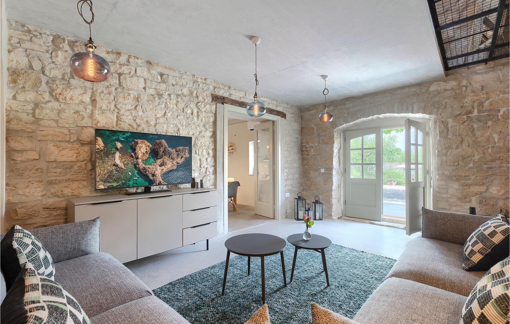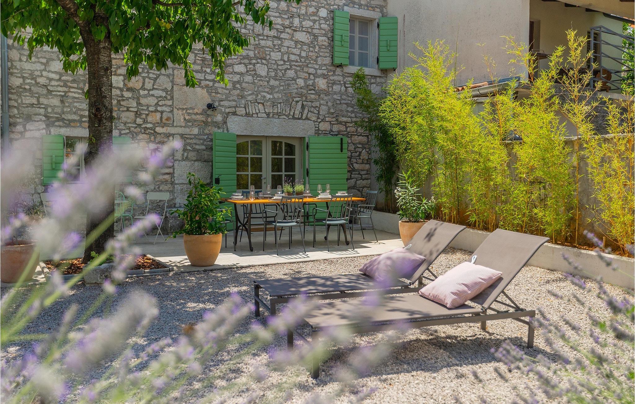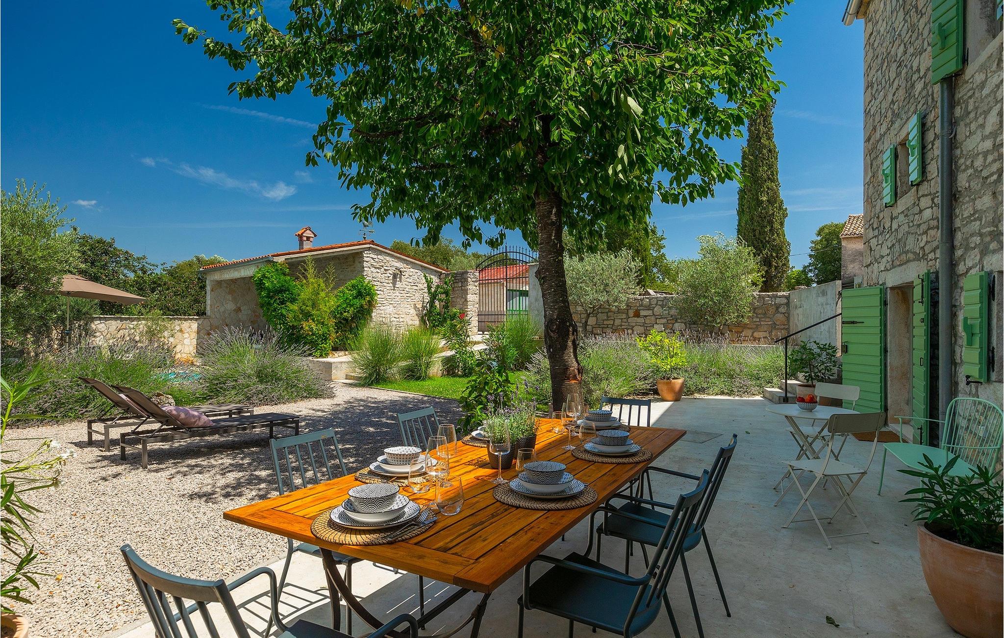 Udendørs er ikke mindre imponerende - en privat pool, et par hyggelige opholdsområder i hele haven samt en spiseplads, så du kan nyde dine måltider al fresco er til din disposition.Villaen er beliggende nær den lille by Kanfanar, men heller ikke langt væk fra kystbyen Rovinj. Den gamle arkitektur i byen og de omkringliggende landsbyer er velbevaret, og vinmarker og oliven dominerer dette område med varmt middelhavsklima. Kanfanar og dets omkringliggende landskab er velkendt, ikke kun for sin historiske og kulturelle arv, men for fremragende og ægte istrisk køkken. Rovinj, den nærmeste større by, vil fortrylle dig ved sine middelaldergader og varme middelhavsomgivelser. Hovedkirken St. Euphemia holder relikvier af helgenen og præsenterer en af de smukkeste barokpræstationer i Istrien. Fra kirkeplateauet er der en vidunderlig udsigt over det åbne hav og talrige holme i det fjerne.