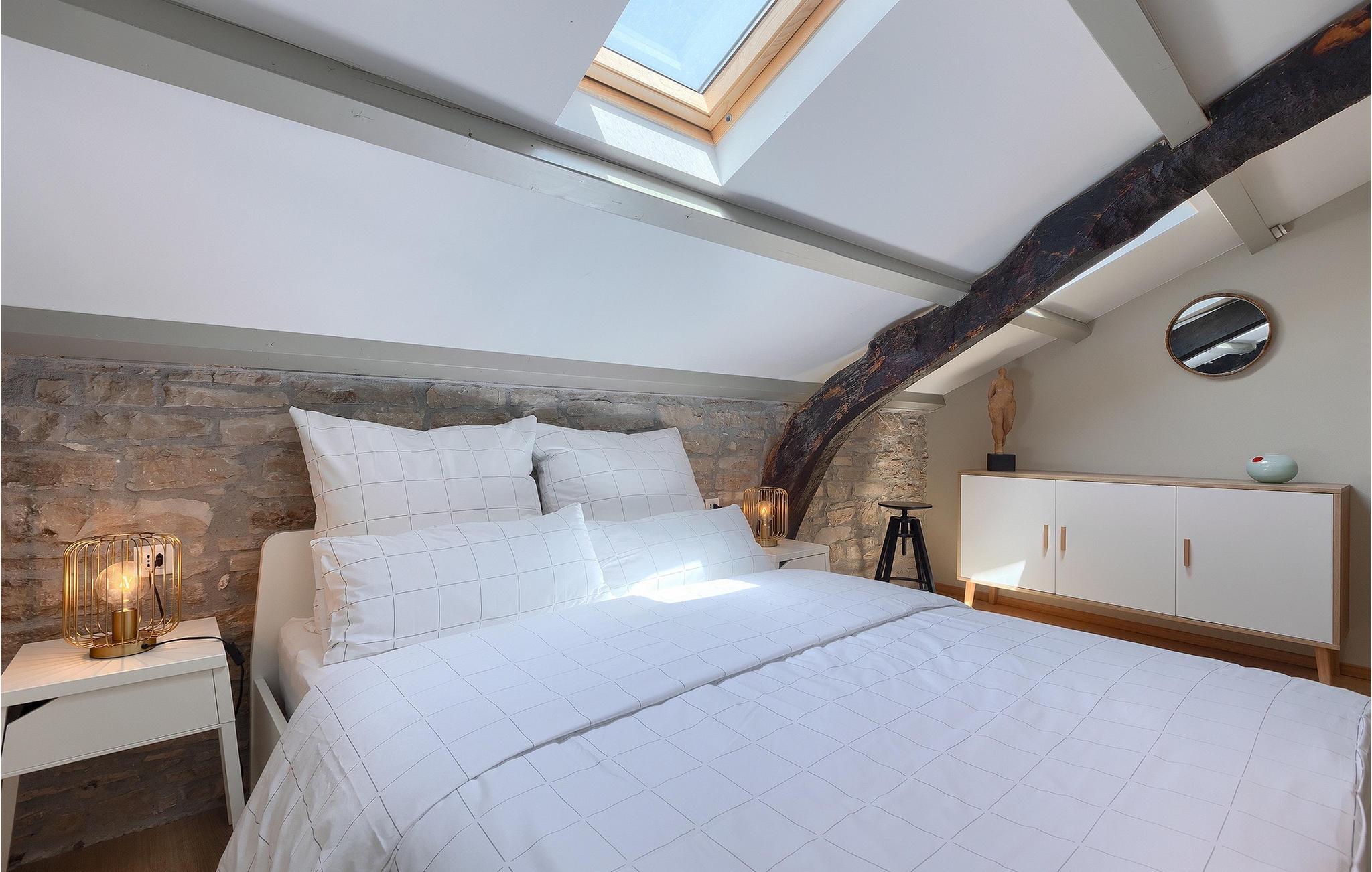 De resterende 2 soveværelser, både varme og indbydende og indrettet med stor opmærksomhed for detaljer, er placeret på anden sal, hvor der også er et badeværelse mere.