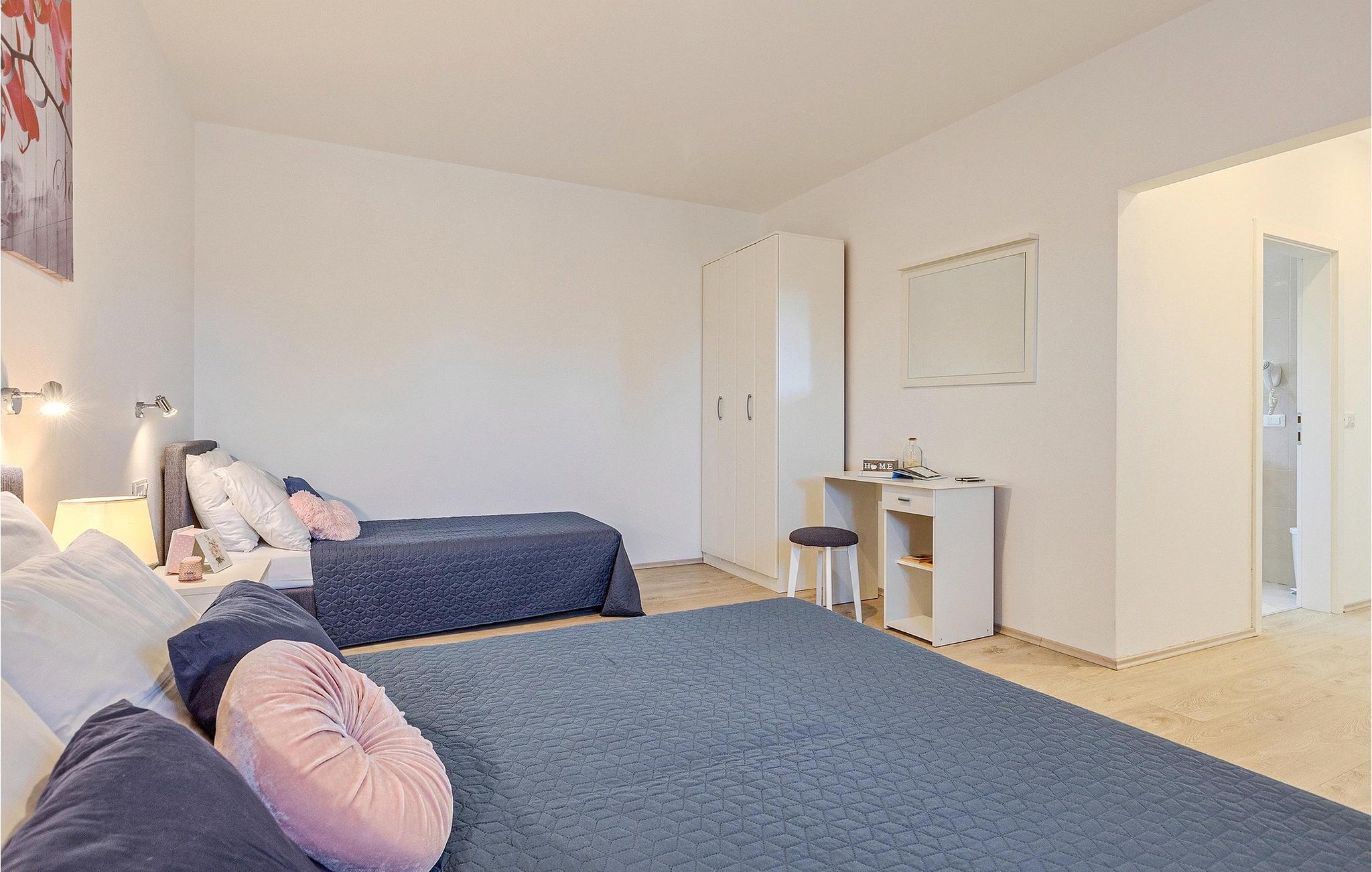 Soveværelse (nr. 1) - 1 Soveplads. (Enkeltseng(e)). 2 Sovepladser. (Dobbeltseng(e)). 1 Soveplads. (Madras).