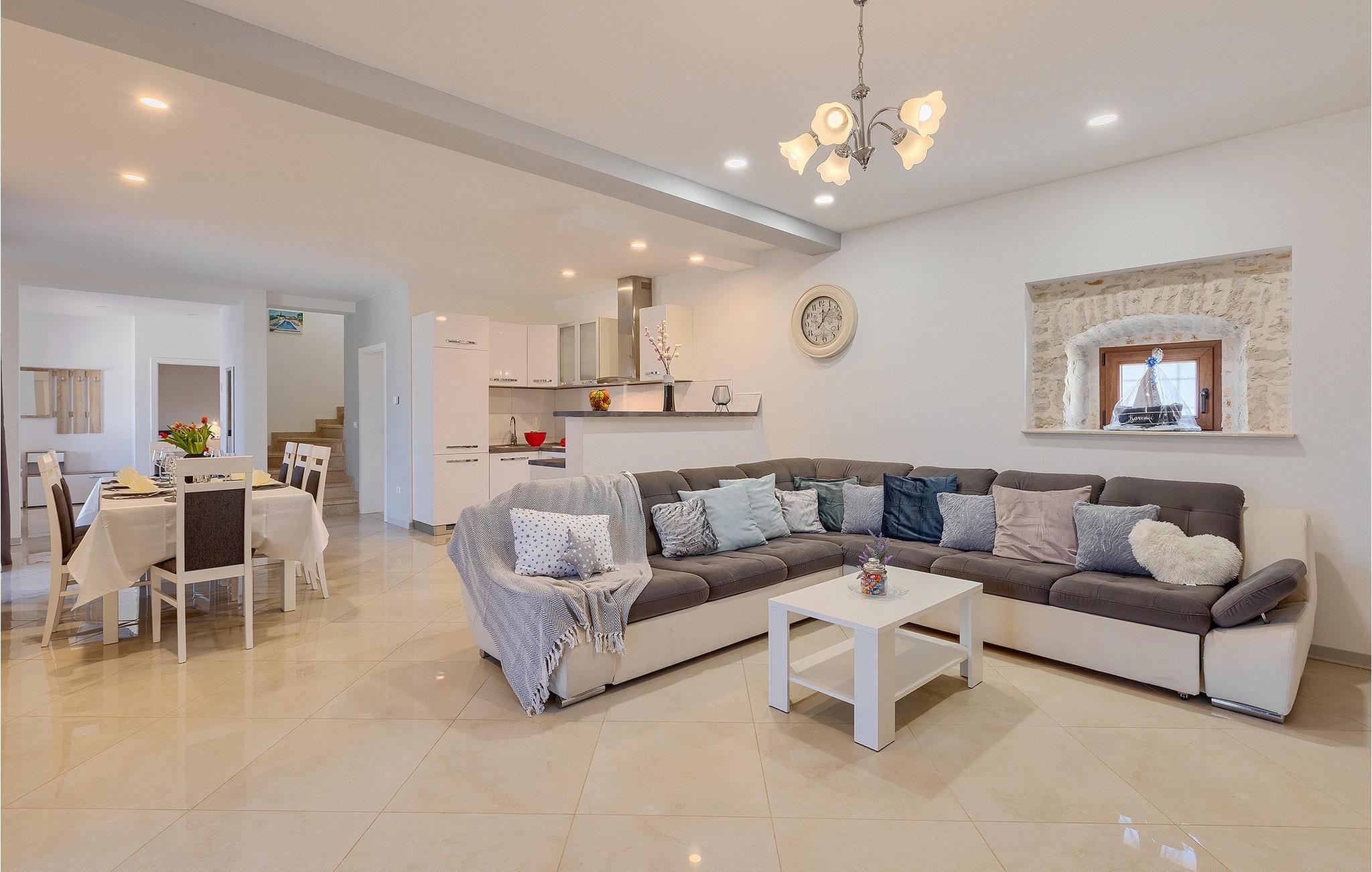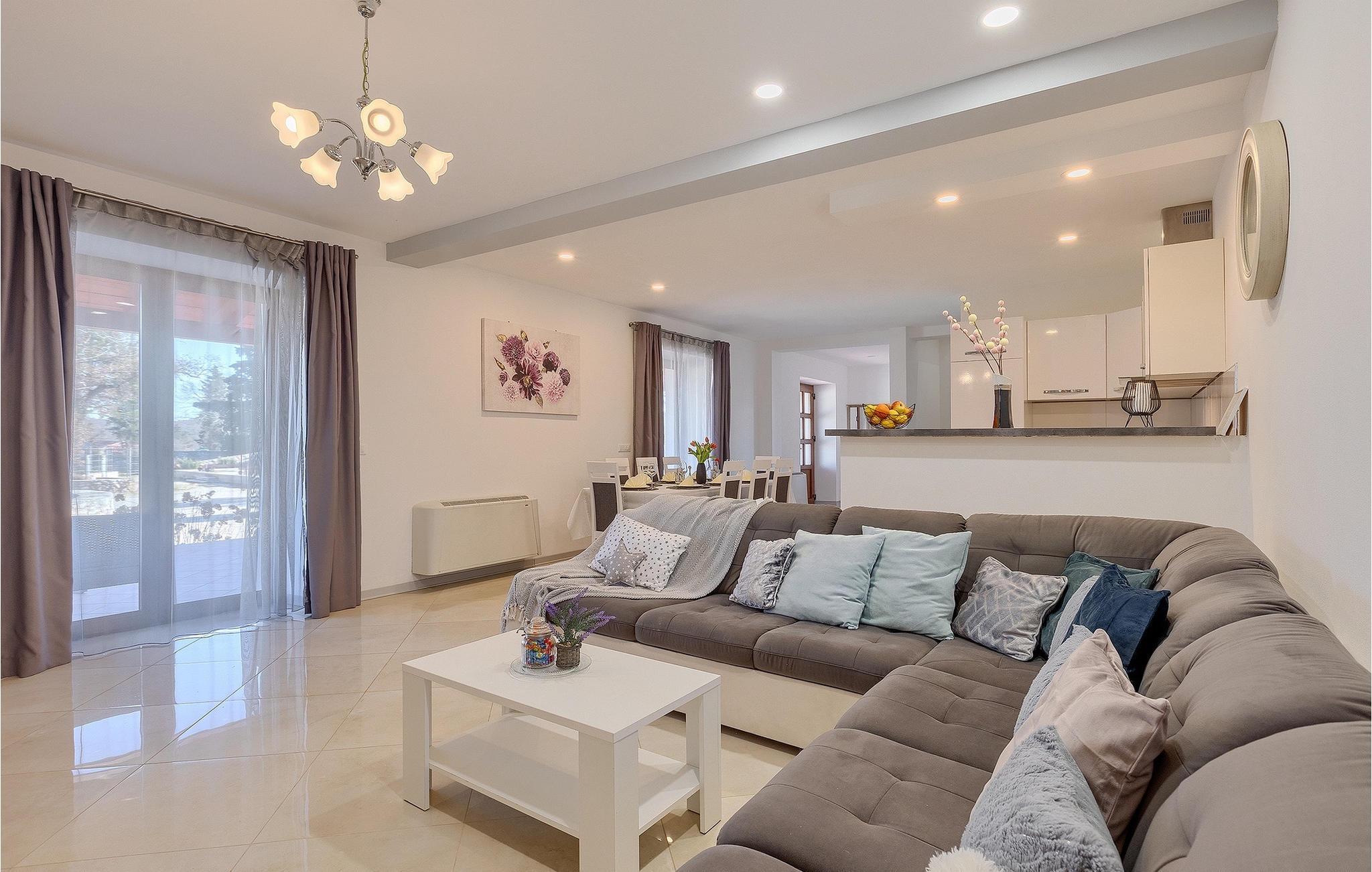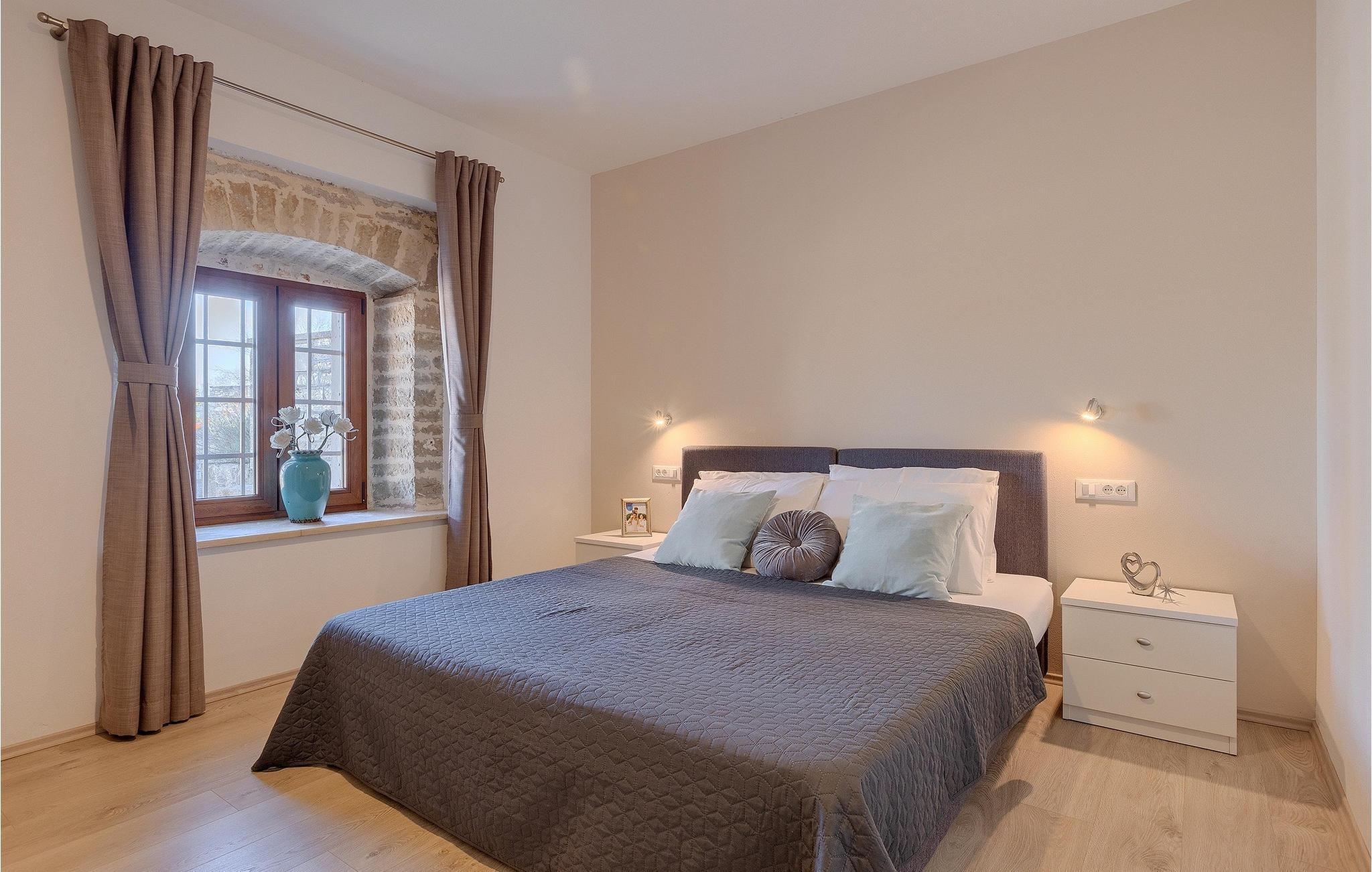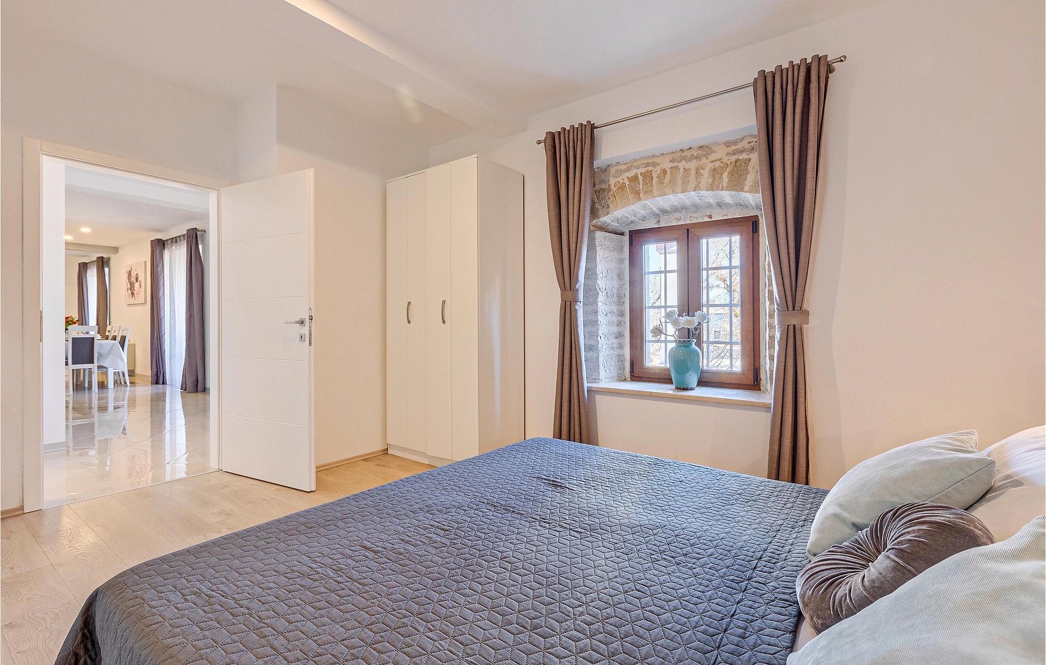 Om dagen vil du helt sikkert nyde det dejlige store udendørsområde mest. Varme sommerdage er en perfekt mulighed for at forfriske dig selv i poolen eller nyde et familiemåltid i den udendørs spiseplads. Poolen har to lavvandede dele med hydromassage, hvilket er fantastisk til mindre børn. Villaen er beliggende i landsbyen Korenici nær Kanfanar og er kun en kort køretur fra Lim Bay. Lim-bugten, der er cirka 13 km lang, ligger på Istriens vestkyst og er blevet erklæret et naturreservat, hvilket gør det til et perfekt rejsemål for alle naturelskere. Bugten er især berømt for sine muslinger og østers, som kan smages på stedet. Vi anbefaler dig klart at besøge den smukke maleriske kystby Rovinj, der ligger på en lille halvø. I dag er de fleste af bygningerne i centrum af byen stadig i deres oprindelige tilstand og tager dig tilbage i tiden. Gå en tur gennem de romantiske gyder og smag typiske lokale specialiteter i restauranterne. Middelalderbyer som Motovun, Groznjan og Buzet er også inden for rækkevidde og et besøg værd. For familier med børn anbefaler vi en tur til vandlandet i Porec. Hvis du er mere en ivrig strandgænger, kan du udforske de vidunderlige strande i og omkring Rovinj, Porec og Novigrad.