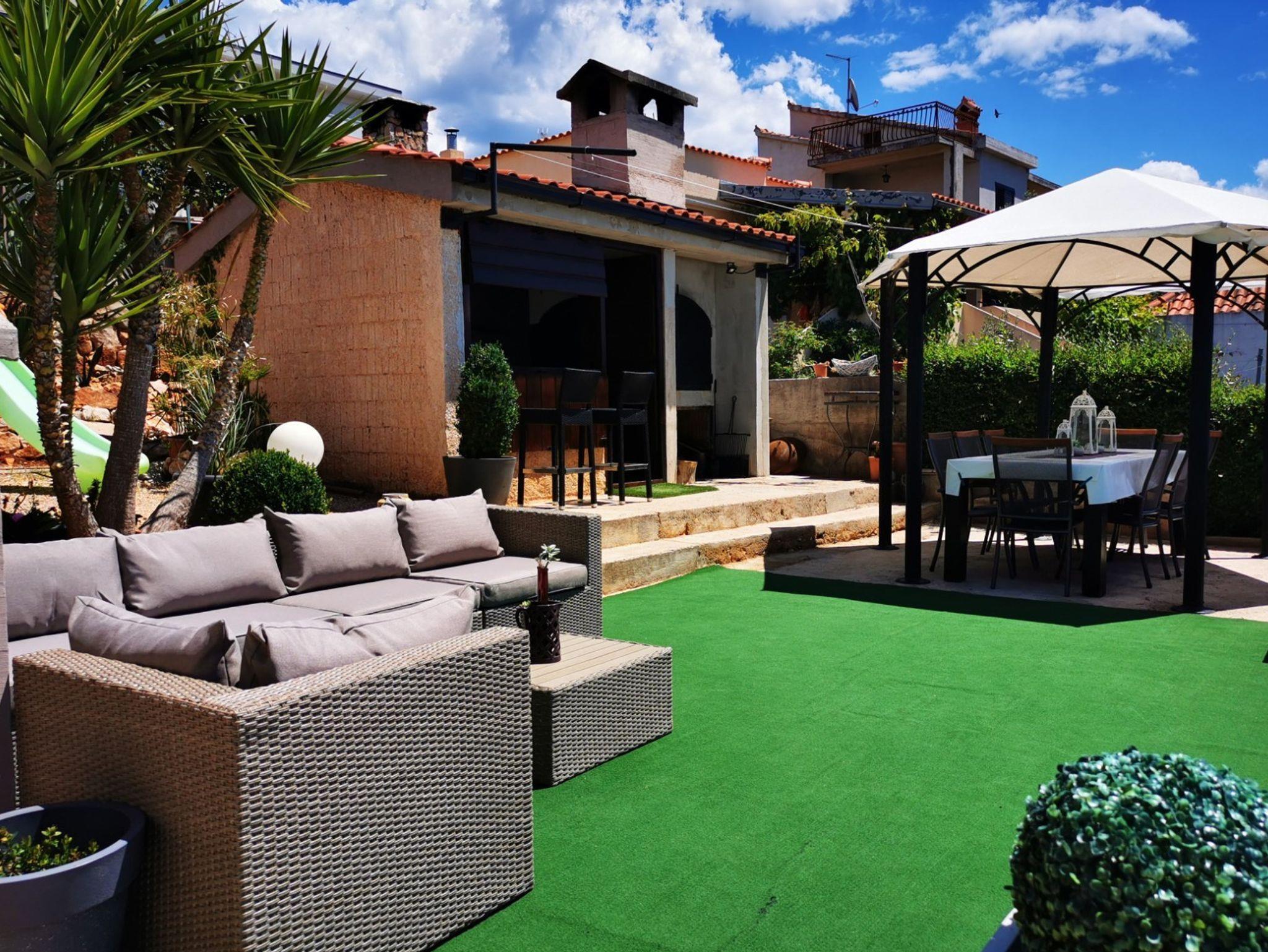 Ferienwohnung bietet Platz für 3 Gäste. Die Betten sind in Schlafzimmern, die es 1 gibt, und in Wohnzimmer, innerhalb einer Gesamtfläche von 44m2, angeordnet. Die Gäste haben eine eigene Terrasse zur Verfügung, auf der sie in warmen Sommernächten genießen können. Das Apartment bietet Meerblick. Es ist erlaubt, Speisen auf dem Gemeinschafts-Grill vorzubereiten. In der Unterkunftseinheit besteht die Möglichkeit des Mitbringens von Haustieren, und die Dienstleistung ist im Preis der Unterkunft enthalten. IM PREIS INBEGRIFFEN: Kurtaxe, Endreinigung, Klimatisierung, Parkplatz, Internet, Boot, Bootsanlegeplatz, Haustiere, Fahrrad, Kinderbett, Bügeleisen, Bügelbrett, Föhn, Sonnenschirm, Liegestühle. Die Verfügbarkeit zusätzlicher Dienstleistungen in Ihrem reservierten Termin und die Preise derselben (falls nicht aufgeführt) müssen im Voraus überprüft werden. Zusätzliche Dienstleistungen die in der Zahlungsaufforderung nicht aufgeführt sind werden direkt beim Vermieter bezahlt, angenommen der Gast nutzt auch diese.