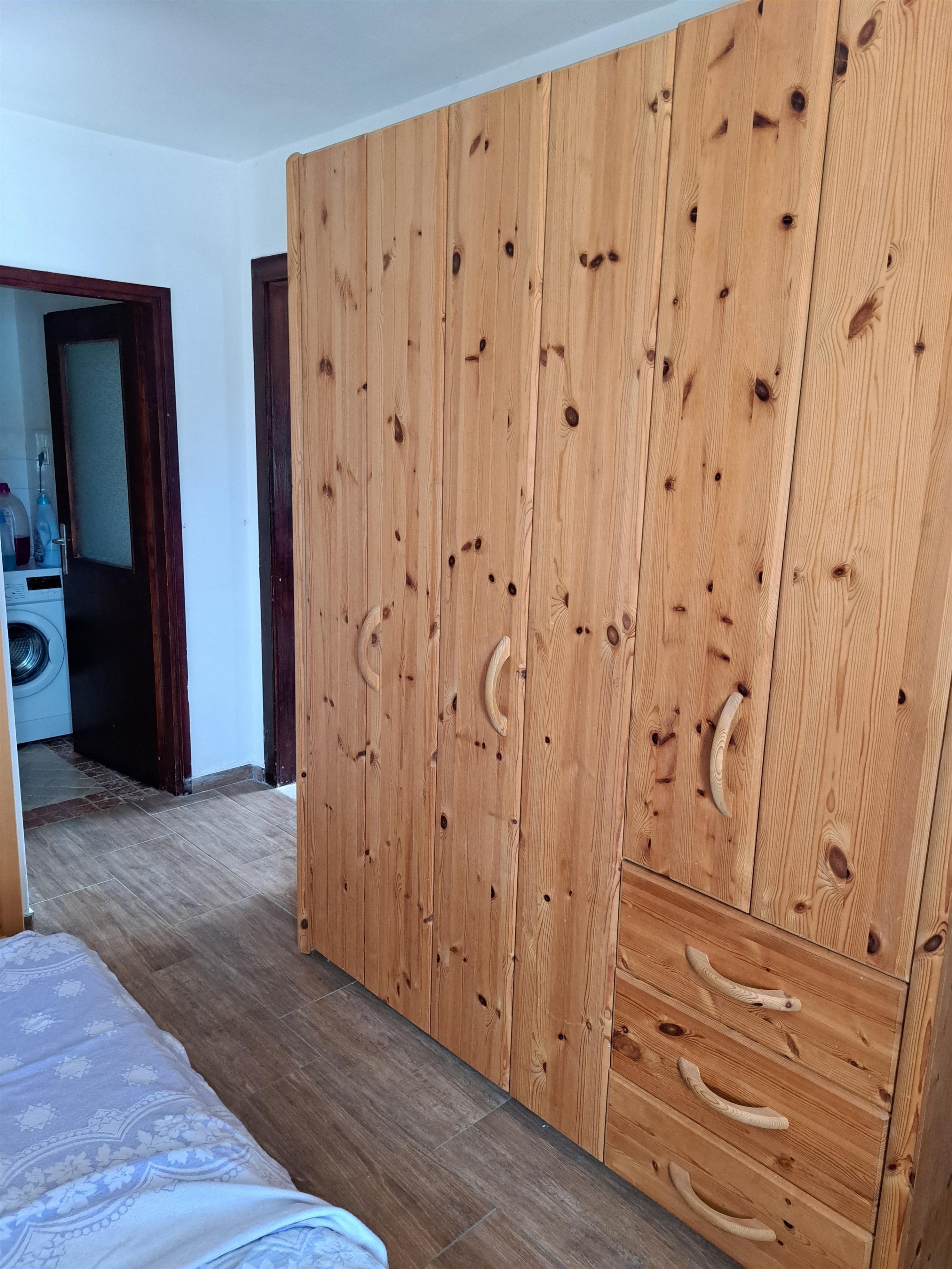 Schlafzimmer mit Doppelbett und Stockbett