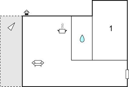 Opholdsstue/køkken 25m2 - 1 Soveplads. (Sofa, madras eller lignende).