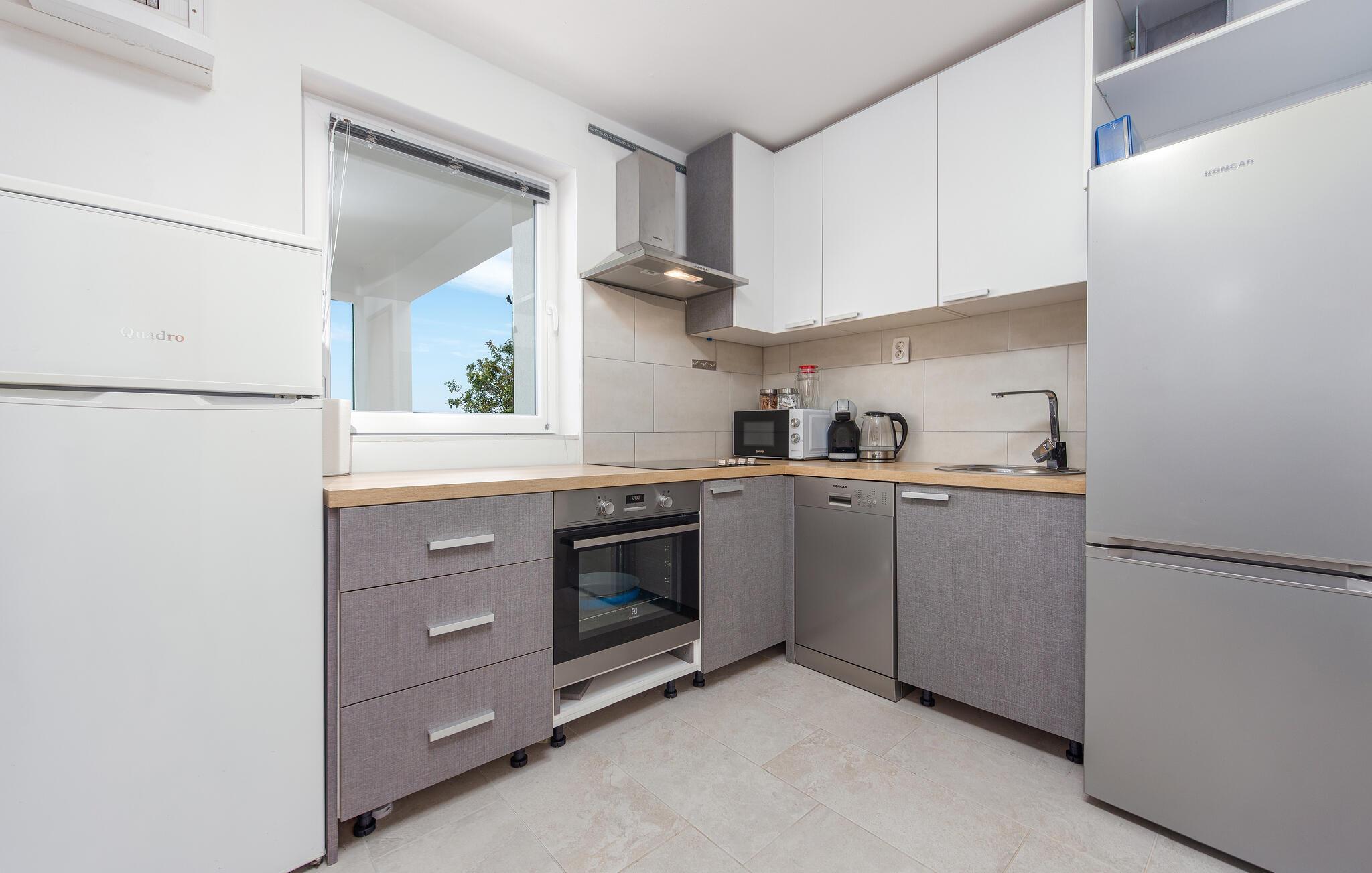 Tag familien under armen og rejs til Baric Draga, hvor der venter jer denne perle af en bolig i skønne omgivelser lige ved vandet. Indvendigt emmer det af hygge og moderne komfort over to etager med gode møbler og faciliteter, så I kan slappe dejligt af med det samme, I ankommer. Tilbered familiens livretter i det veludstyrede køkken og nyd maden ved spisebordet, inden I flader ud med snacks og en god film i sofaen efter en herlig dag på farten.