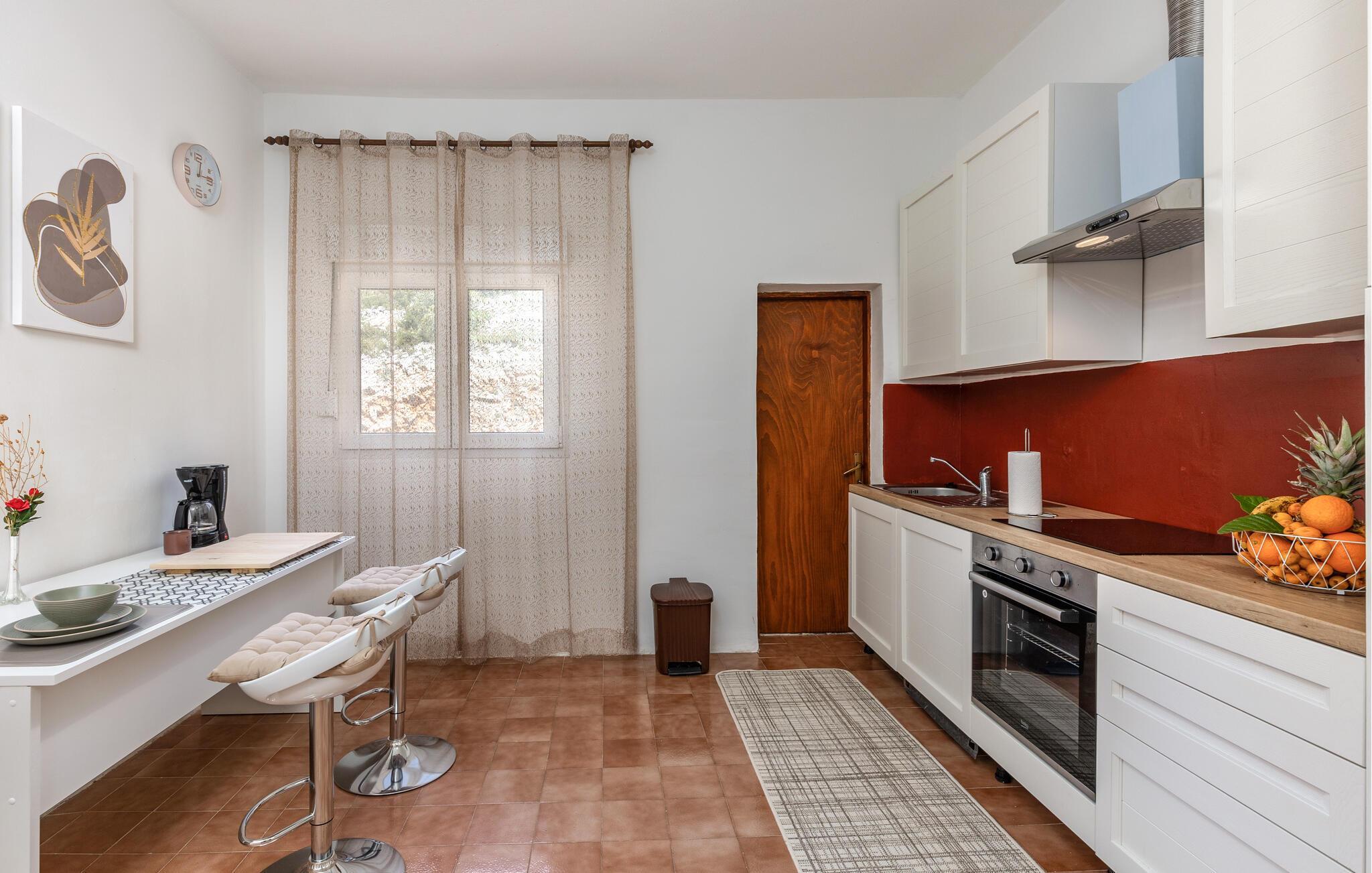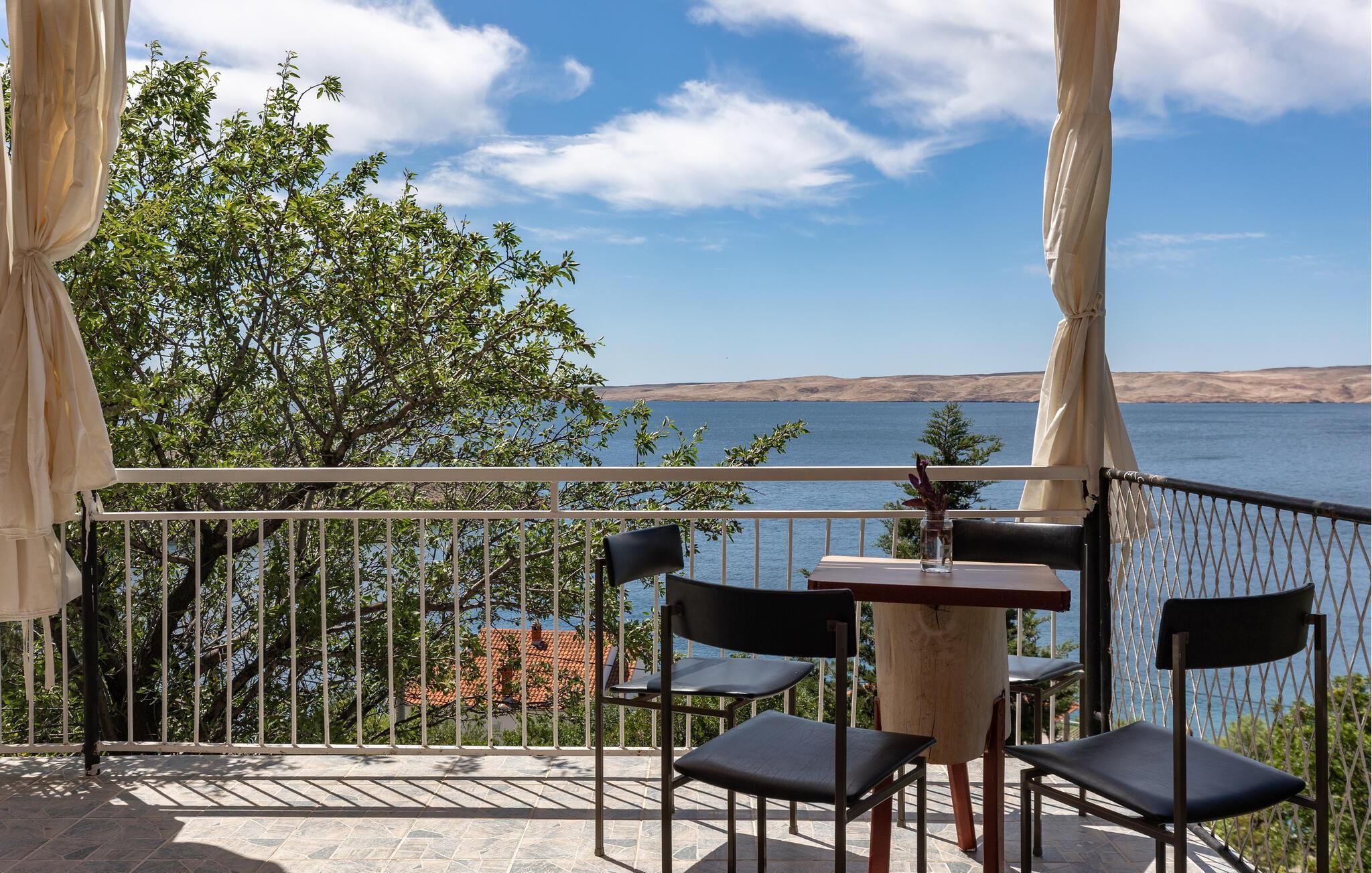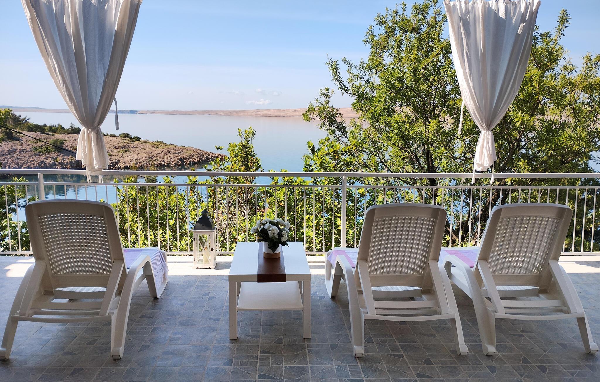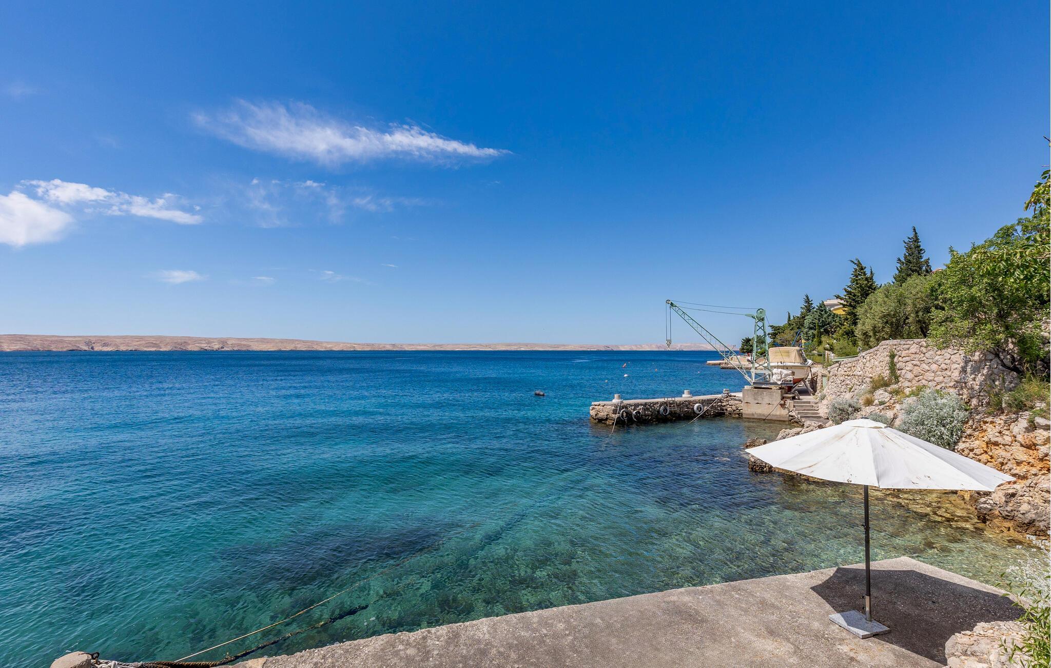 Velkommen til jeres feriehus. Havet ligger for jeres fødder i dette veludstyrede feriehus. Nyd atmosfæren med de moderne og klassiske møbler, og find alt, hvad I behøver for at slappe af. Tilbered lækre retter i køkkenet, eller grill udendørs. Hyg jer på den store og delvist overdækkede terrasse, som giver jer et fantastisk havpanorama med udsigt til Pag. Udnyt beliggenheden, og gå ned ad trapperne til badeområdet, og dyk ned i det krystalklare hav.