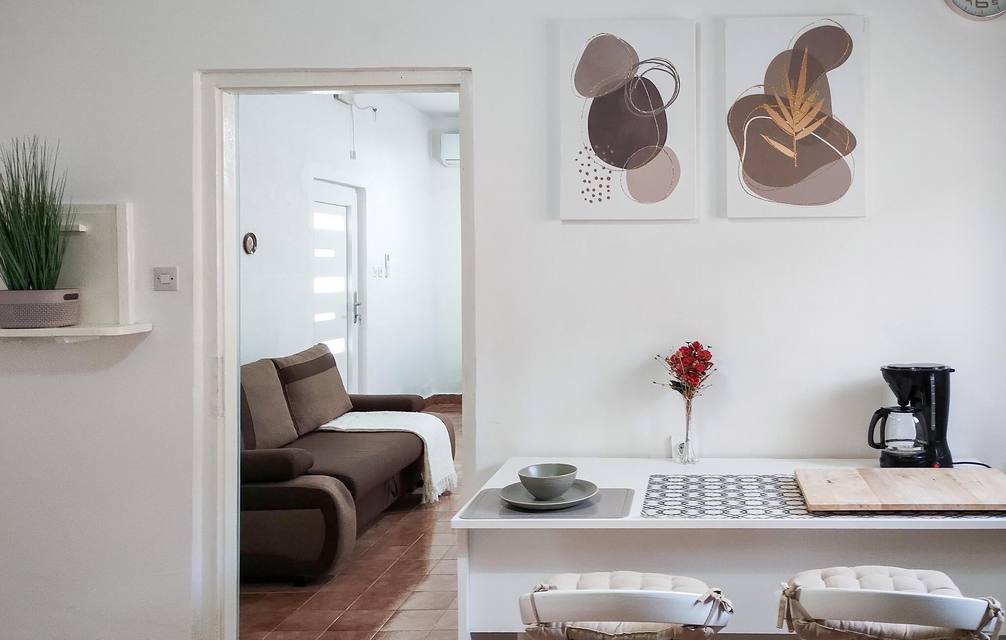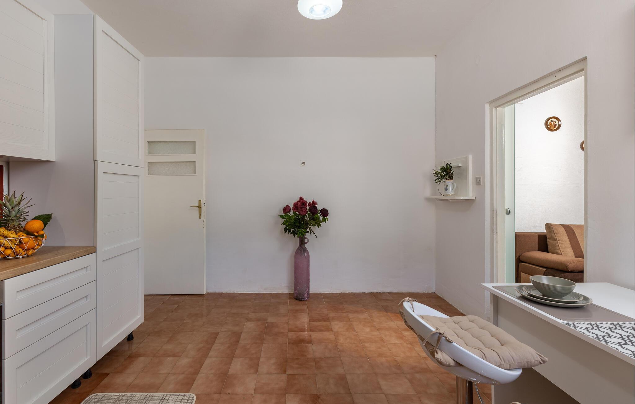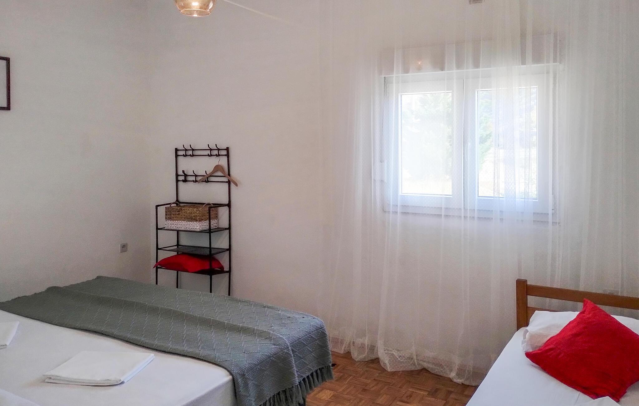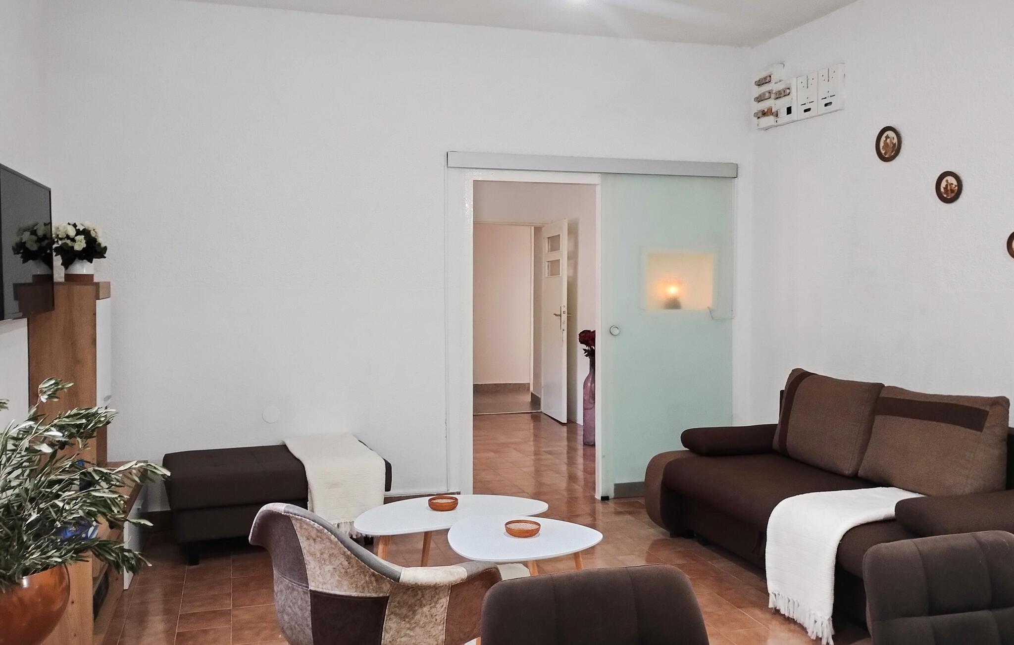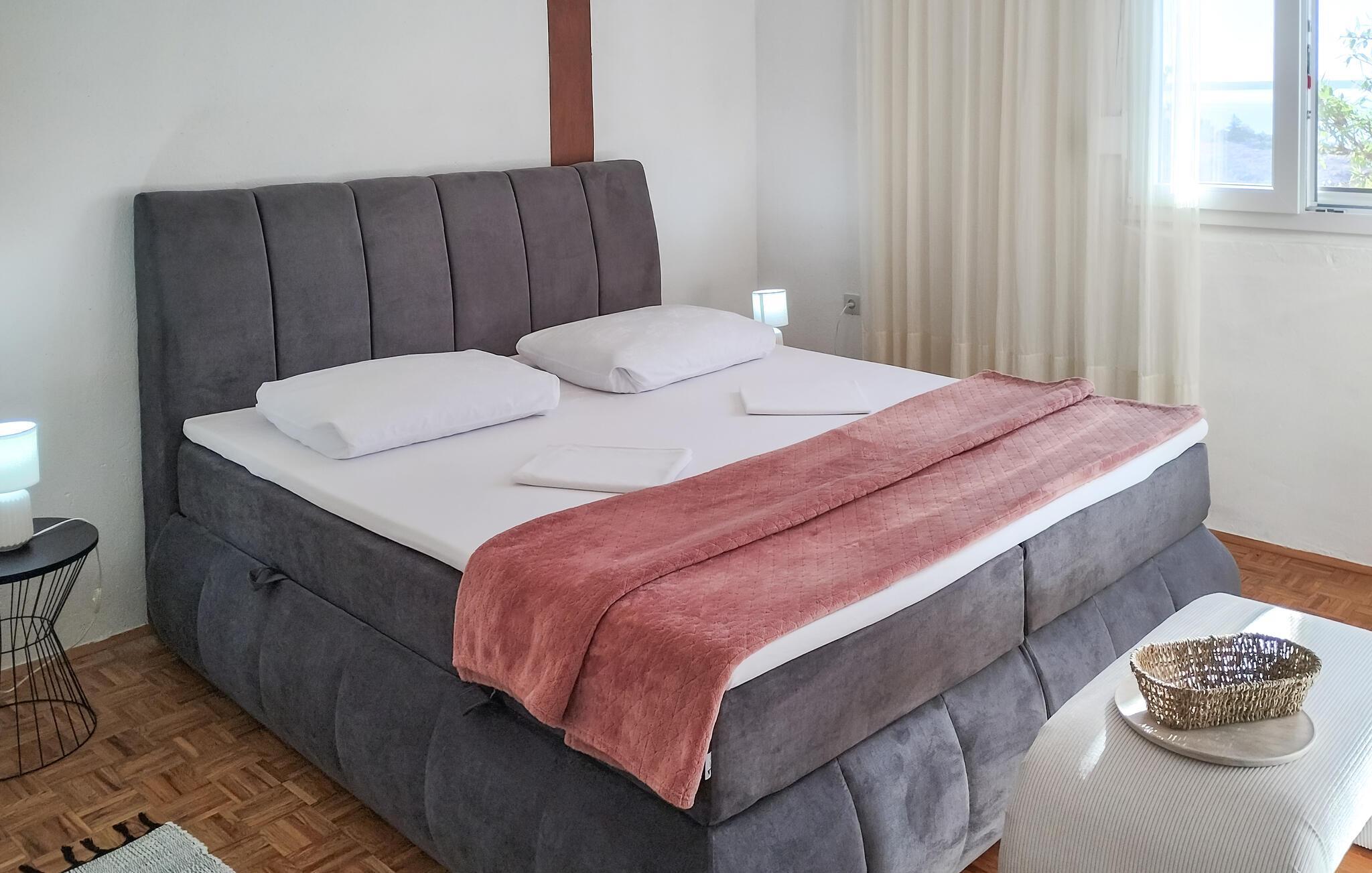 Velkommen til jeres feriehus. Havet ligger for jeres fødder i dette veludstyrede feriehus. Nyd atmosfæren med de moderne og klassiske møbler, og find alt, hvad I behøver for at slappe af. Tilbered lækre retter i køkkenet, eller grill udendørs. Hyg jer på den store og delvist overdækkede terrasse, som giver jer et fantastisk havpanorama med udsigt til Pag. Udnyt beliggenheden, og gå ned ad trapperne til badeområdet, og dyk ned i det krystalklare hav.