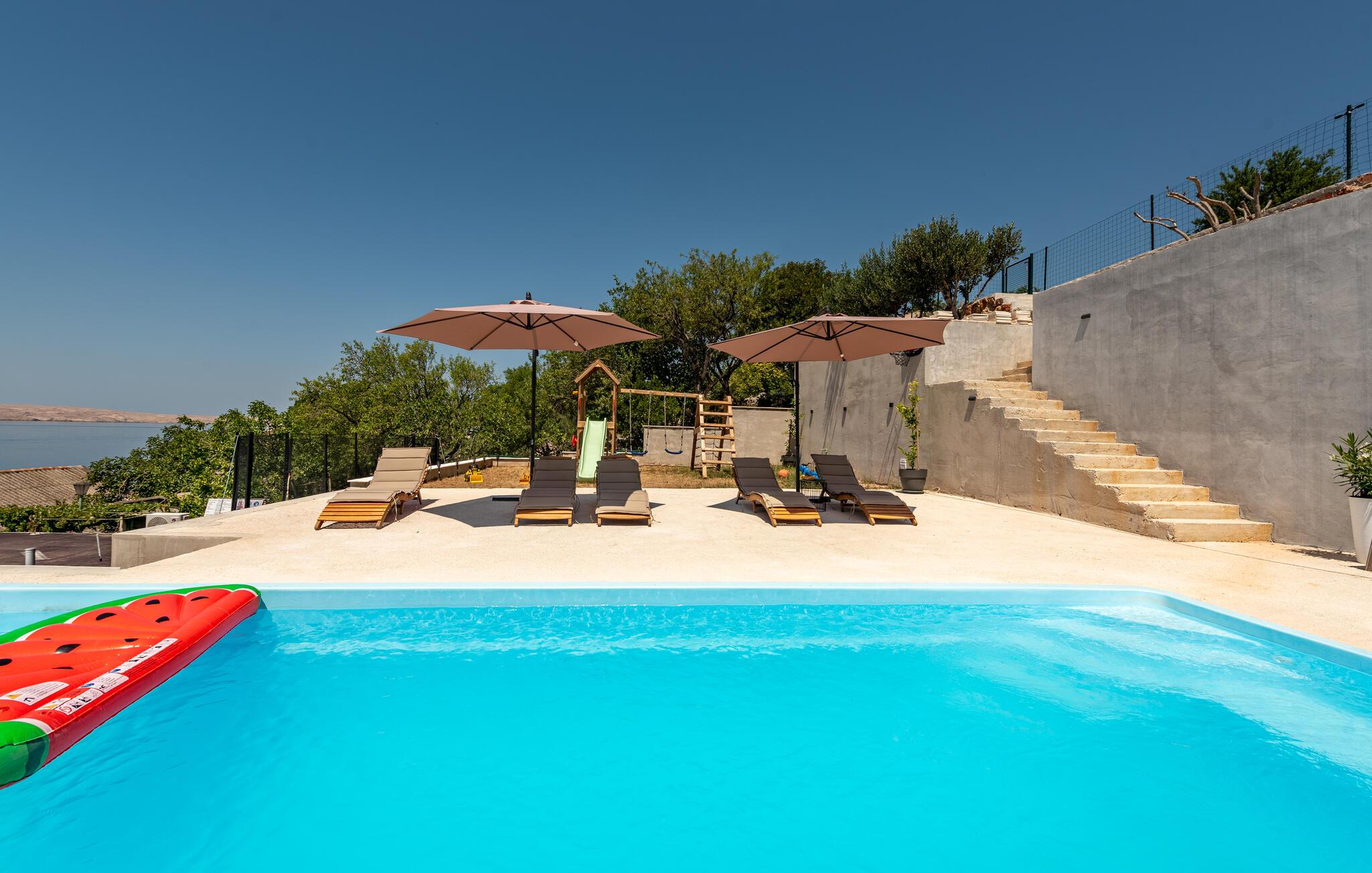 Jeres elegante skyggefulde terrasse byder på en smuk udsigt over havet og er perfekt til en skøn morgenmad i morgensolen og lange sommernætter med vin og levende lys. Nyd middelhavsklimaet her til fulde.