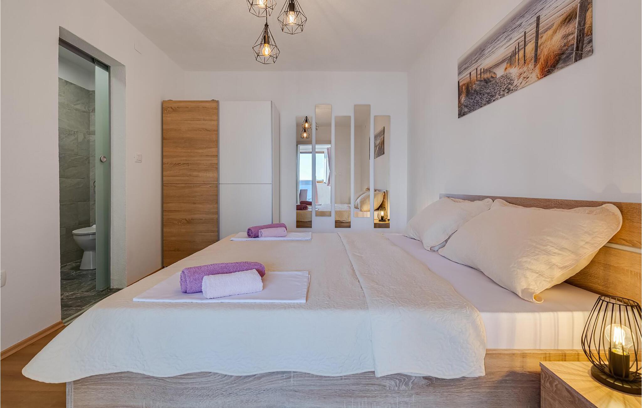 Kun en kort gåtur fra stranden inviterer denne velindrettede ferielejlighed jer til at tilbringe solrige dage ved Adriaterhavskysten. Gør nogle lækre ferieretter klar i det moderne køkken, sæt jer ved det indbydende spisebord, og slap af efter en lang dag på stranden i den komfortable sofa, hvor I kan streame en film eller læne jer tilbage med en god bog.