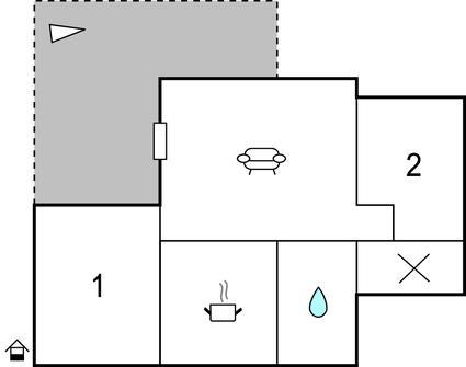 Opholdsstue/køkken - 1 Soveplads. (Sofa, madras eller lignende).
