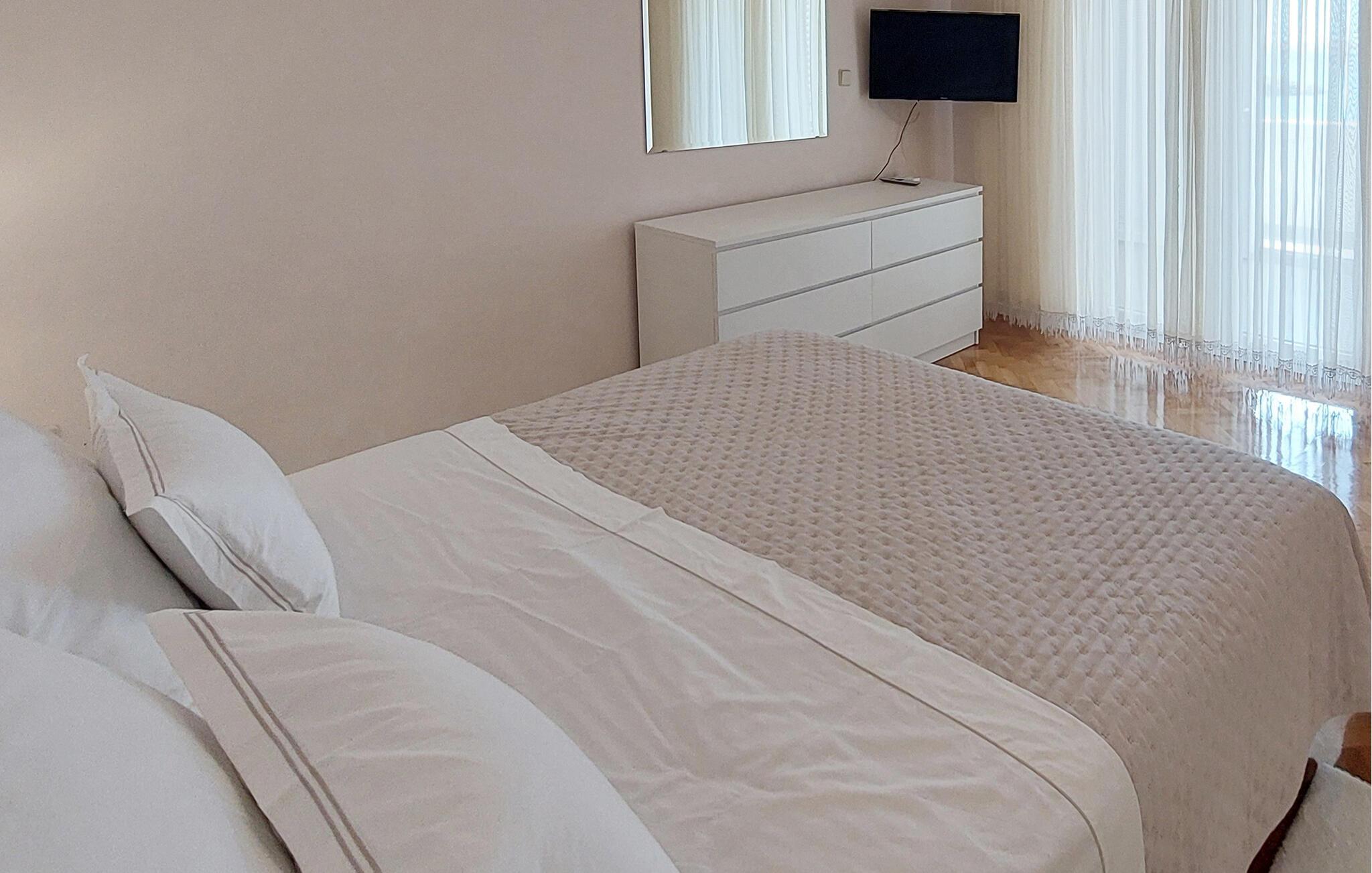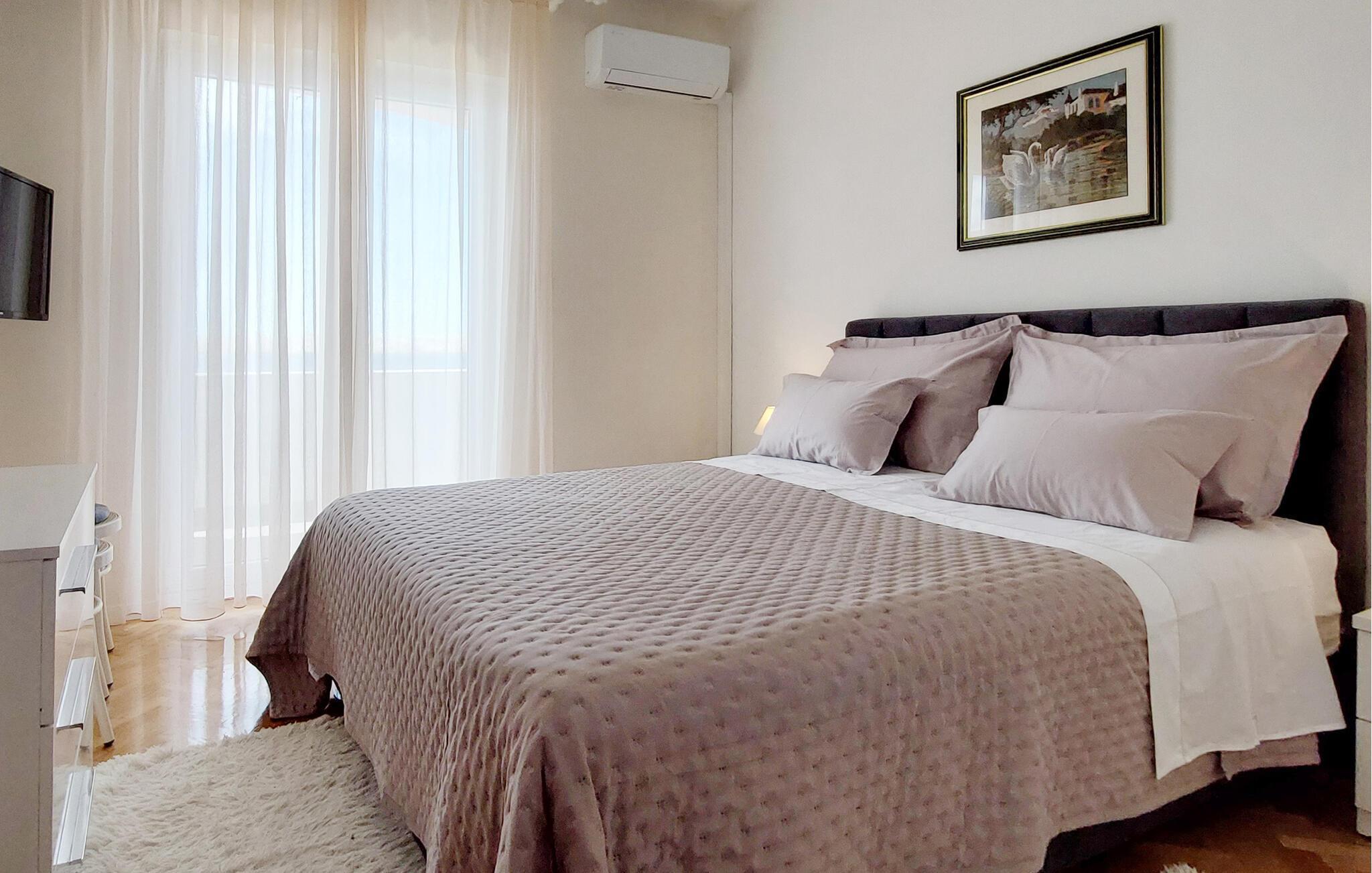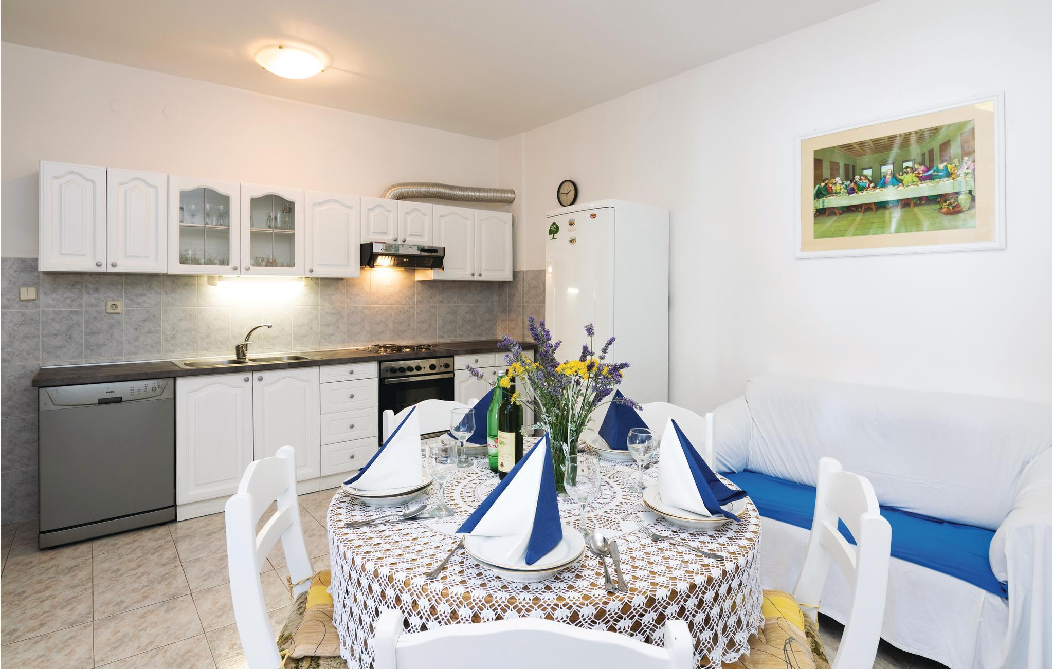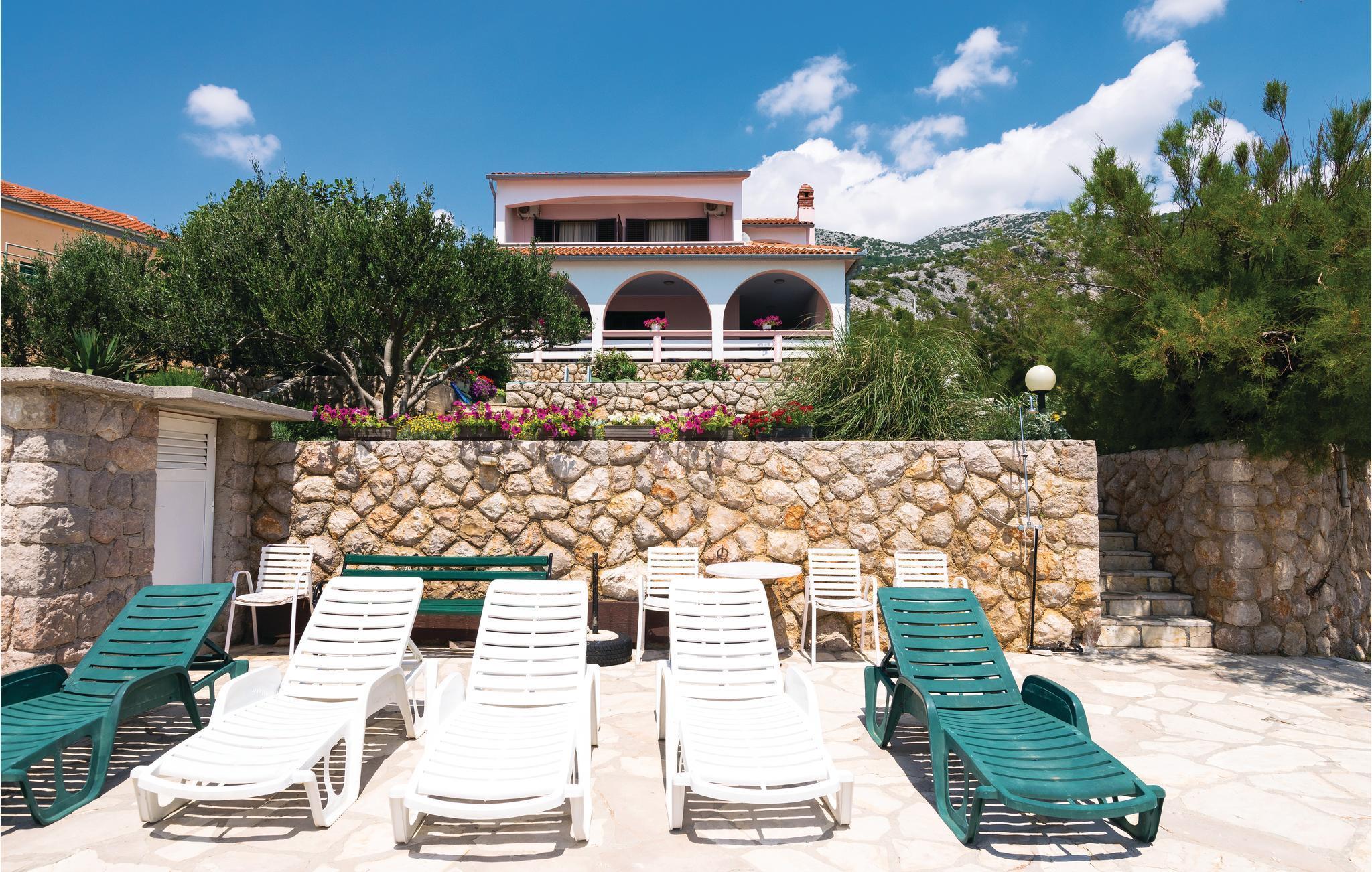 En ferielejlighed med to etager lige ved havet giver jer fra den ene side en eventyrlig udsigt over havet og fra den anden side udsigt til bjerget. Foran huset er der en betonstrand, hvor I kan nyde jeres velfortjente ferie med solbad og svømning med hele familien. Poolen er i haven og er fyldt med havvand. Slap af ved grillen, og nyd det behagelige klima i det fri. Hvert soveværelse har desuden et klimaanlæg og et fjernsyn. Se også nationalparken Paklenica, der er ca. 20 km fra ferielejligheden.