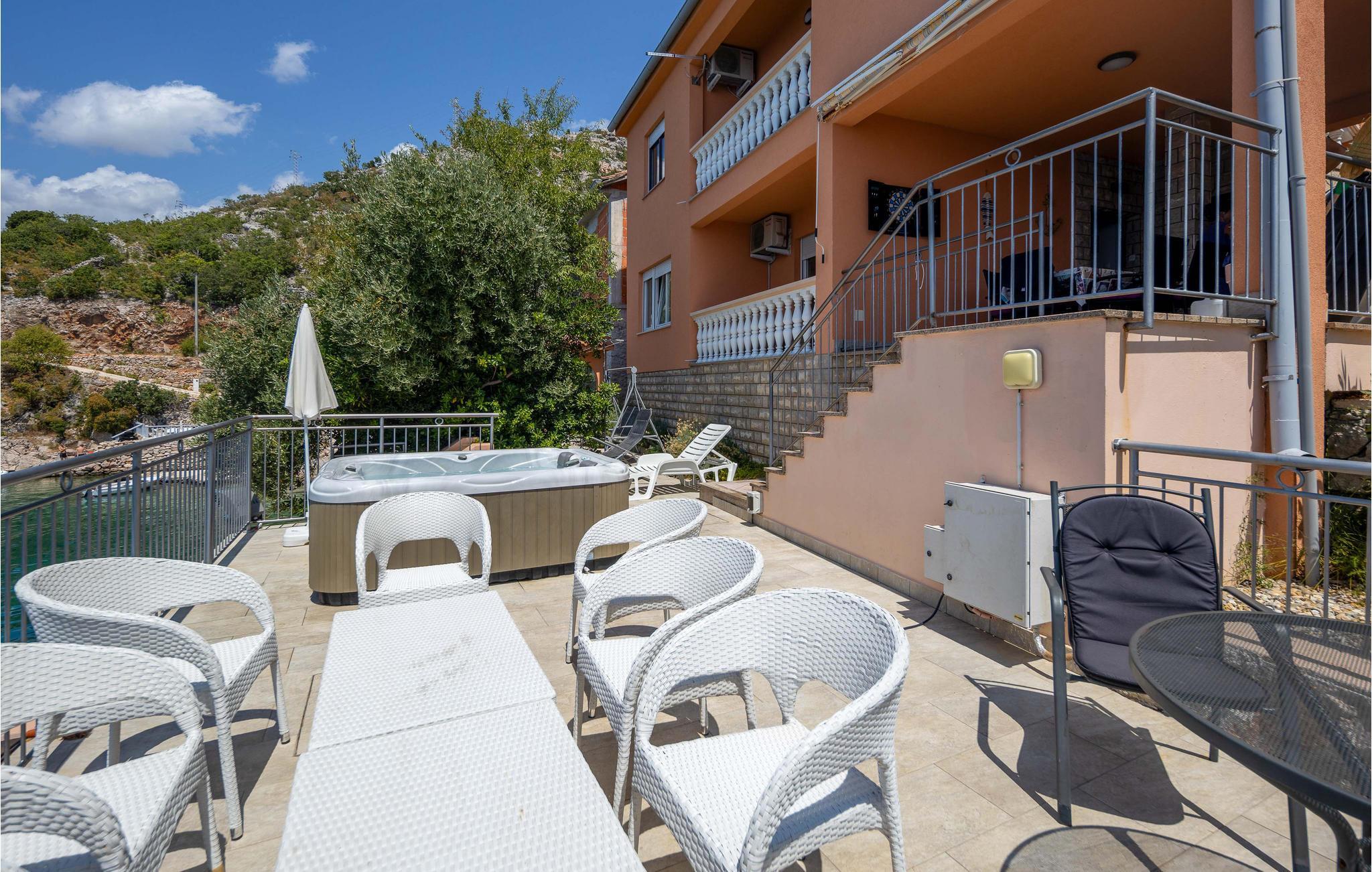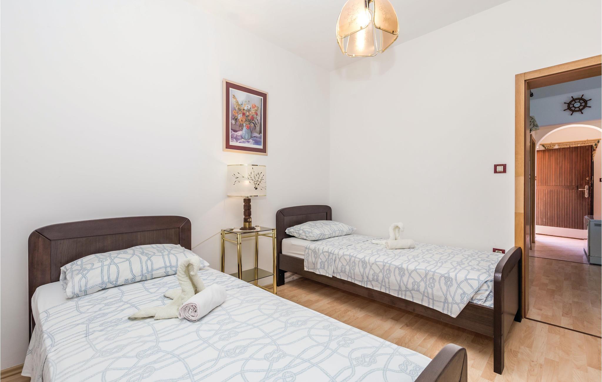 Dette feriehus ligger lige ved vandet, i rolige beliggenhed, langt væk fra byens larm. Huset består af to etager, som er forbundet med udendørstrapper. Der er i alt fem soveværelser, som gør det perfekt til to familier eller vennegrupper, der gerne vil holde ferie sammen. På betonplateauet foran huset står to solsenge direkte ved havet. Til jeres gummibåd eller en lille motorbåd er der en bådliggeplads. Tag på vandring gennem nationalparken Paklenica og lær Velebit bjergene at kende, et af Europas flotteste. Besøg den vidunderlige by Zadar.