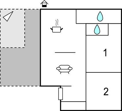 Opholdsstue/køkken - 1 Soveplads. (Sofa, madras eller lignende).