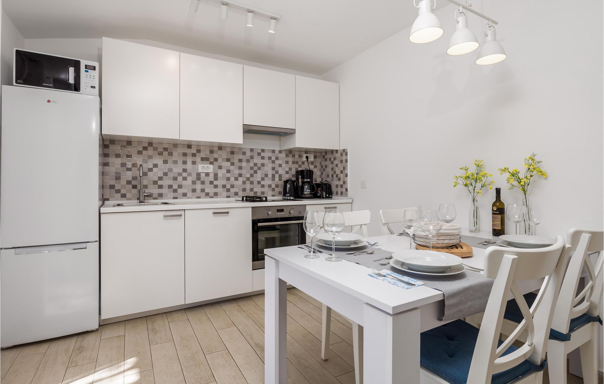 I en lille by under den Adriatiske kystvej, ligger dette skønne feriehus. Her bor I lige ved både strand og hav, helt perfekt til en afslappet badeferie. Et godt hus til en familie med mindre børn, eller to par, der gerne vil på ferie sammen. Her kan I nyde livet langt væk fra stress og jag og mange menneskers trængsel. Nyd livet på terrassen foran huset, der delvist er overdækket. I huset er der trådløst internet, der er en grill i haven og I kan trygt parkere bilen på den indhegnede grund.