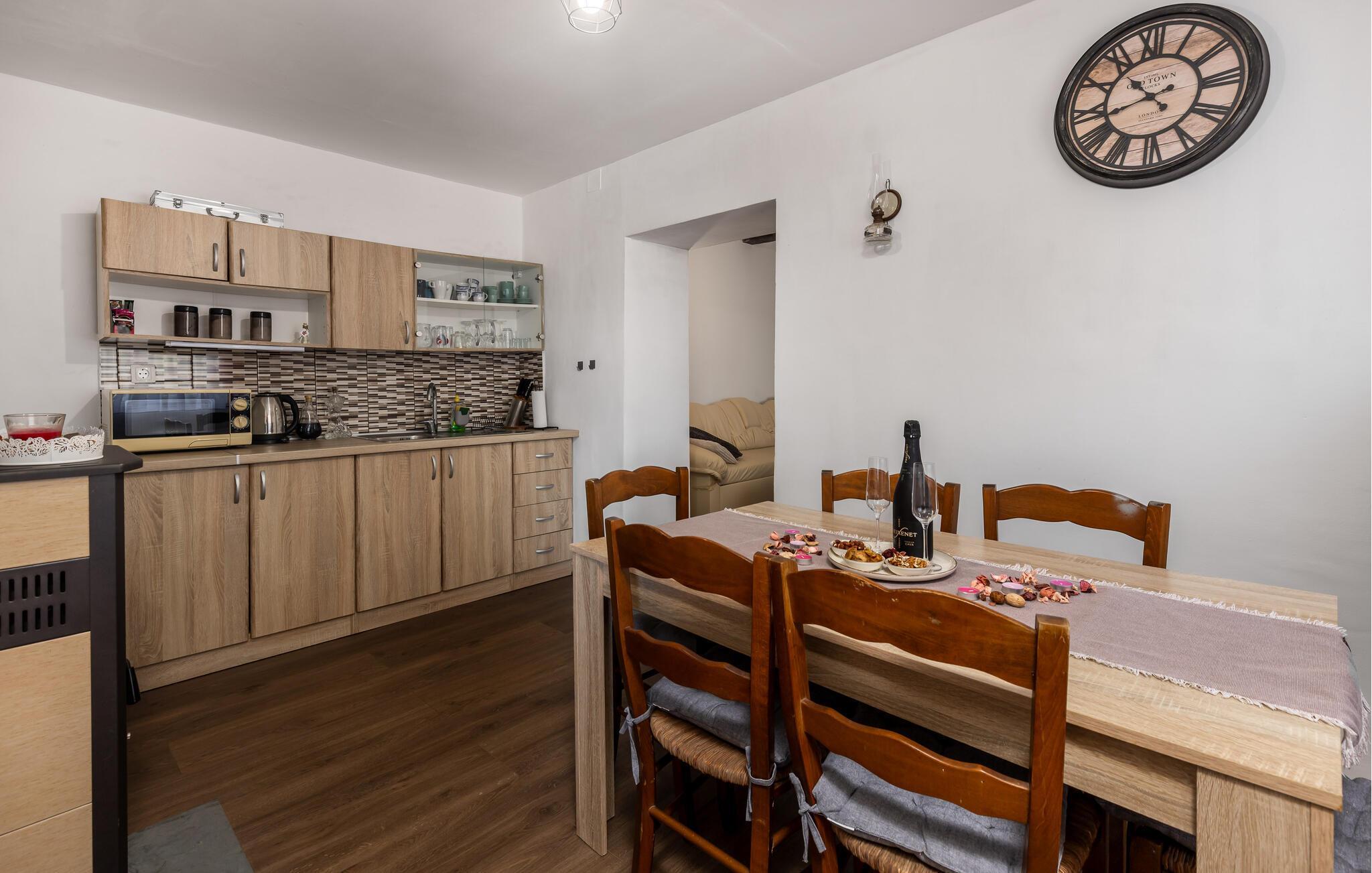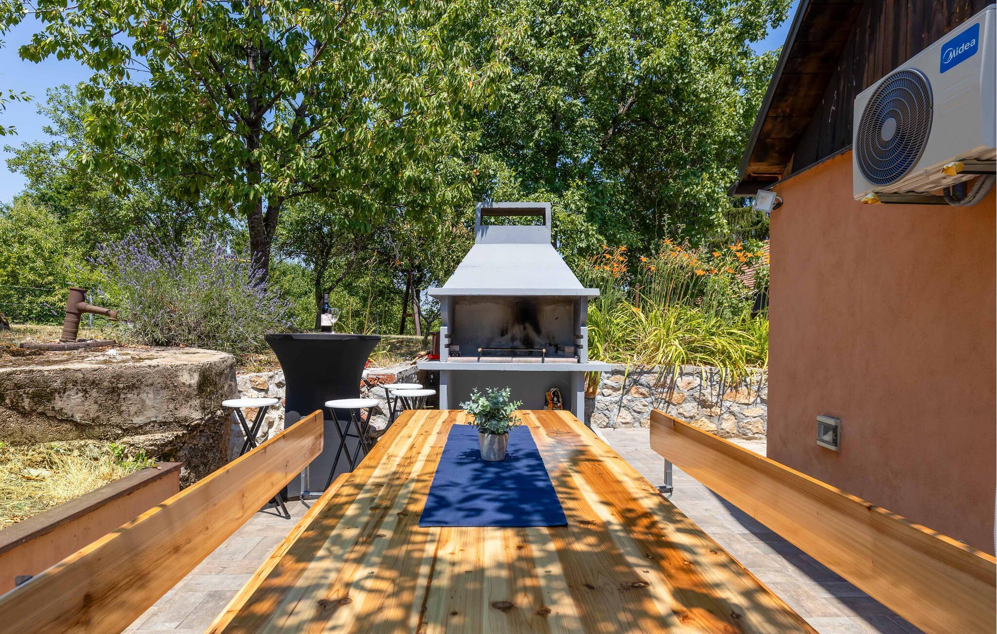 Nyd jeres ferie i dette idyllisk beliggende feriehus med spabad og en stor have. En rustik stemning og modernitet kombineres på en behagelig afslappende måde i dette feriehus. Natursten, træbjælker og diskrete farver skaber en atmosfære, hvor I kan slappe af og lade op. Fordyb jer i en god bog i den behagelige sofa, lyt til jeres yndlingspodcast, eller tilbered friske måltider i det moderne køkken. Start dagen på terrassen med en let morgenmad og en dejlig kop kaffe. Slap af i skyggen af træerne i den store have eller nyd et solbad. For at forfriske jer kan I blot hoppe i spabadet, som er placeret i et komfortabelt møbleret wellnessrum mellem vægge af natursten. Det grønne flodlandskab omkring Karlovac og Ozalj inviterer jer til at opdage naturen mellem bakker og vandløb, mens I ror i kano eller padler. Det middelalderlige Ozalj Slot fortæller historien om regionen og tilbyder en storslået udsigt over Kupa-dalen. Nyd autentisk kroatisk mad og regionale specialiteter i traditionelle taverner. Tag en dagstur til stranden og oplev Adriaterhavet med dets smukke bugter og krystalklare vand.