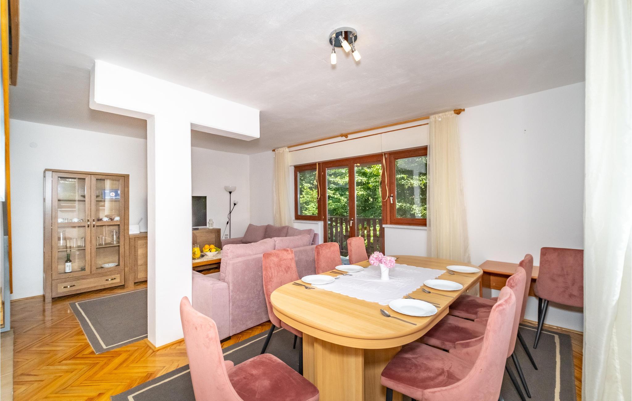 Undslip din hverdag og nyd en afslappende ferie i dette smukke feriehus ved Mreznica-floden. Tilbring en afslappende familieferie i dette veludstyrede feriehus i flere etager. Den smagfulde indretning giver dig en behagelig atmosfære, hvor du kan føle dig godt tilpas og slappe af på de smukke møbler i stuen. Nyd dine måltider under parasollen på terrassen og lyt til fuglesangen fra træerne. Gå ned ad trappen til badeplatformen ved floden og tilbring timer med svømning, solbadning og fiskeri. Her kan du virkelig slappe af og glemme alle dine bekymringer. Du kan også udforske omgivelserne ved at cykle og vandre og nyde naturens ro, som lover dig mange skønne naturoplevelser!
