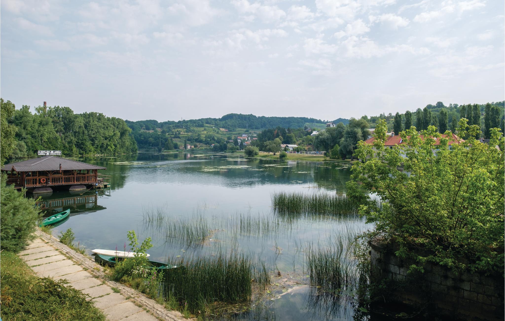 Dette lille feriehus ligger ved floden Mreznica. Det er perfekt til en rolig og ubesværet ferie i den flotte natur. Huset består af stueetagen, hvor der er køkken, stue og badeværelse, og en hems med sovemuligheder, hvor den laveste lofthøjde i siden er på ca. 10 cm. På den overdækkede terrasse med bænke og stole kan I grille og nyde hyggelige eftermiddage i skyggen af et valnødtræ. På de varme sommerdage kan I bade i fantastisk klart vand i floden. I kan vandre eller cykle på de talrige superflotte vandre- og cykelstier, som vil føre jer igennem bakker og lysninger ved flodens bred.