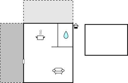 Opholdsstue/køkken - 2 Sovepladser. (Sofa, madras eller lignende).