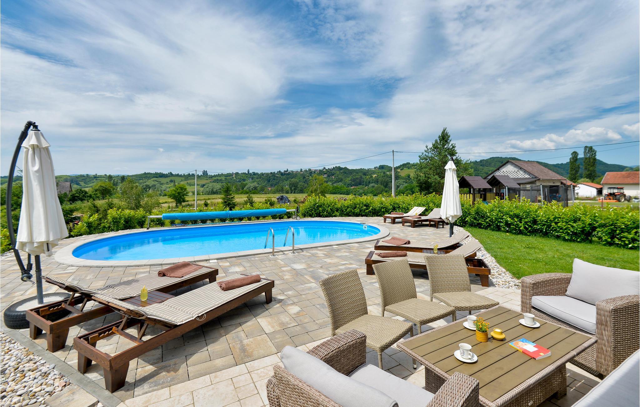 Her venter et dejligt feriehus i rolige omgivelser, midt i grønne enge og smukke vinmarker. Huset har udendørs pool og indvendigt er rummene behageligt indrettet med al nødvendig komfort. Den dejligt store terrasse er udstyret med udendørskøkken, hvor måltiderne kan tilberedes og nydes i den friske luft. På første sal skråner væggene fra en meter. Tæt på huset findes vandre- og cykelstier, der fører gennem vinmarker og vidunderlig uberørt natur. Lystfiskere finder gode pladser ved den nærliggende bæk. Husets beliggenhed giver gode muligheder for at besøge Zagreb, nationalparken Plitvice søerne og den smukke by Karlovac, hvor fire floder løber sammen.