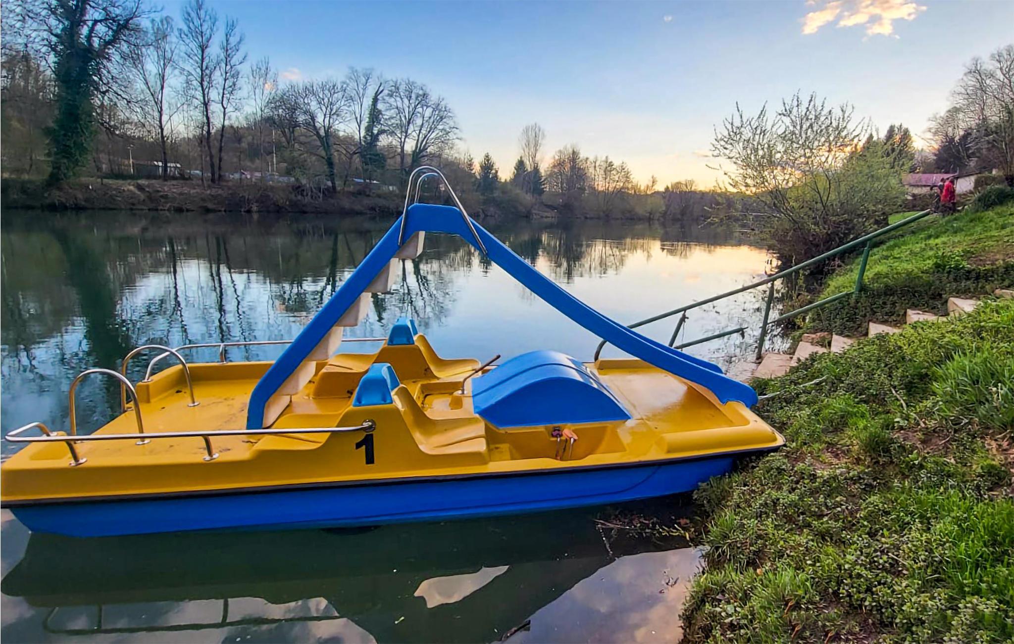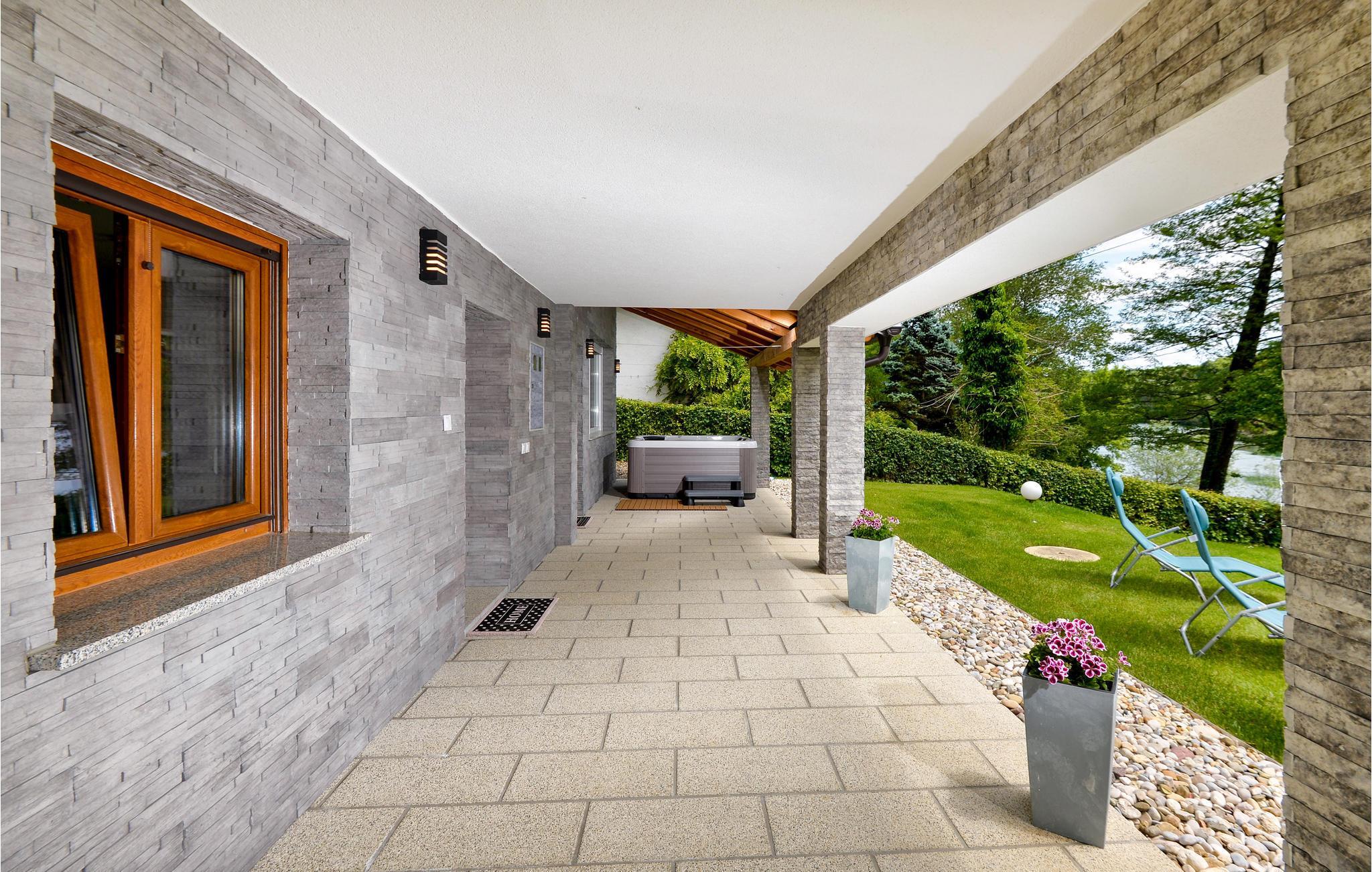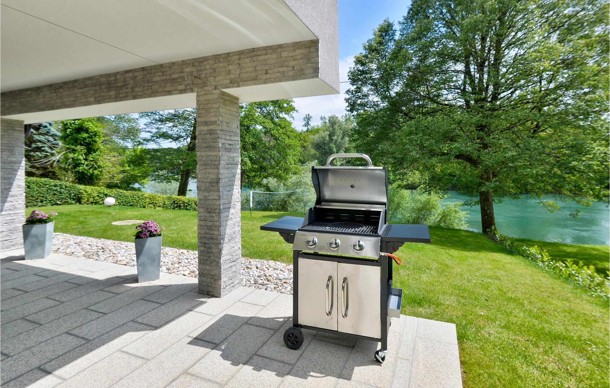 I får nogle fantastiske stunder ved floden, hvor der er en lille privat badebro. De hyggelige terrasser er omgivet af smuk natur, så her kan I samles lækre måltider fra grillen, hvis I ikke hellere vil tage et spil bold på grunden.
