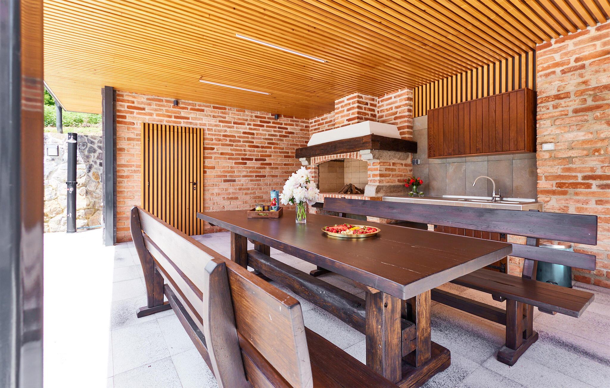 På de mange varme dage kan I nyde alle dagens måltider i det fri. Huset ligger nemlig på en stor grund med en fantastisk udsigt og masser af legeredskaber til familiens mindste. Når varmen er ved at få jer, kan I dyppe jer i poolen, og sidst på dagen kan I fyre op i grillen og servere bøffer og grillspyd under aftensolen.