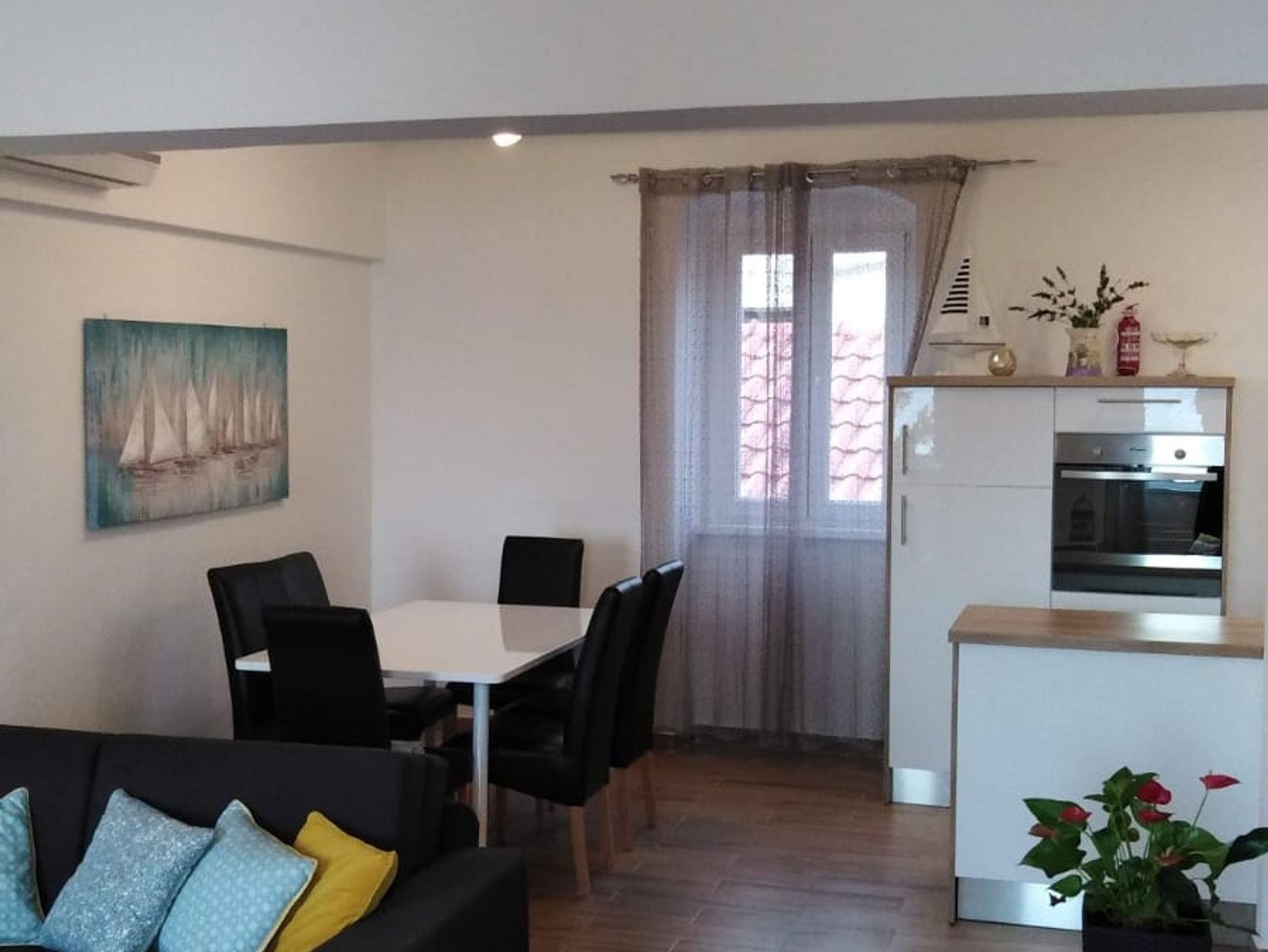 Ferienwohnung bietet Platz für 6 Gäste. Die Betten sind in Schlafzimmern, die es 2 gibt, und in Wohnzimmer, innerhalb einer Gesamtfläche von 64m2, angeordnet. Die Gäste haben eine eigene Terrasse zur Verfügung, auf der sie in warmen Sommernächten genießen können. Das Apartment bietet Meerblick. IM PREIS INBEGRIFFEN: Kurtaxe, Endreinigung, Klimatisierung, Internet, Föhn. Die Verfügbarkeit zusätzlicher Dienstleistungen in Ihrem reservierten Termin und die Preise derselben (falls nicht aufgeführt) müssen im Voraus überprüft werden. Zusätzliche Dienstleistungen die in der Zahlungsaufforderung nicht aufgeführt sind werden direkt beim Vermieter bezahlt, angenommen der Gast nutzt auch diese.