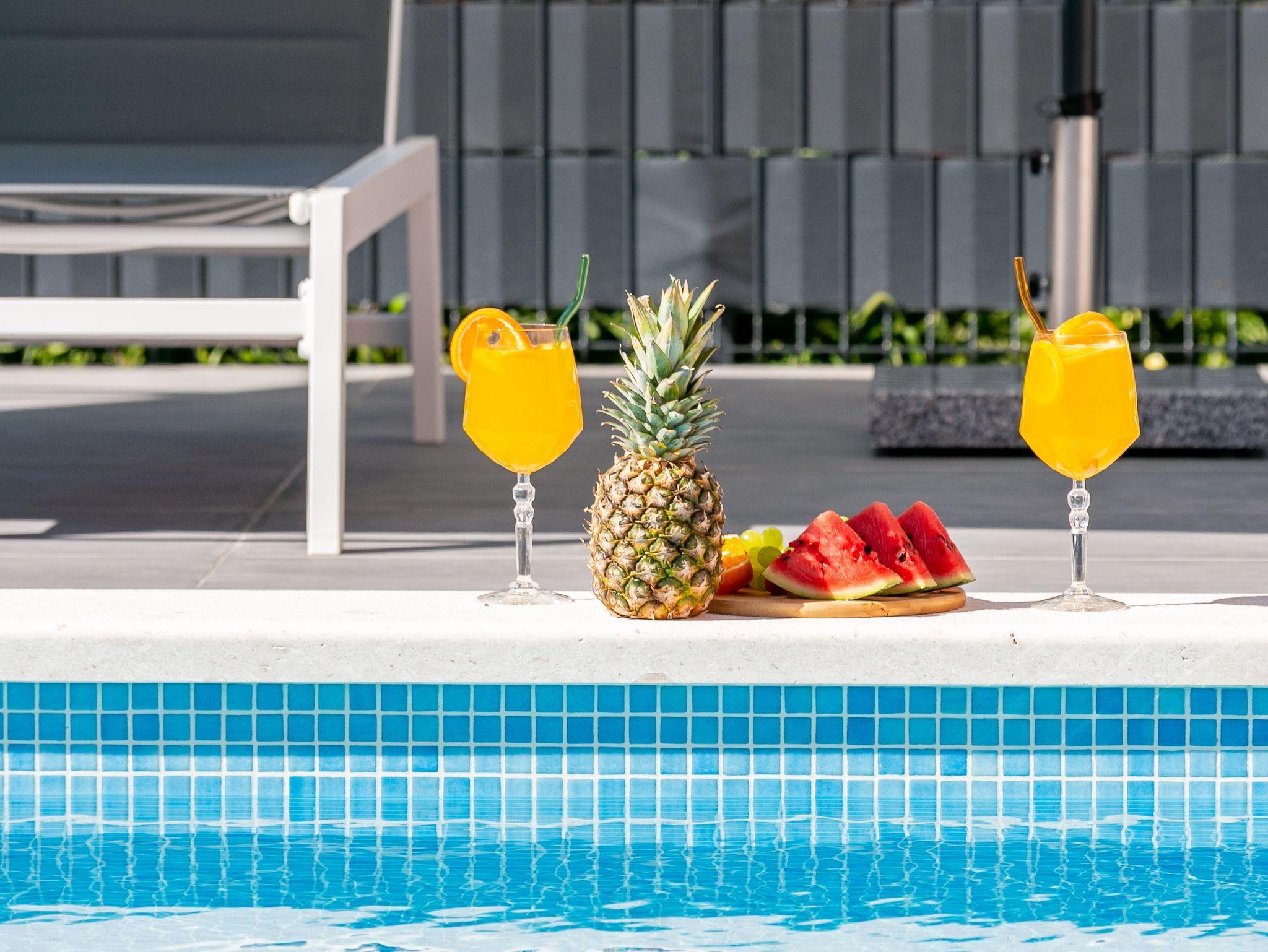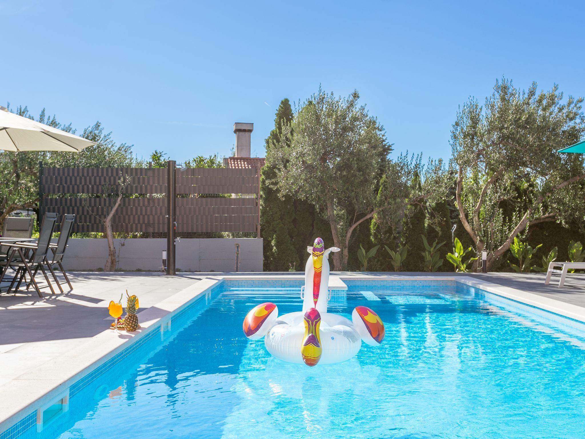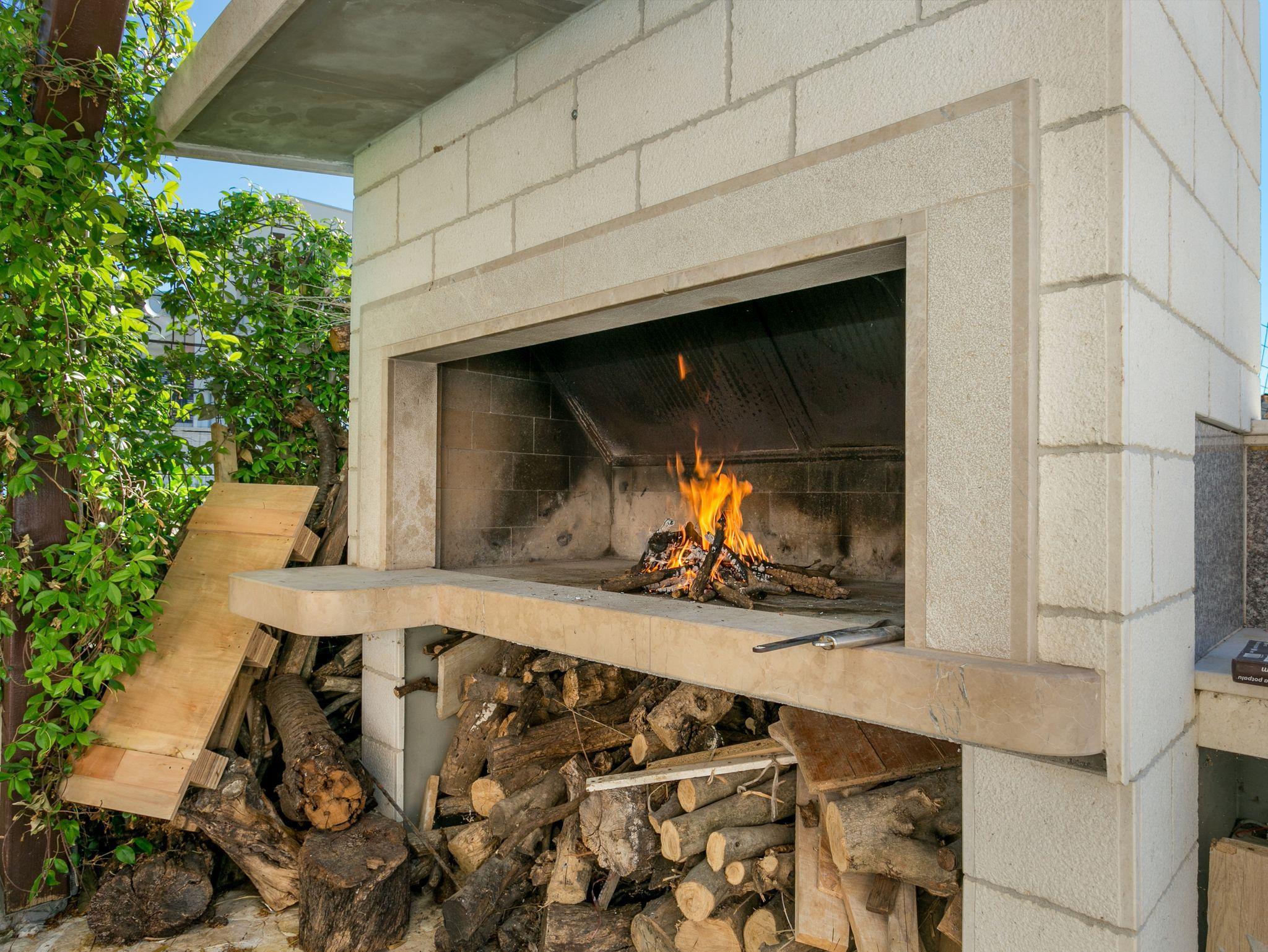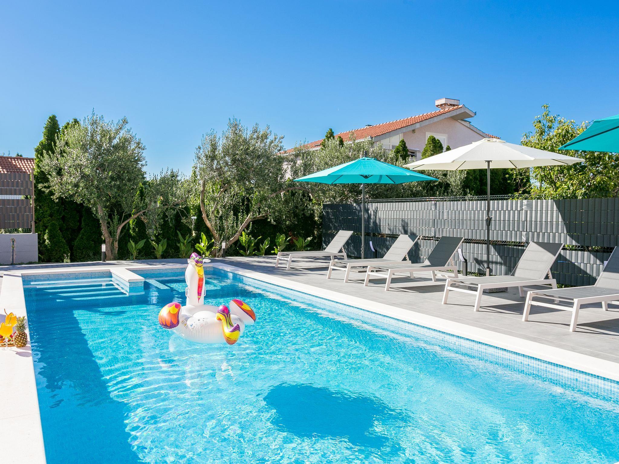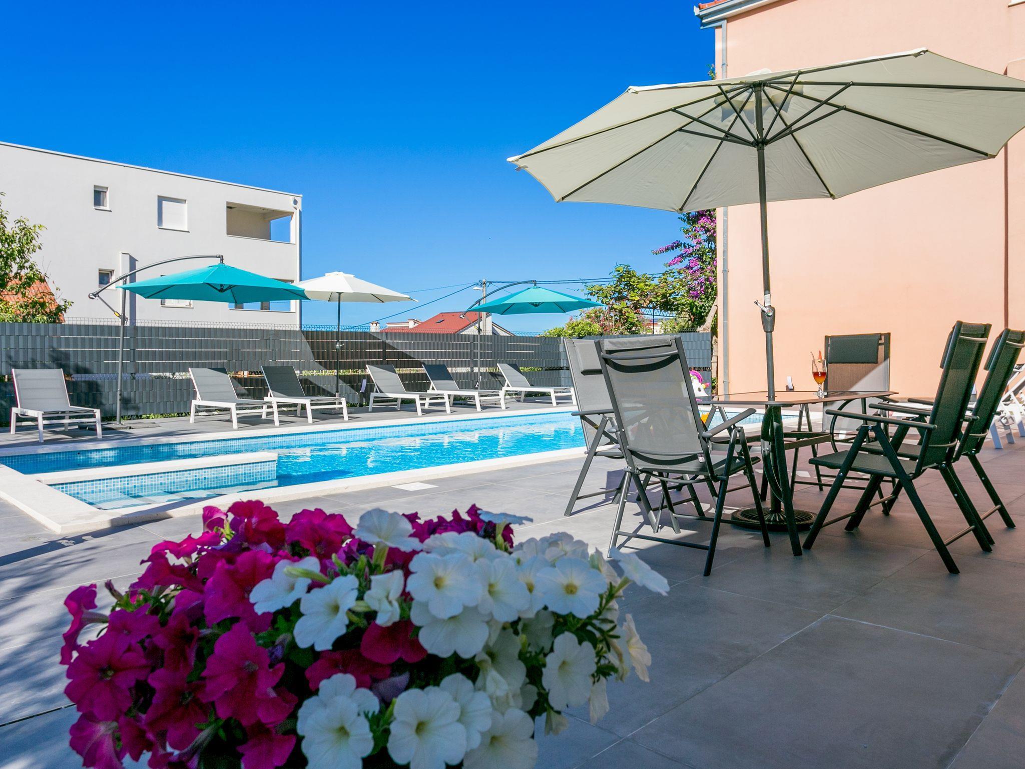 Hof (120m2, Kinderbereich, Sitzbereich), Parkplatz (Anzahl der Parkplätze: 4, Entfernung vom Objekt: im Hof), Pool: gemeinsam, Dimensionen: 13m x 4.5m x 1.6m, Wassertyp: Süßwasser, Heizung: Ja, Grill: gemeinsam, WiFi Internet, Föhn, Bügeleisen, Bügelbrett, Kinderbett