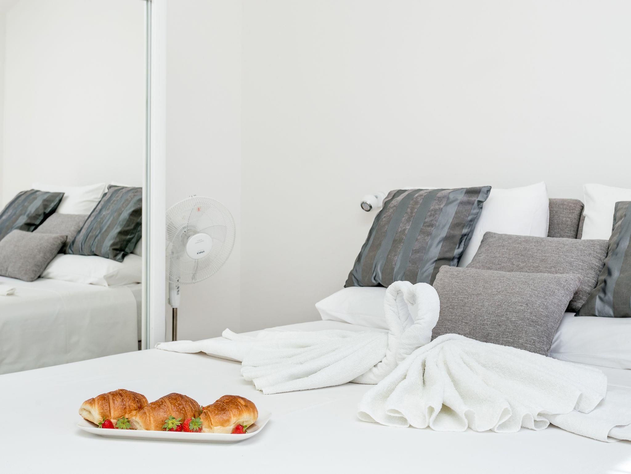 Ferienwohnung bietet Platz für 6 Gäste. Die Betten sind in Schlafzimmern, die es 2 gibt, und in Wohnzimmer, innerhalb einer Gesamtfläche von 73m2, angeordnet. Die Gäste haben eine eigene Terrasse zur Verfügung, auf der sie in warmen Sommernächten genießen können. Das Apartment bietet Meerblick. Es ist erlaubt, Speisen auf dem Gemeinschafts-Grill vorzubereiten. Während ihres Aufenthalts können Gäste das gemeinsam zur Nutzung stehende Schwimmbad benutzen. IM PREIS INBEGRIFFEN: Kurtaxe, Endreinigung, Klimatisierung, Pool, Parkplatz, Internet, Kinderbett, Bügeleisen, Bügelbrett, Föhn. Die Verfügbarkeit zusätzlicher Dienstleistungen in Ihrem reservierten Termin und die Preise derselben (falls nicht aufgeführt) müssen im Voraus überprüft werden. Zusätzliche Dienstleistungen die in der Zahlungsaufforderung nicht aufgeführt sind werden direkt beim Vermieter bezahlt, angenommen der Gast nutzt auch diese.