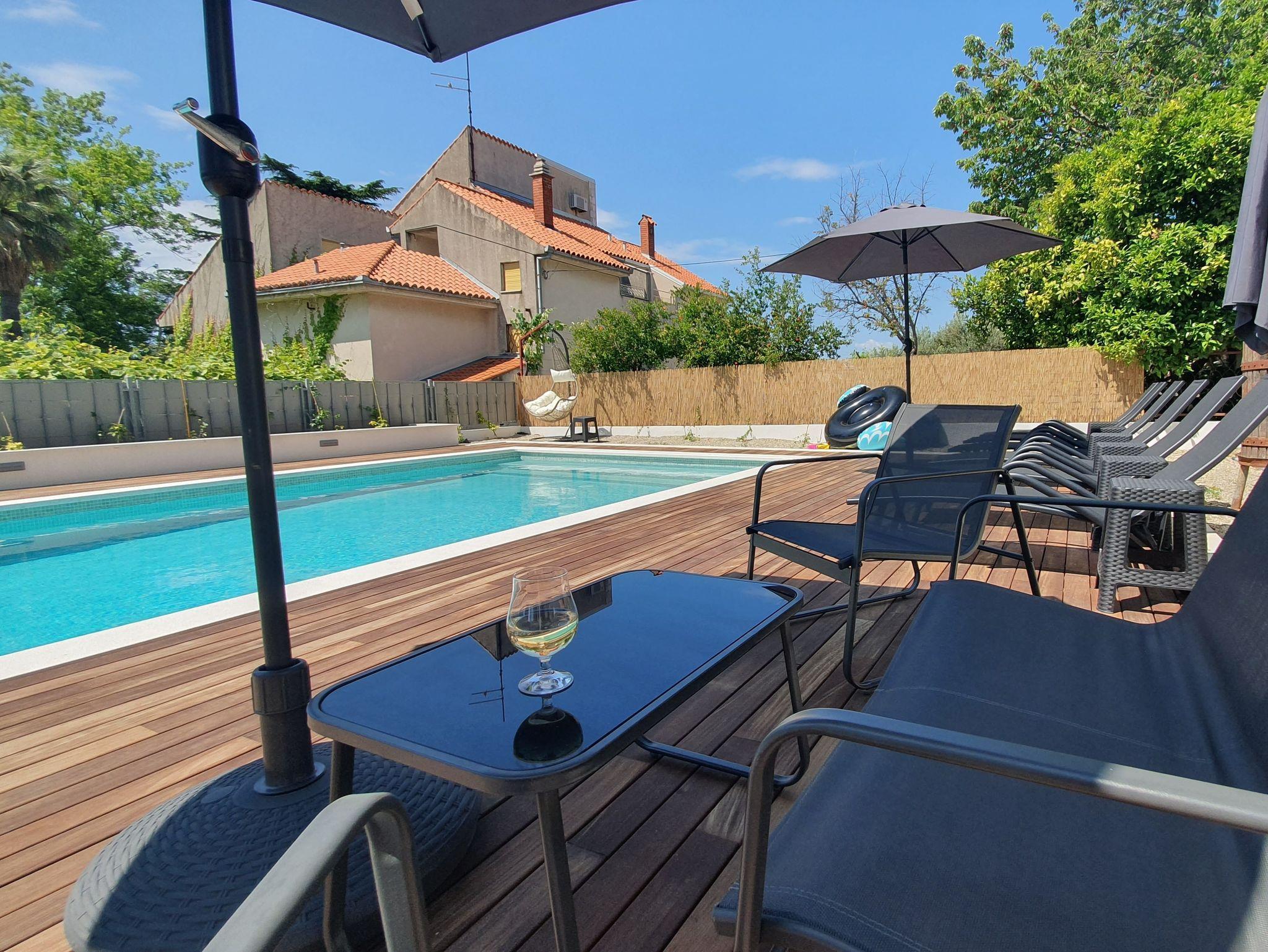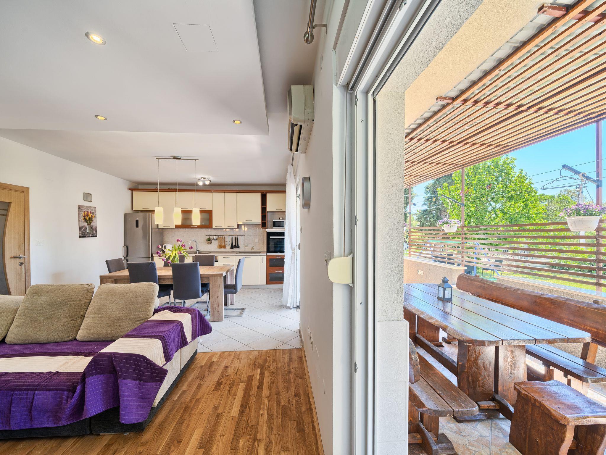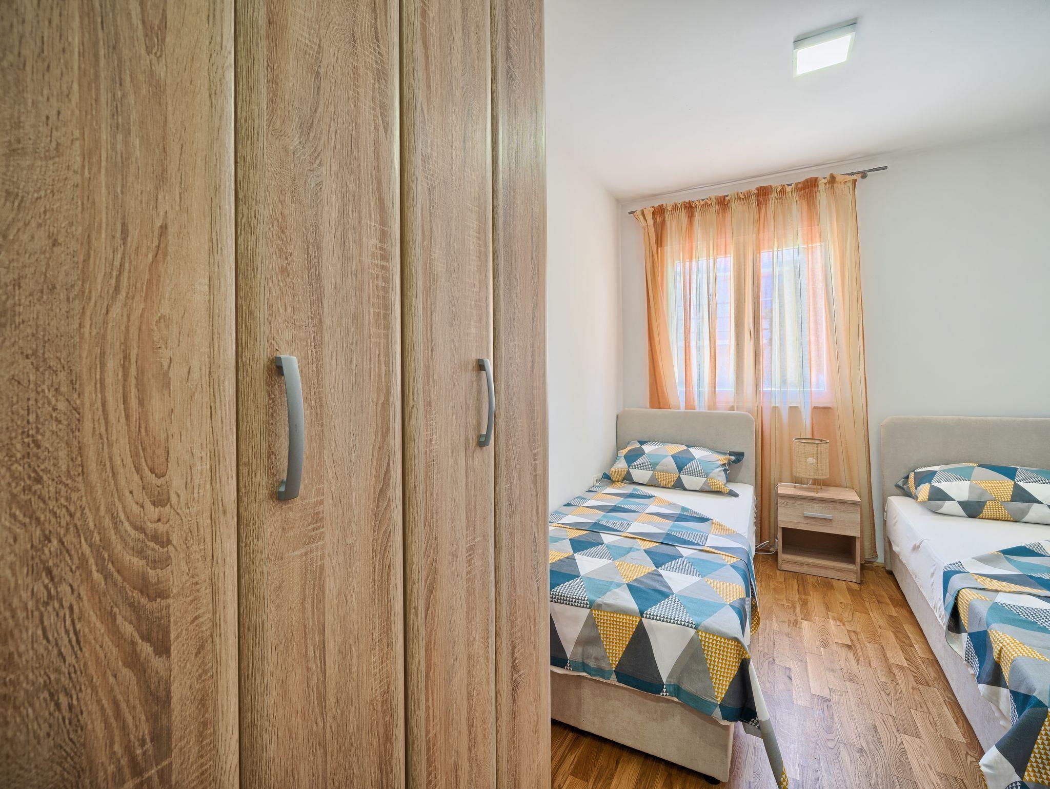 Ferienwohnung bietet Platz für 5 Gäste. Die Betten sind in Schlafzimmern, die es 2 gibt, innerhalb einer Gesamtfläche von 60m2, angeordnet. Die Gäste haben eine eigene Terrasse zur Verfügung, auf der sie in warmen Sommernächten genießen können. Für vollen Genuss und Entspannung gibt es einen privaten Grill für Gäste dieser Unterkunft. Während ihres Aufenthalts können Gäste das gemeinsam zur Nutzung stehende Schwimmbad benutzen. IM PREIS INBEGRIFFEN: Kurtaxe, Endreinigung, Klimatisierung, Pool, Parkplatz, Internet, Kinderbett, Bügeleisen, Bügelbrett, Föhn, tragbarer Grill, 2 Kinderbettchen (im Preis enthalten). Die Verfügbarkeit zusätzlicher Dienstleistungen in Ihrem reservierten Termin und die Preise derselben (falls nicht aufgeführt) müssen im Voraus überprüft werden. Zusätzliche Dienstleistungen die in der Zahlungsaufforderung nicht aufgeführt sind werden direkt beim Vermieter bezahlt, angenommen der Gast nutzt auch diese.