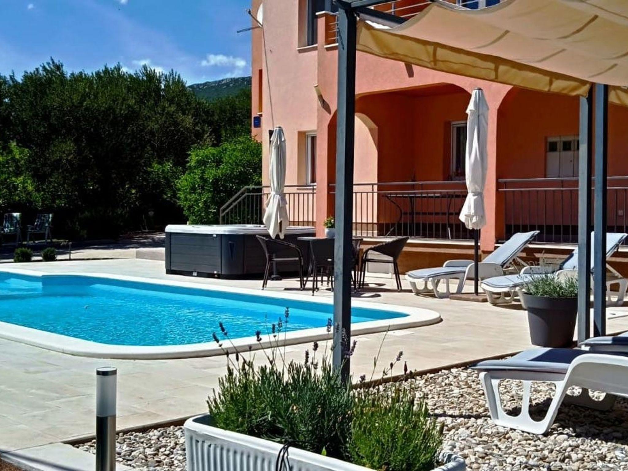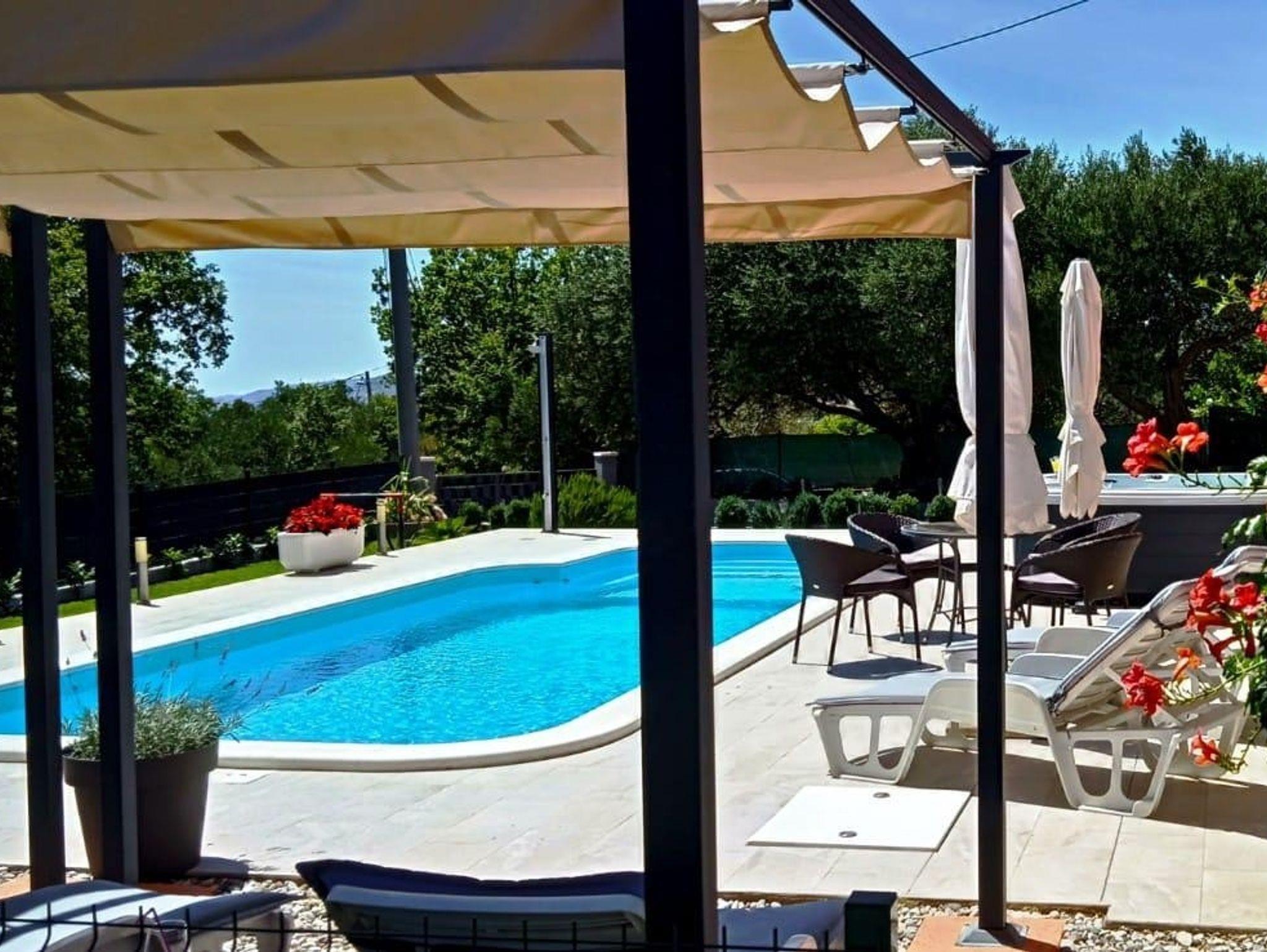 Umgebung des Objekts (Eingerichtet), Hof (400m2, Kinderbereich, Sitzbereich), Parkplatz (Anzahl der Parkplätze: 4, Entfernung vom Objekt: im Hof), Pool: privat, Dimensionen: 10m x 4m x 1.5m, WiFi Internet, Fahrrad (Anzahl: 5), Föhn, Bügeleisen, Bügelbrett, Kinderbett