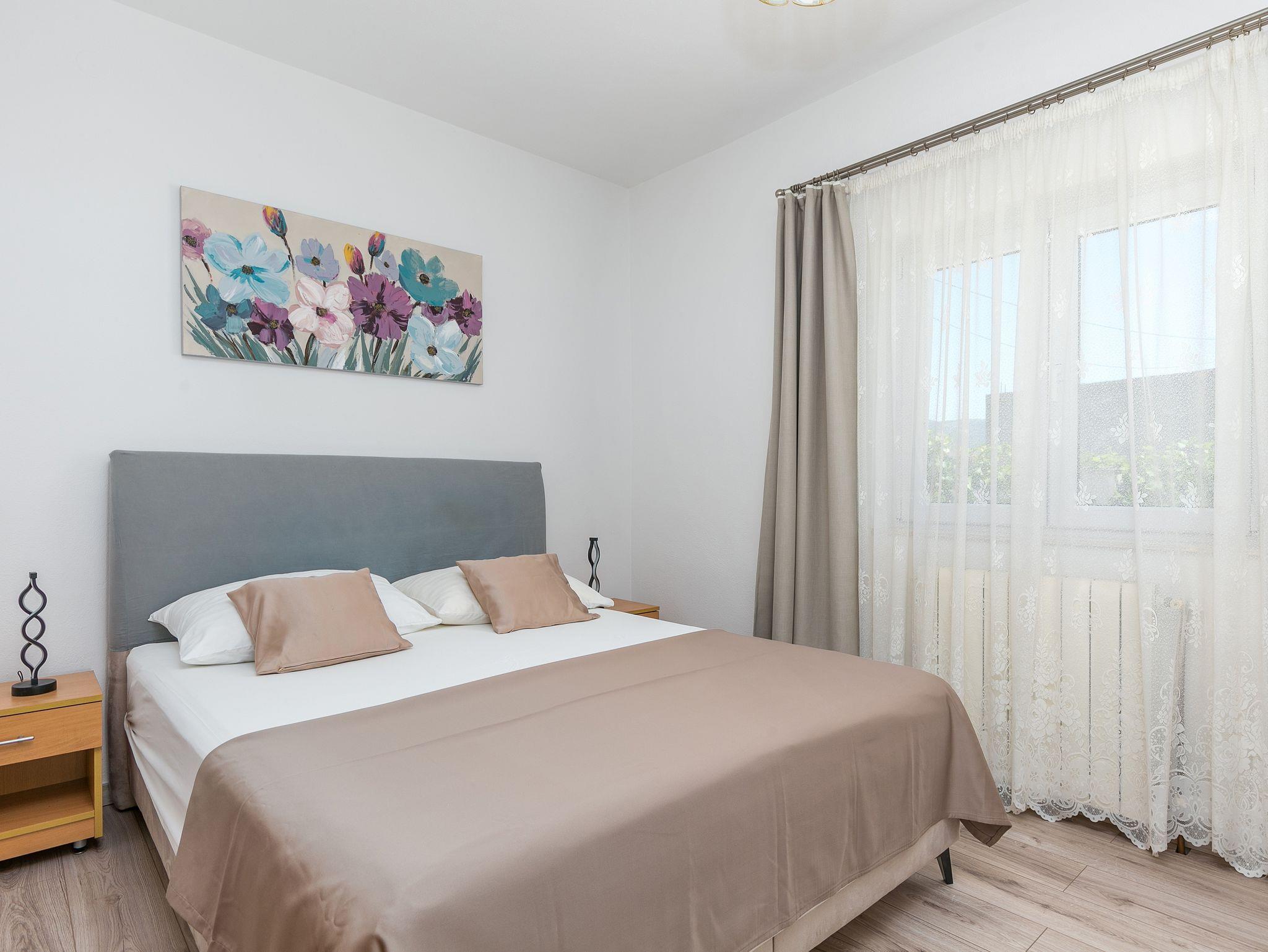 Ferienwohnung bietet Platz für 5 Gäste. Die Betten sind in Schlafzimmern, die es 1 gibt, und in Wohnzimmer, innerhalb einer Gesamtfläche von 32m2, angeordnet. Die Gäste haben eine eigene Terrasse zur Verfügung, auf der sie in warmen Sommernächten genießen können. Das Apartment bietet Meerblick. Es ist erlaubt, Speisen auf dem Gemeinschafts-Grill vorzubereiten. IM PREIS INBEGRIFFEN: Kurtaxe, Endreinigung, Klimatisierung, Zentralheizung, Parkplatz, Internet, Kinderbett, Föhn. VERBINDLICHE ZUSÄTZLICHE KOSTEN: Aufzahlung für Kurzaufenthalte (prozentualer Zuschlag pro Nächtigungsanzahl: 30% - 1, 20% - 2, 10% - 3). Die Verfügbarkeit zusätzlicher Dienstleistungen in Ihrem reservierten Termin und die Preise derselben (falls nicht aufgeführt) müssen im Voraus überprüft werden. Zusätzliche Dienstleistungen die in der Zahlungsaufforderung nicht aufgeführt sind werden direkt beim Vermieter bezahlt, angenommen der Gast nutzt auch diese. Ermäßigung auf den Grundpreis: Gratistag 14=13 (bei einem Aufenthalt von 14 Tagen oder mehr erhalten Sie einen Gratistag für den Aufenthalt bis 31.12.26).