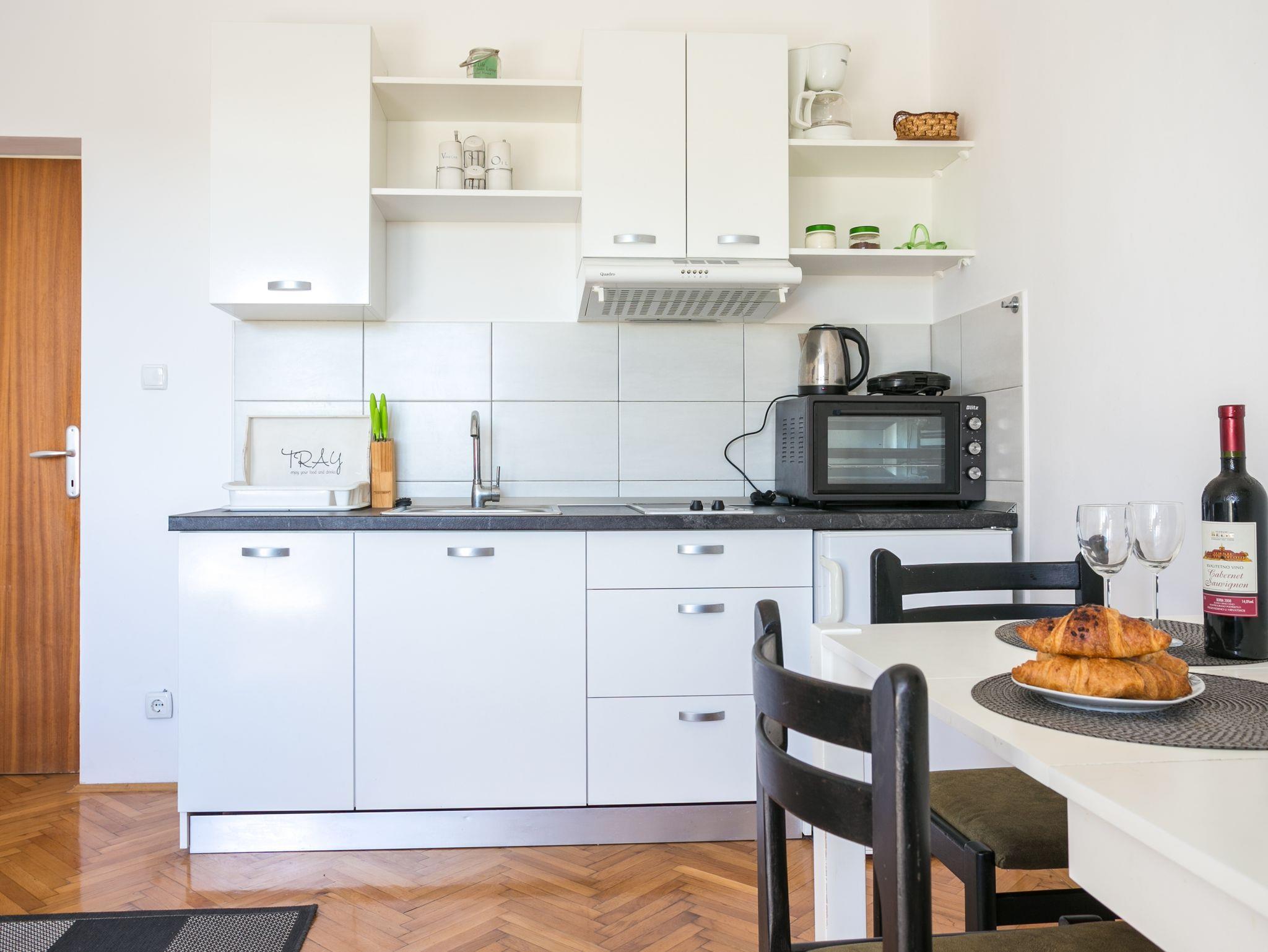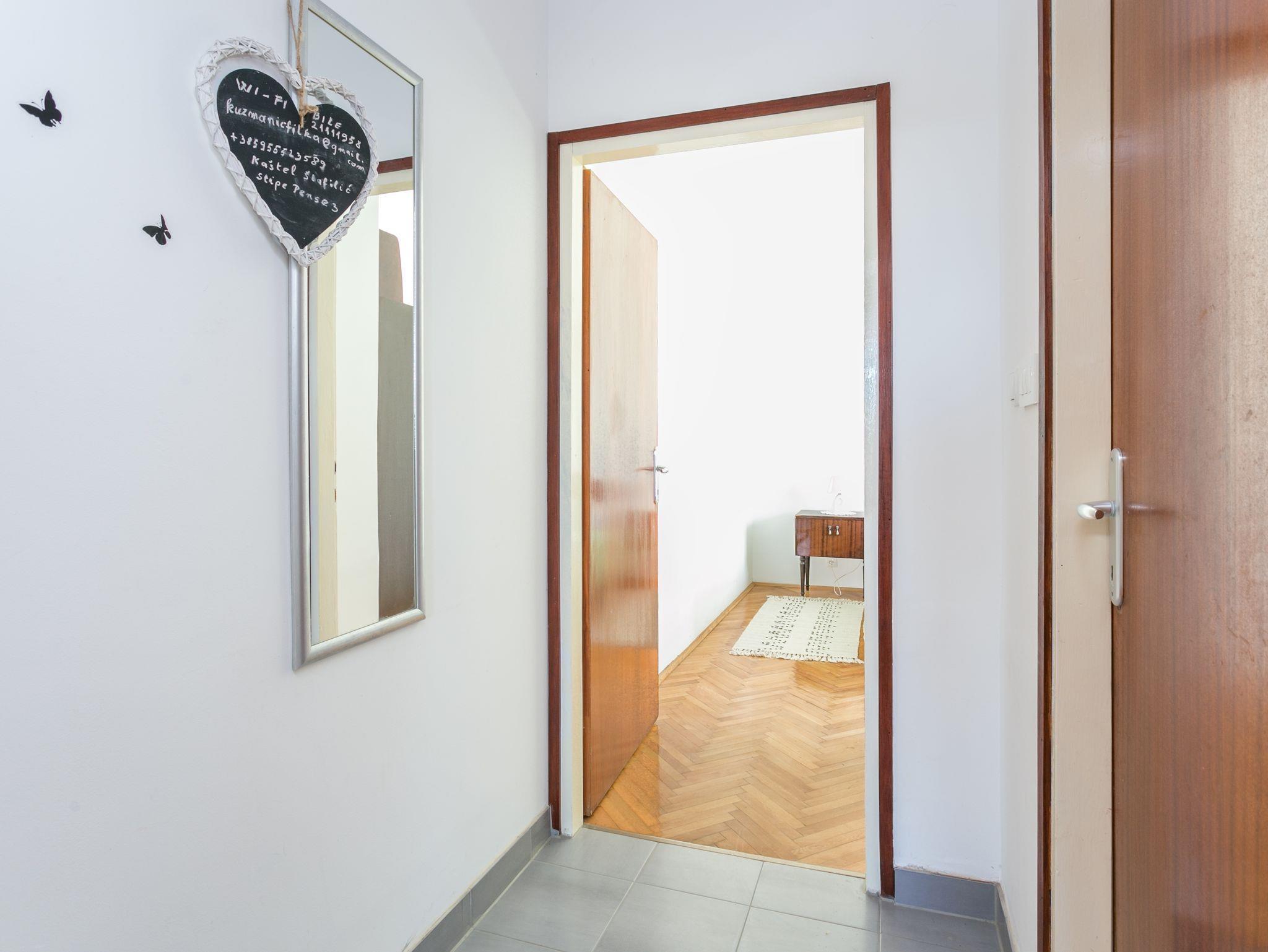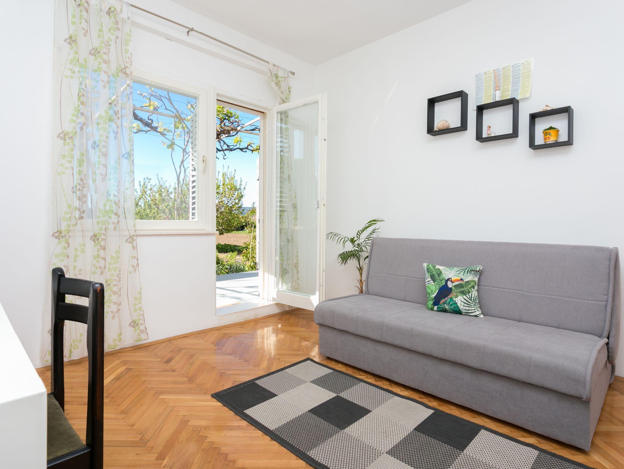 Ferienwohnung bietet Platz für 4 Gäste. Die Betten sind in Schlafzimmern, die es 1 gibt, und in Wohnzimmer, innerhalb einer Gesamtfläche von 39m2, angeordnet. Die Gäste haben eine eigene Terrasse zur Verfügung, auf der sie in warmen Sommernächten genießen können. Das Apartment bietet Meerblick. Für vollen Genuss und Entspannung gibt es einen privaten Grill für Gäste dieser Unterkunft. In der Unterkunftseinheit besteht die Möglichkeit des Mitbringens von Haustieren, und die Dienstleistung ist im Preis der Unterkunft enthalten. IM PREIS INBEGRIFFEN: Kurtaxe, Endreinigung, Klimatisierung, Parkplatz, Internet, Haustiere, Bügeleisen, Bügelbrett, Föhn. VERBINDLICHE ZUSÄTZLICHE KOSTEN: Aufzahlung für Kurzaufenthalte (prozentualer Zuschlag pro Nächtigungsanzahl: 30% - 1, 20% - 2, 10% - 3). Die Verfügbarkeit zusätzlicher Dienstleistungen in Ihrem reservierten Termin und die Preise derselben (falls nicht aufgeführt) müssen im Voraus überprüft werden. Zusätzliche Dienstleistungen die in der Zahlungsaufforderung nicht aufgeführt sind werden direkt beim Vermieter bezahlt, angenommen der Gast nutzt auch diese.