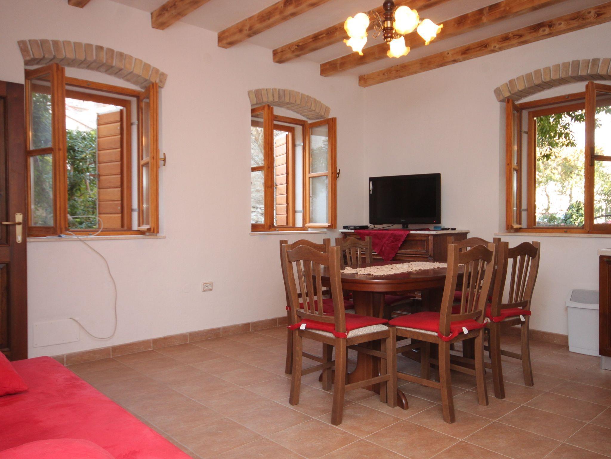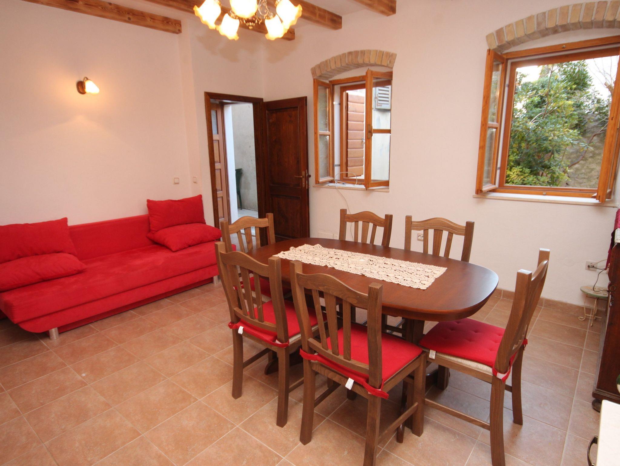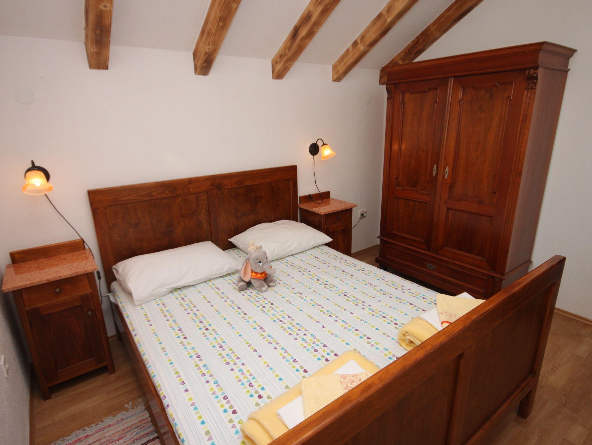 Haus bietet Platz für 9 Gäste. Die Betten sind in Schlafzimmern, die es 3 gibt, und in Esszimmer, innerhalb einer Gesamtfläche von 62m2, angeordnet. Die Gäste haben eine eigene Terrasse zur Verfügung, auf der sie in warmen Sommernächten genießen können. Das Haus bietet Meerblick. Für vollen Genuss und Entspannung gibt es einen privaten Grill für Gäste dieser Unterkunft. In der Unterkunftseinheit besteht die Möglichkeit des Mitbringens von Haustieren gegen Aufpreis. IM PREIS INBEGRIFFEN: Kurtaxe, Endreinigung, Klimatisierung, Parkplatz, Internet, Wäschewaschen, Kinderbett, Bügelbrett, Föhn, tragbarer Grill. VERBINDLICHE ZUSÄTZLICHE KOSTEN: Aufzahlung für Kurzaufenthalte (prozentualer Zuschlag pro Nächtigungsanzahl: 30% - 1, 20% - 2, 10% - 3). UNVERBINDLICHE ZUSÄTZLICHE KOSTEN: Haustiere (5,00 € pro Nacht). Die Verfügbarkeit zusätzlicher Dienstleistungen in Ihrem reservierten Termin und die Preise derselben (falls nicht aufgeführt) müssen im Voraus überprüft werden. Zusätzliche Dienstleistungen die in der Zahlungsaufforderung nicht aufgeführt sind werden direkt beim Vermieter bezahlt, angenommen der Gast nutzt auch diese.