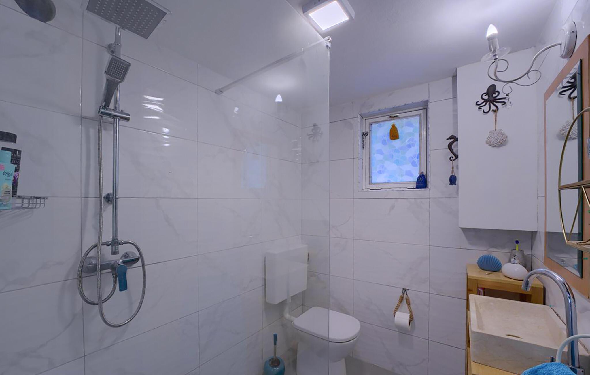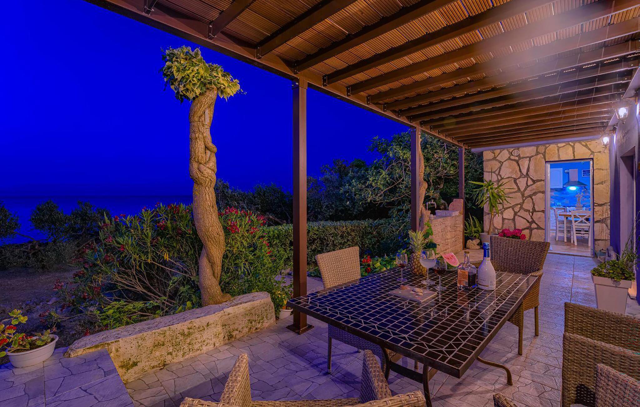 Ønsker I at have privatliv og havet lige uden for døren? Så er I kommet til det rette stes! Huset byder jeres lille familie eller to vennepar velkommen. Den meget rolige beliggenhed lover jer en afslappende ferie, som I kan tilbringe ikke kun i de smukke værelser, men også på den store terrasse med en smuk, beplantet pergola. Her kan I nyde jeres måltider med en fantastisk panoramaudsigt over havet.