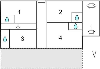 Soveværelse (nr. 1) - 1 Soveplads. (Enkeltseng(e)). 2 Sovepladser. (Dobbeltseng(e)).