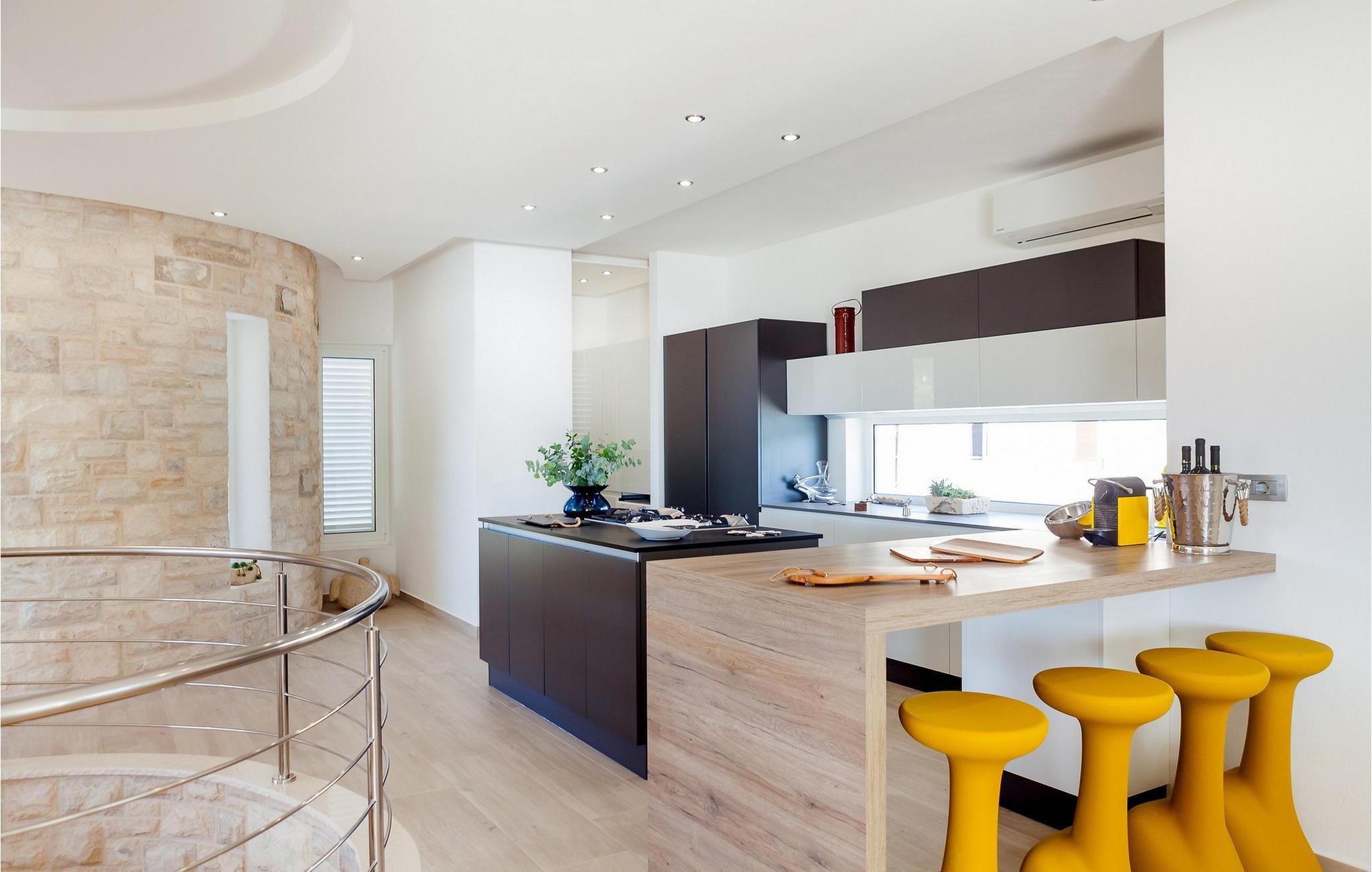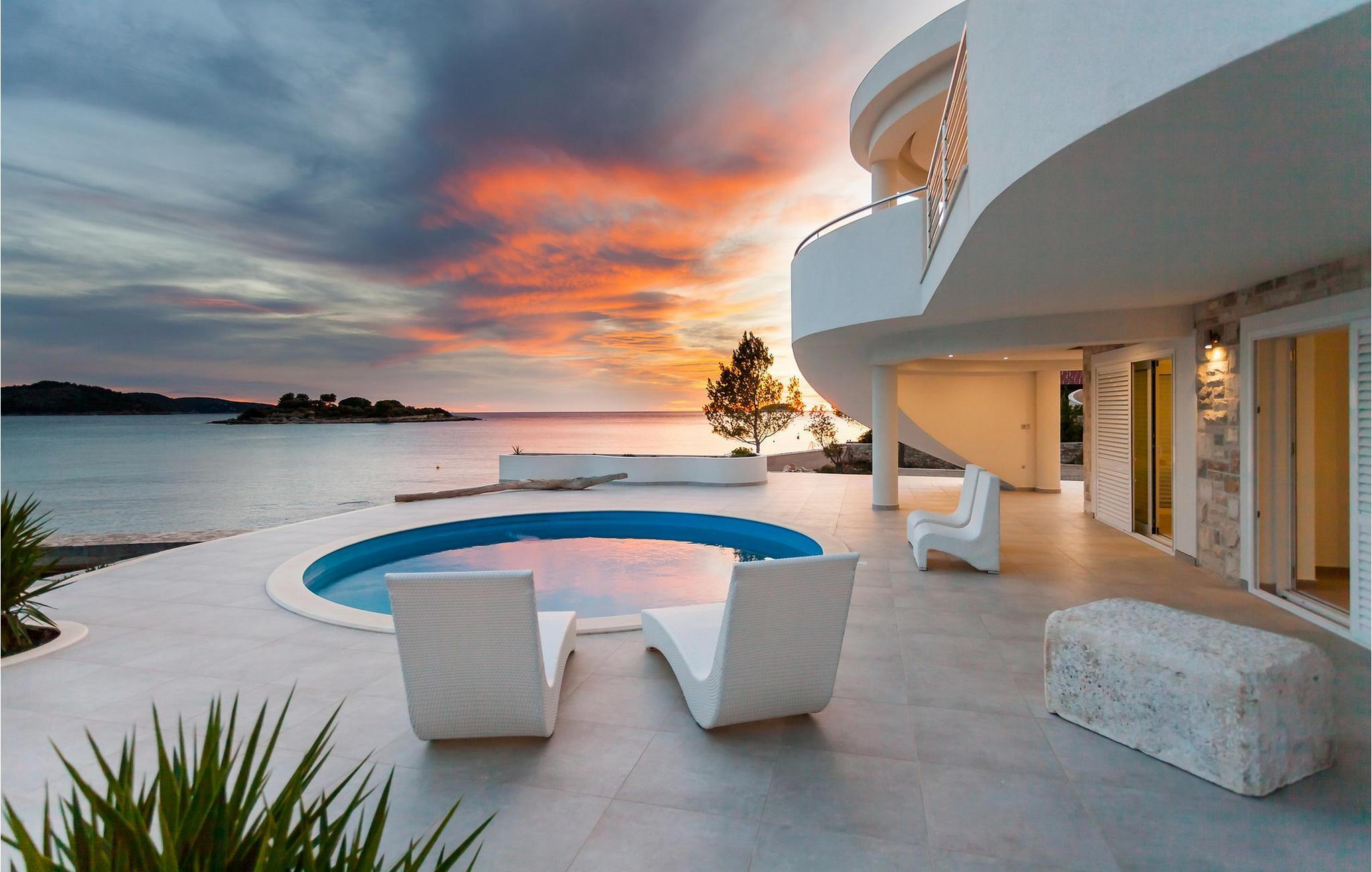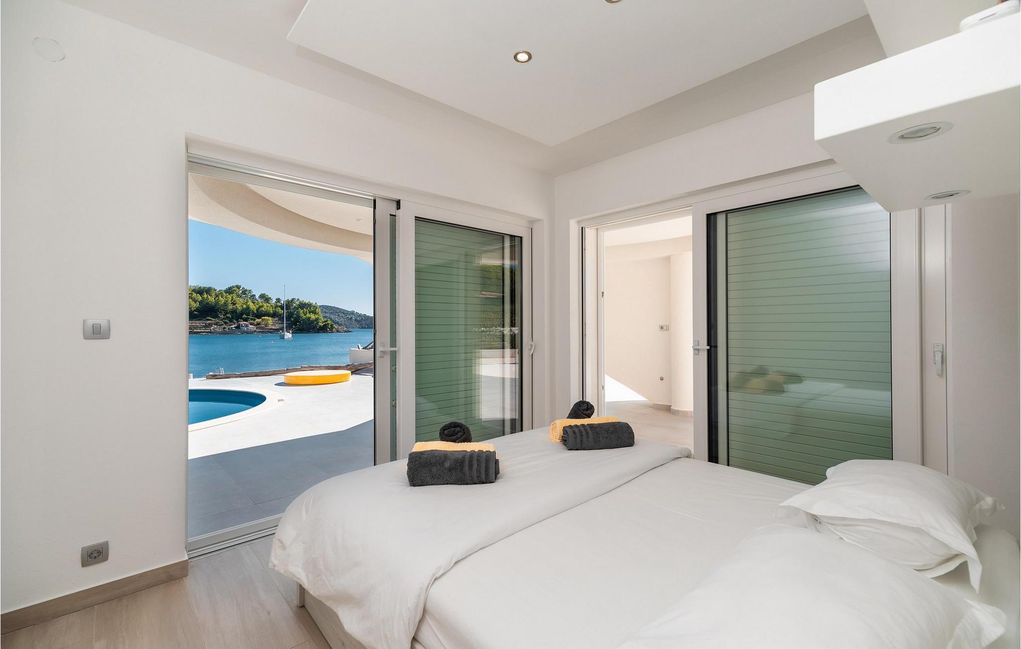 Nyd jeres ferie i denne eksklusive villa, der ligger direkte ved havet i Vela Luka på øen Korcula. Tilbring jeres ferie i Villa Soleil. Den moderne arkitektur kombinerer stilfuld æstetik med funktionelt design og skaber en luksuriøs atmosfære. Oplev de to etager med svingende trapper og lyse værelser. Den åbne stue med et fuldt udstyret køkken, spisestue og stue er fyldt med lys og tilbyder en spektakulær udsigt over havet. På den rummelige terrasse kan I nyde jeres måltider under åben himmel eller slappe af på en af liggestolene ved den cirkulære pool - det perfekte sted at se solnedgangen. Direkte adgang til havet vil gøre jeres ferie uforglemmelig. Vela Luka, der ligger i den vestlige del af øen Korcula, er et ideelt udgangspunkt for jeres udforskninger. Denne charmerende by er rig på historie, kultur og middelhavsstemning. Tag på bådture til de omkringliggende øer, oplev skjulte bugter eller besøg den historiske gamle bydel i Korcula. Det omkringliggende område byder på mange muligheder for udendørsaktiviteter som vandreture, cykling og vandsport. Oplev dalmatisk køkken i byens hyggelige restauranter og nyd den afslappede atmosfære i denne unikke middelhavsregion. Bemærk venligst: Villaen er ikke egnet til børn under 12 år.