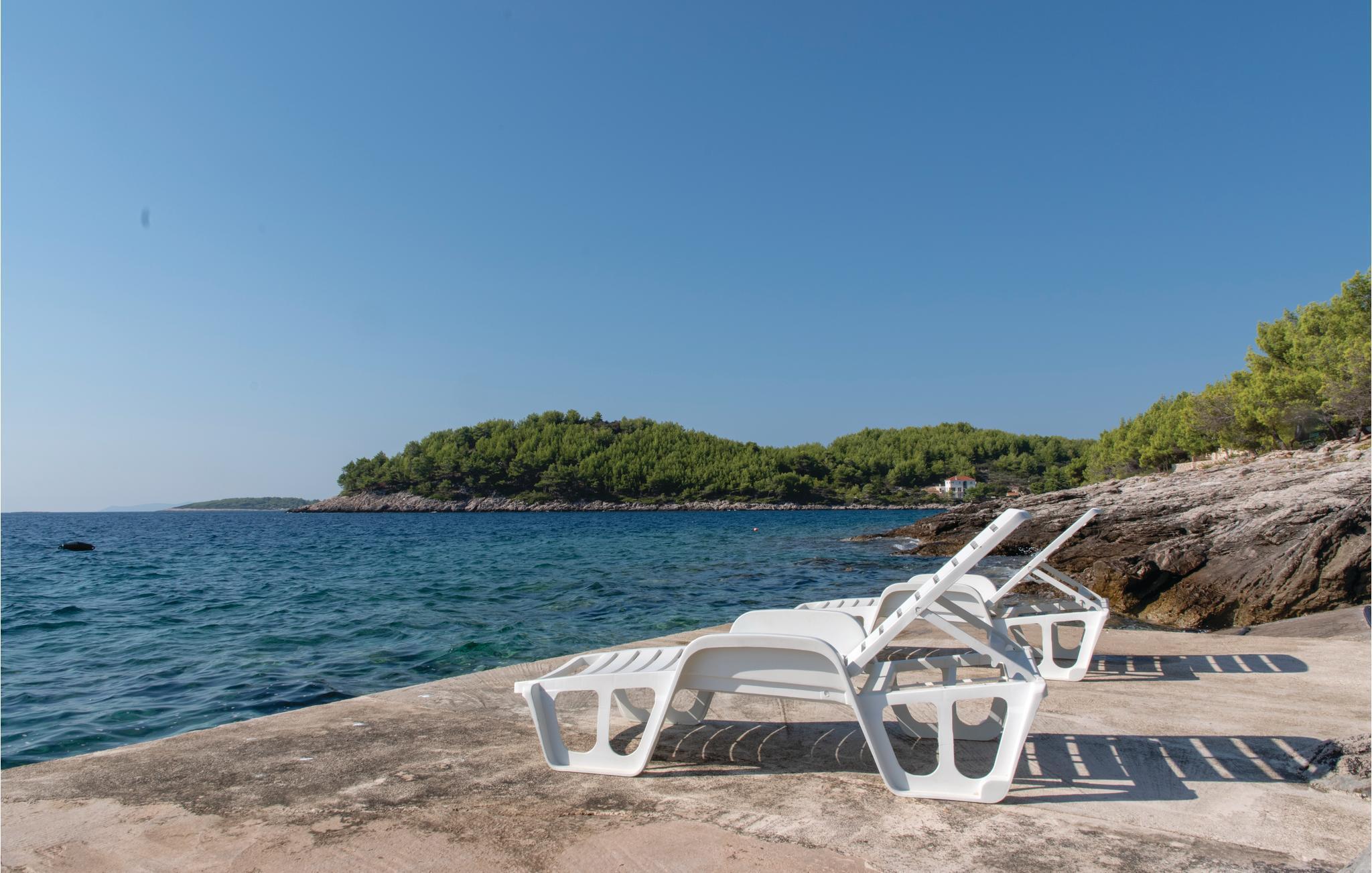 Denne indbydende og lyse feriebolig ligger på øverste etage, med en minimal loftshøjde på 86 cm, den ligger i et hus lige ved havet. I bor i byen Karbuni, i nærheden af det maleriske Vela Luka. Lejligheden har sin egen private indgang på første sal. Poolen der kun benyttes af jer og lejligheden er forbundet via en overdækket terrasse. Skøn panoramaudsigt over havet. Kun få meter fra huset fører en lille vej direkte til havet og en plateaustrand. Korcula er det rene paradis, hvis I vil dyrke sport og være aktive i ferien. Holder I af historie og kultur, så besøg den gamle bydel med mange seværdigheder. I kan se det skønne øhav i enten kajak eller robåd, som husets ejer stiller til rådighed til jer.