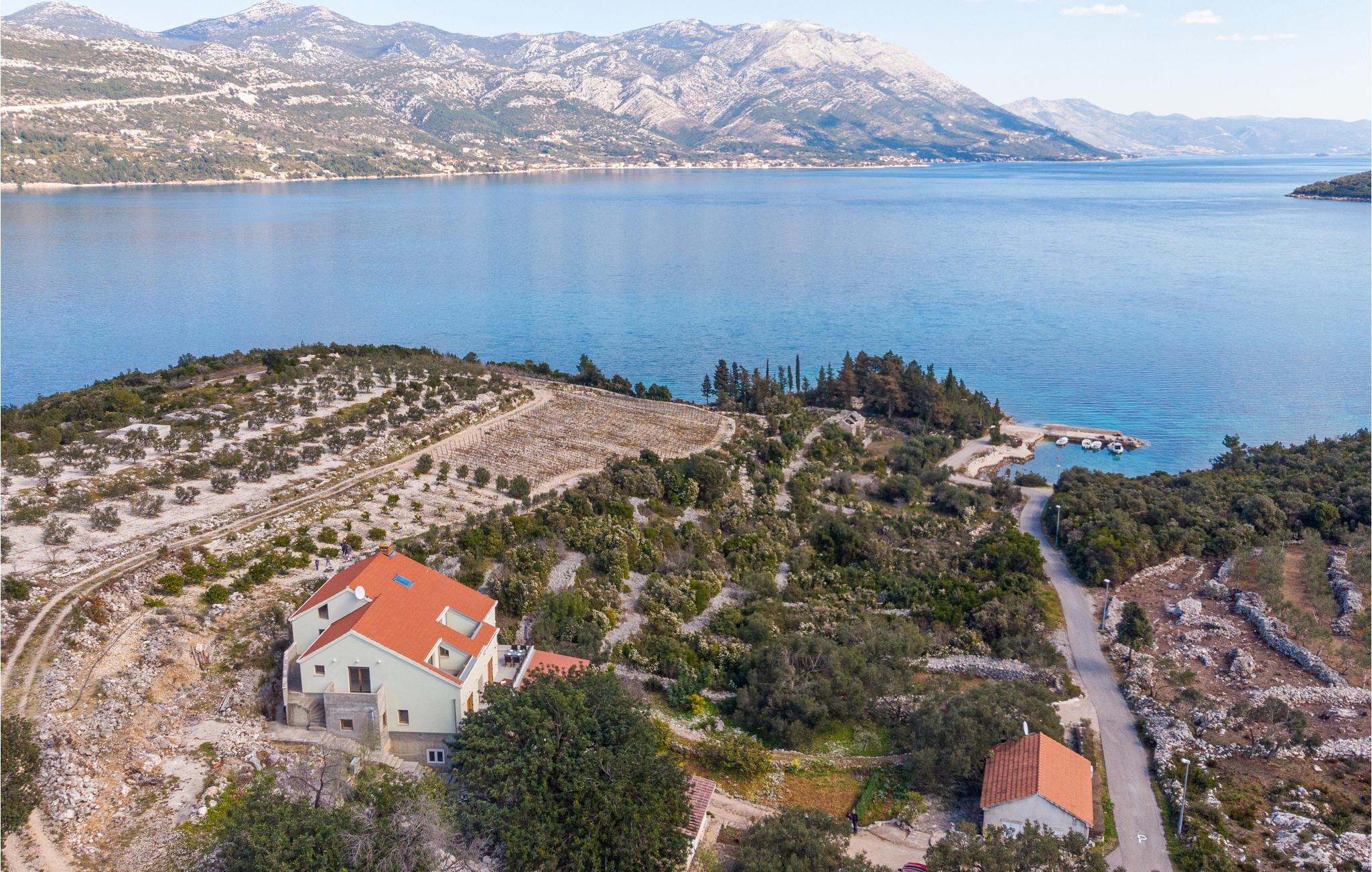 En 100 meter lang sti fører til en lille bugt, hvor der er en børnevenlig stenstrand. Der er også en god fiskerestaurant i nærheden, og byen Korcula ligger kun 10 minutters kørsel væk.