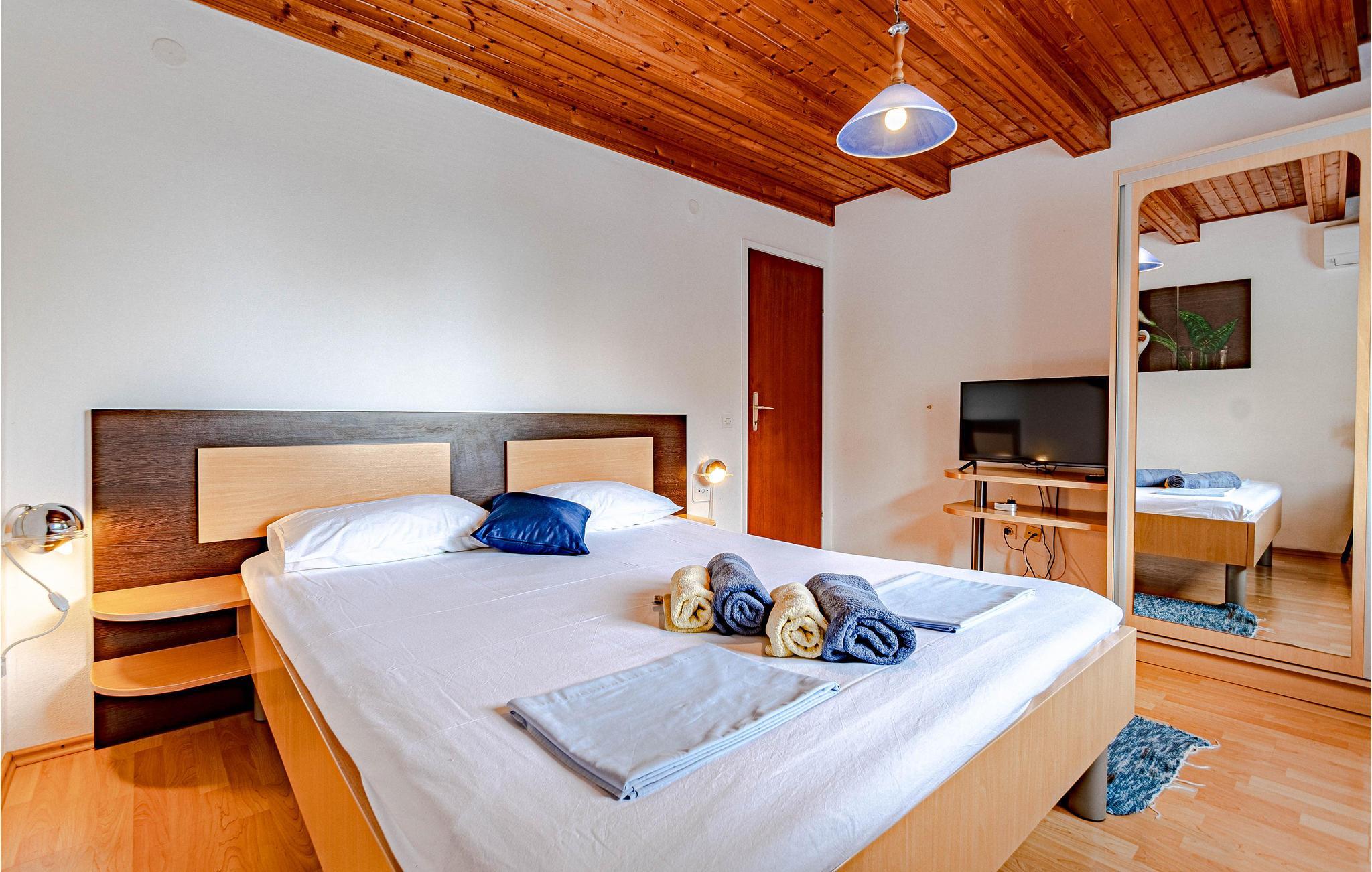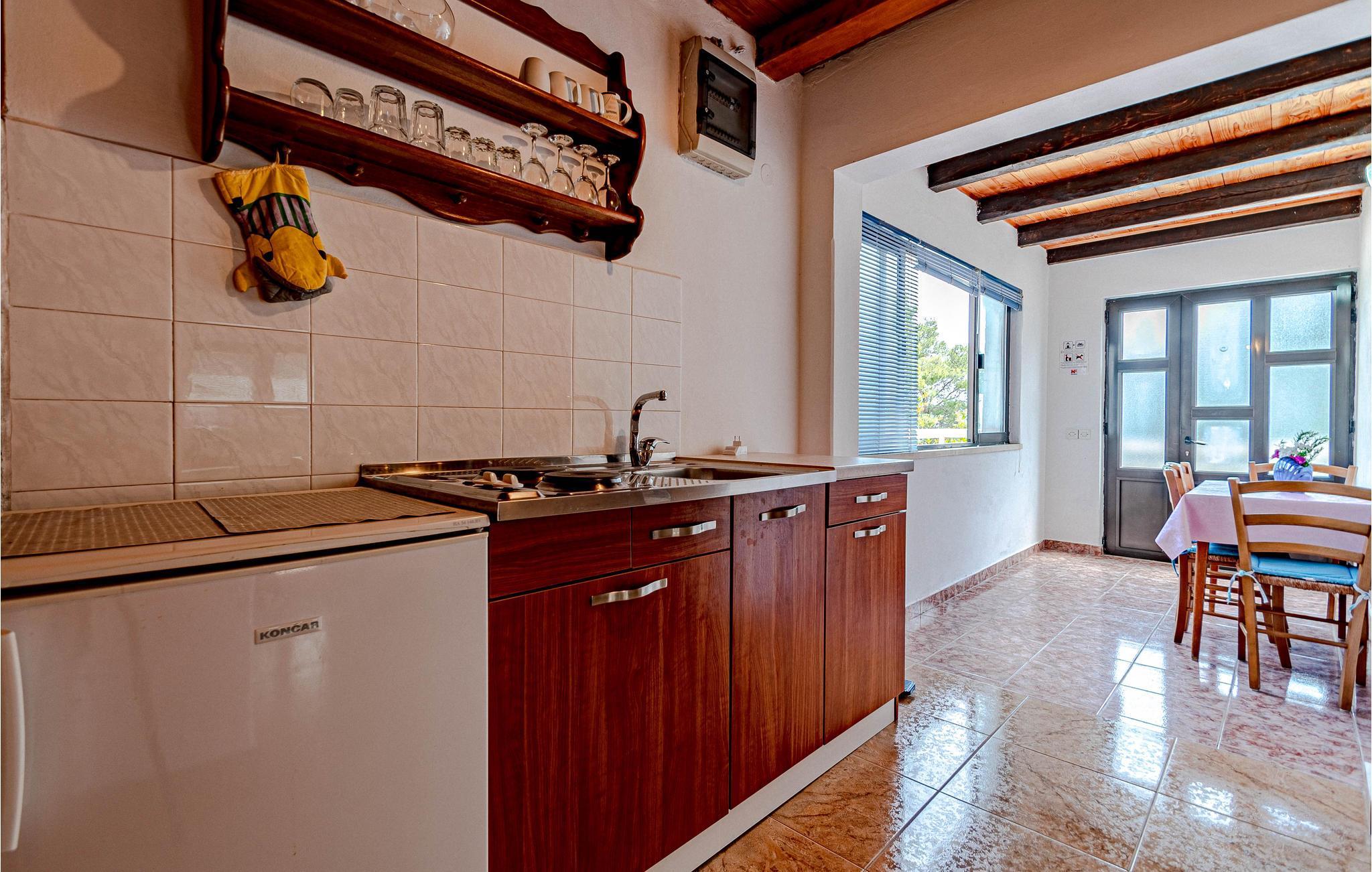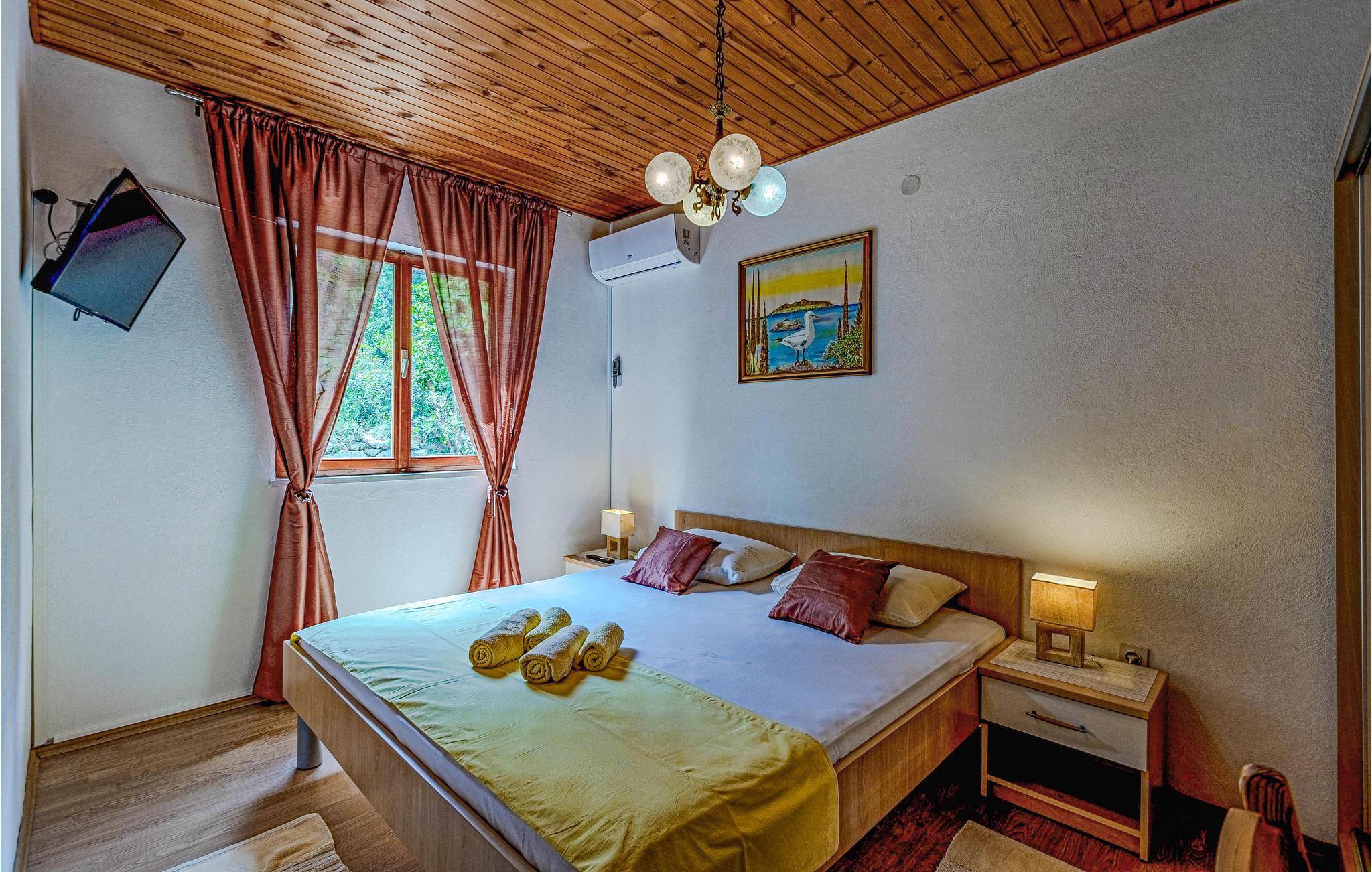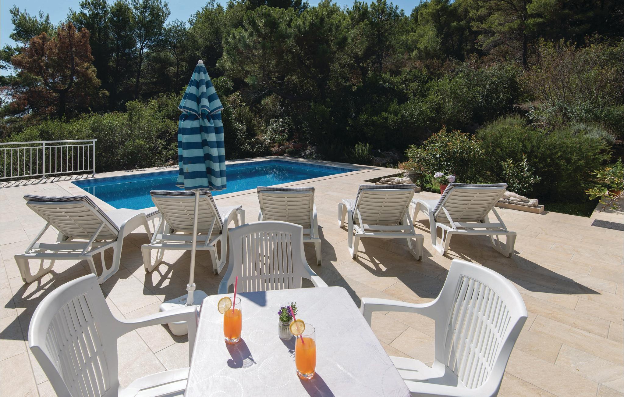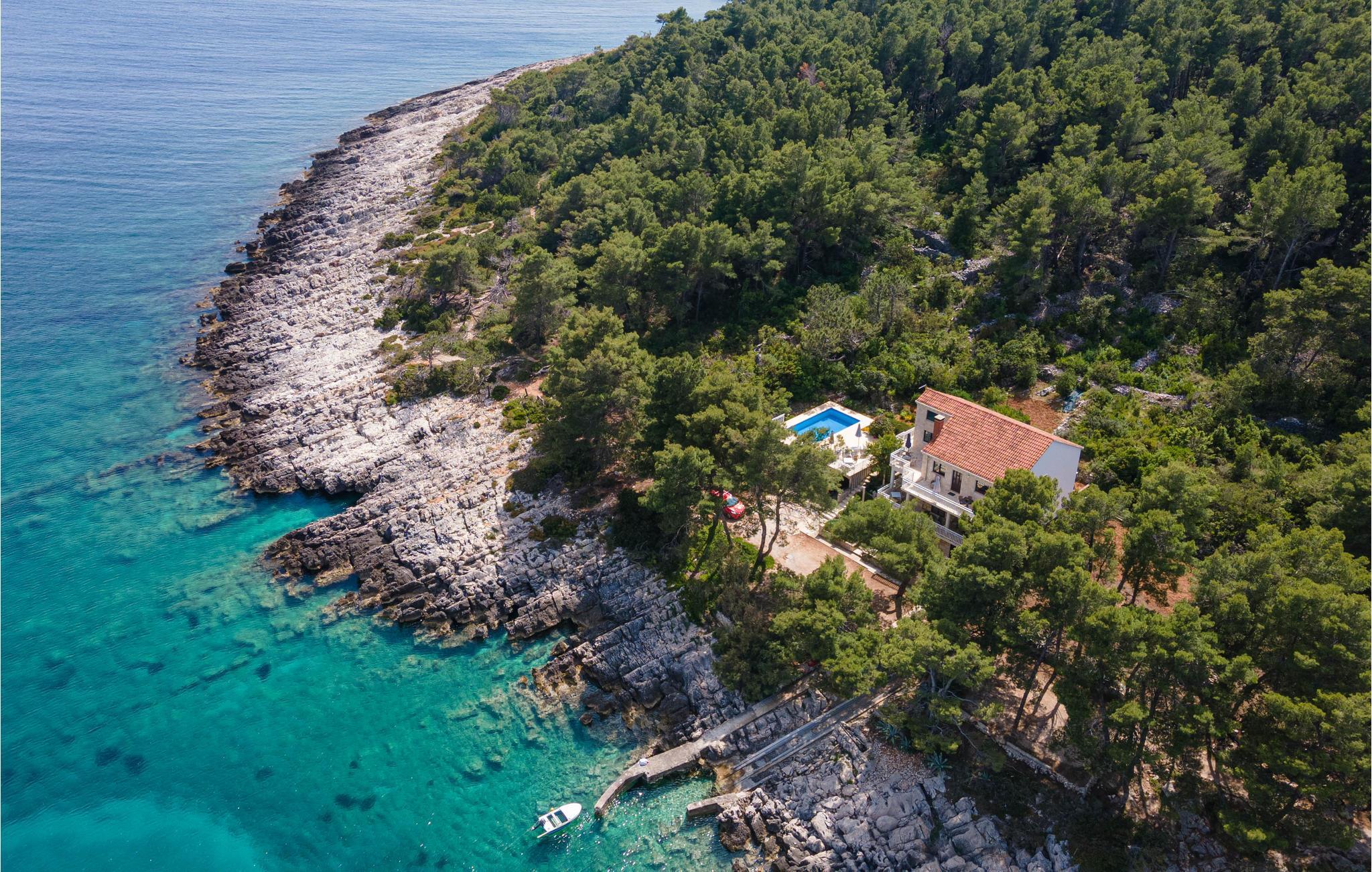 I en bugt kun få minutter til fods fra den dejligste sandstrand ligger dette feriehus. Det enkelt indrettede hus på Korcula er omgivet af en pinjeskov og består af fire separate lejligheder (udendørs trappe). Det indre er delvis renoveret og forskelligt indrettet. To enheder har store opholdstuer med køkken og udgang til store terrasser med udsigt over havet og pinjetræerne. En terrasse med pool. Huset ligger desuden i velholdte omgivelser. I gården bag huset med have har I en udendørs grill. Få meter fra feriehuset er der et betonplateau. Kun tre minutters gang væk venter den vidunderlige og populære sandstrand med restaurant og en café på jeres besøg.