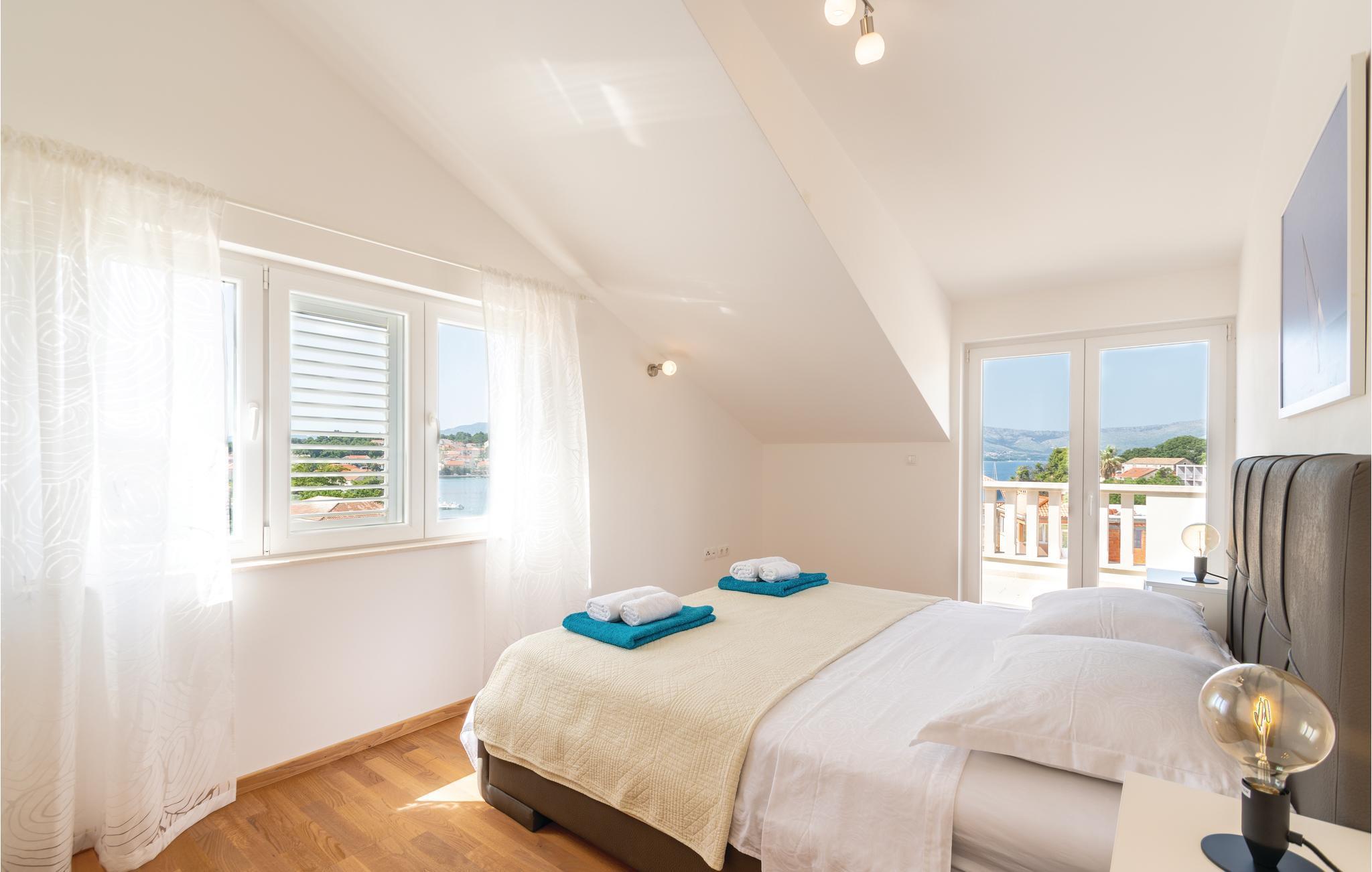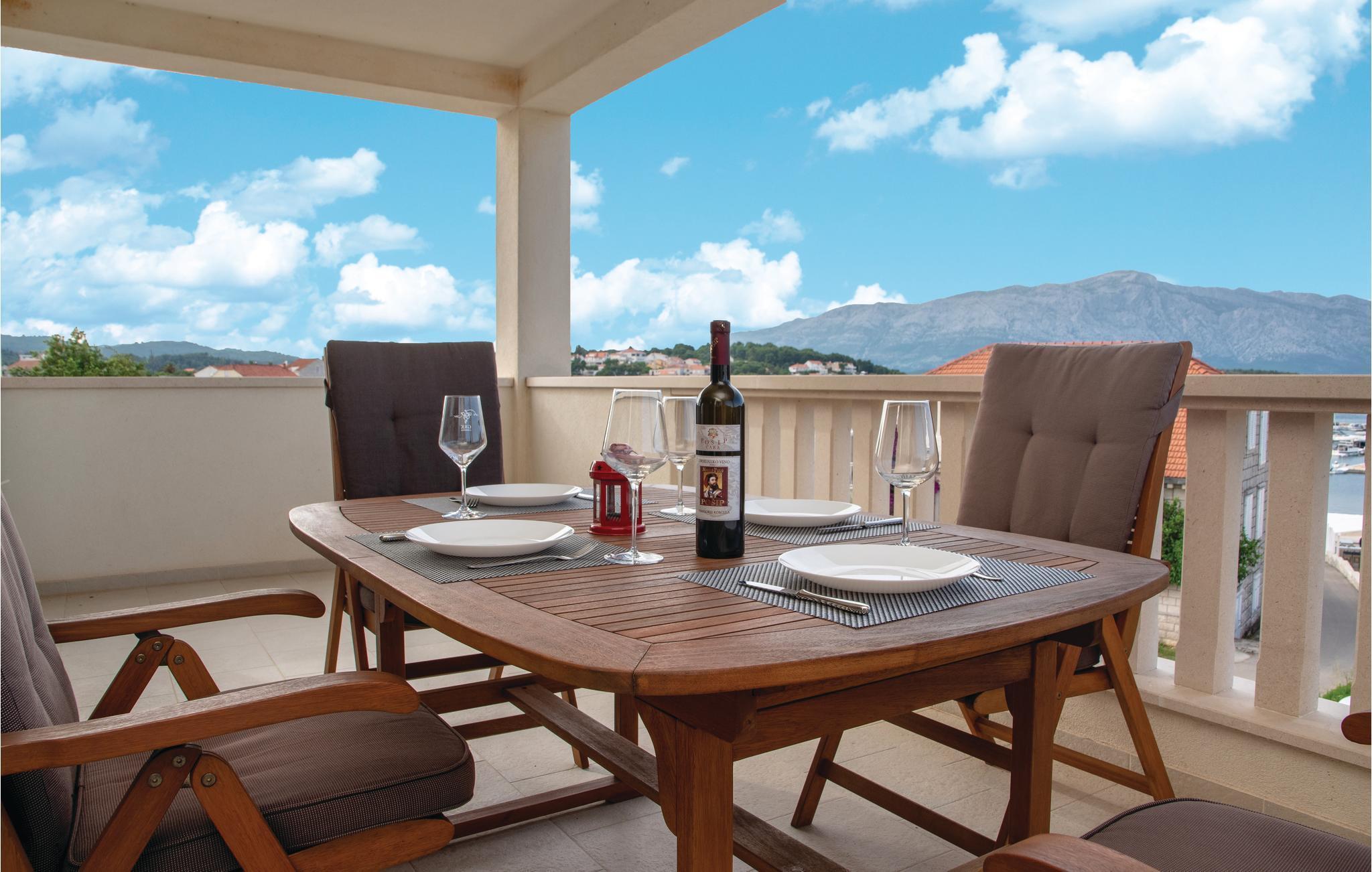 I centrum af den lille by Lumbarda, på den maleriske ø Korcula, ligger denne lyst og moderne indrettede ferielejlighed på stueetagen og 1. sal med indvendig trappe. Vi gør opmærksom op, at tagetagens skråvægge er på ca. 90 cm. Det komfortable appartement gør jeres ophold med havudsigt fra terrassen behageligt, på terrassen kan I opleve magiske solnedgange. Den populære ferieby Lumbarda begejstrer med underskønne strande og familievelige fritidstilbud. Der anbefales et besøg i den lille by Korcula, der betegnes som den sydlige Adriaterhavs perle.