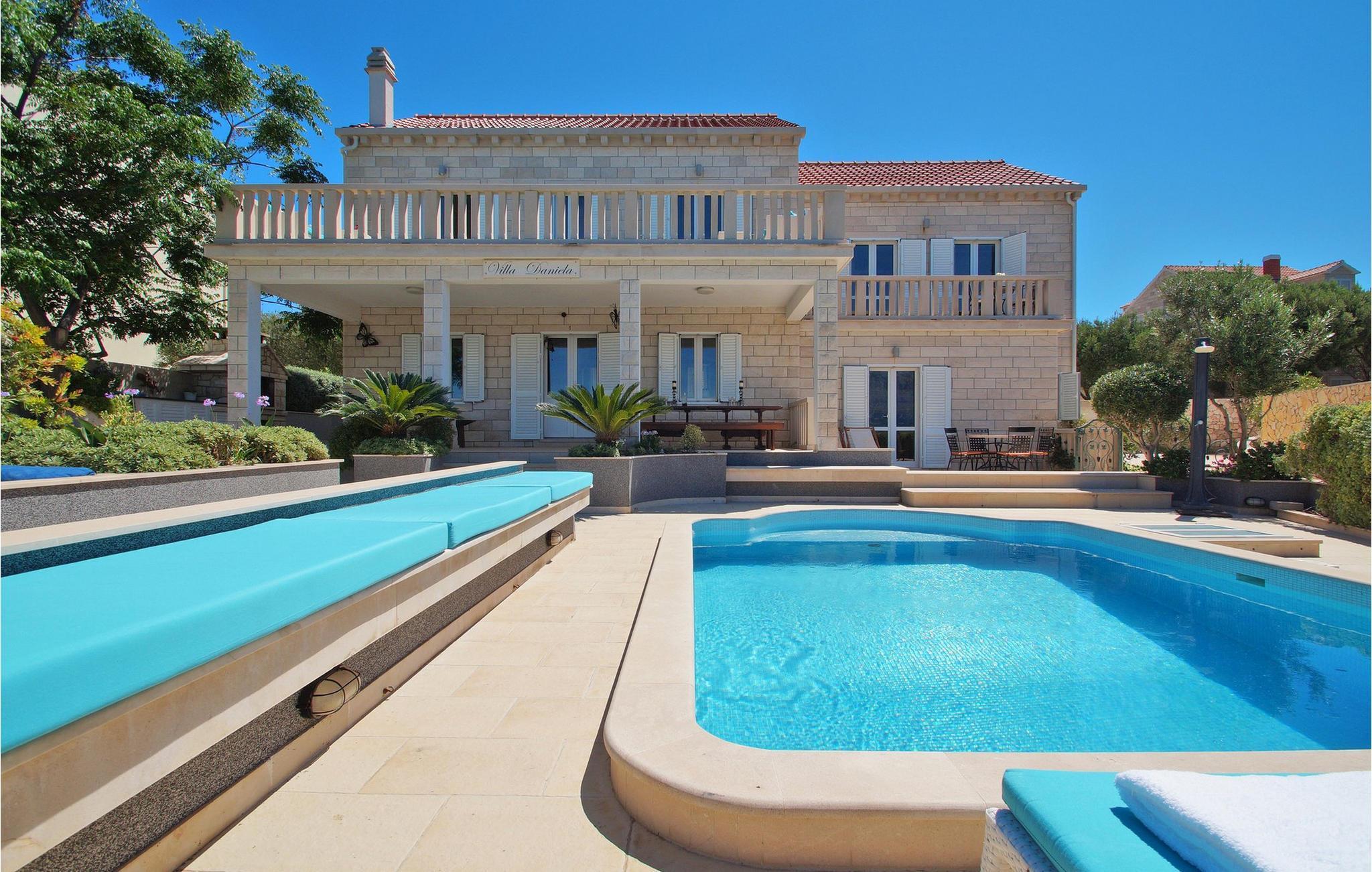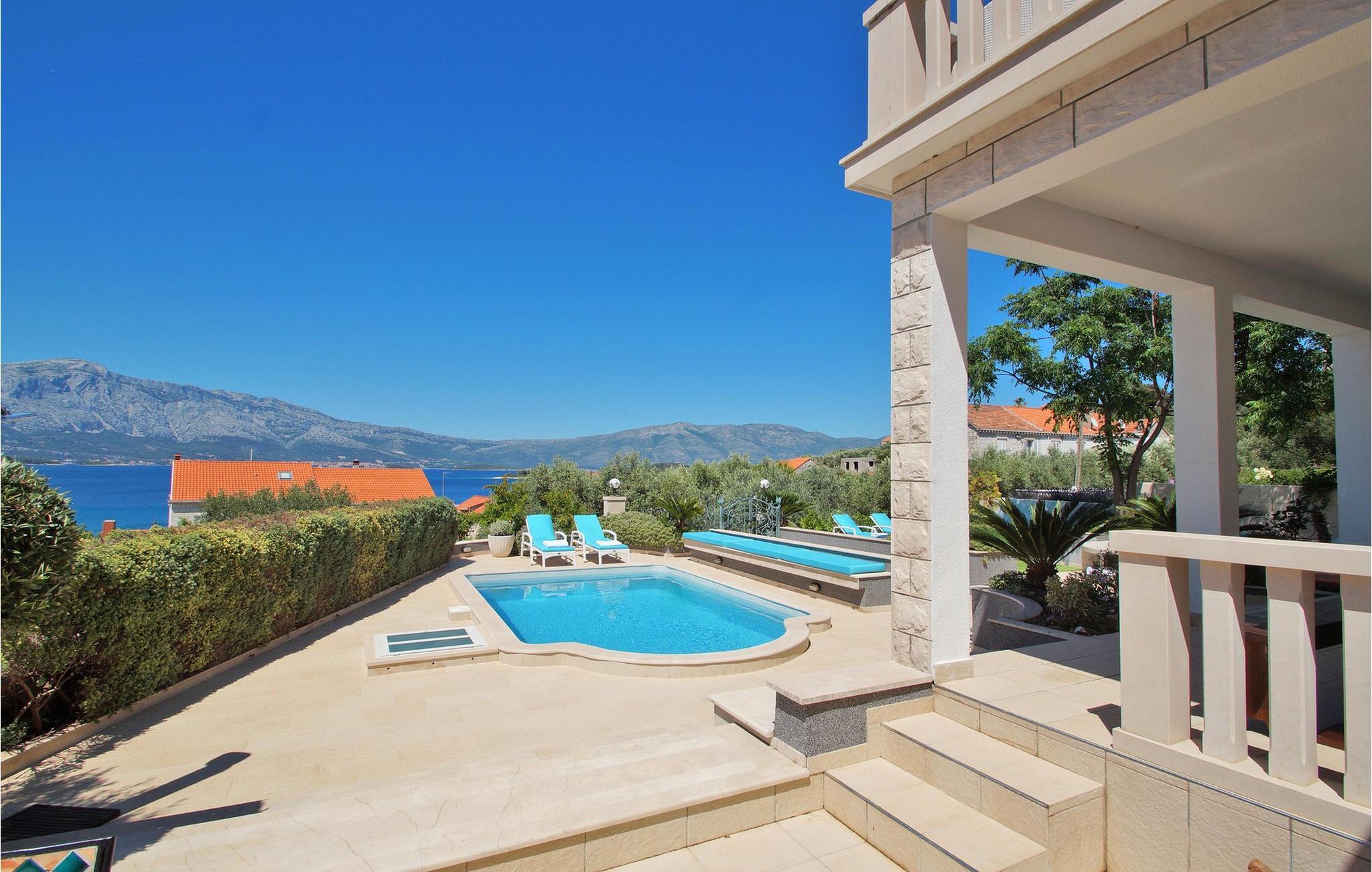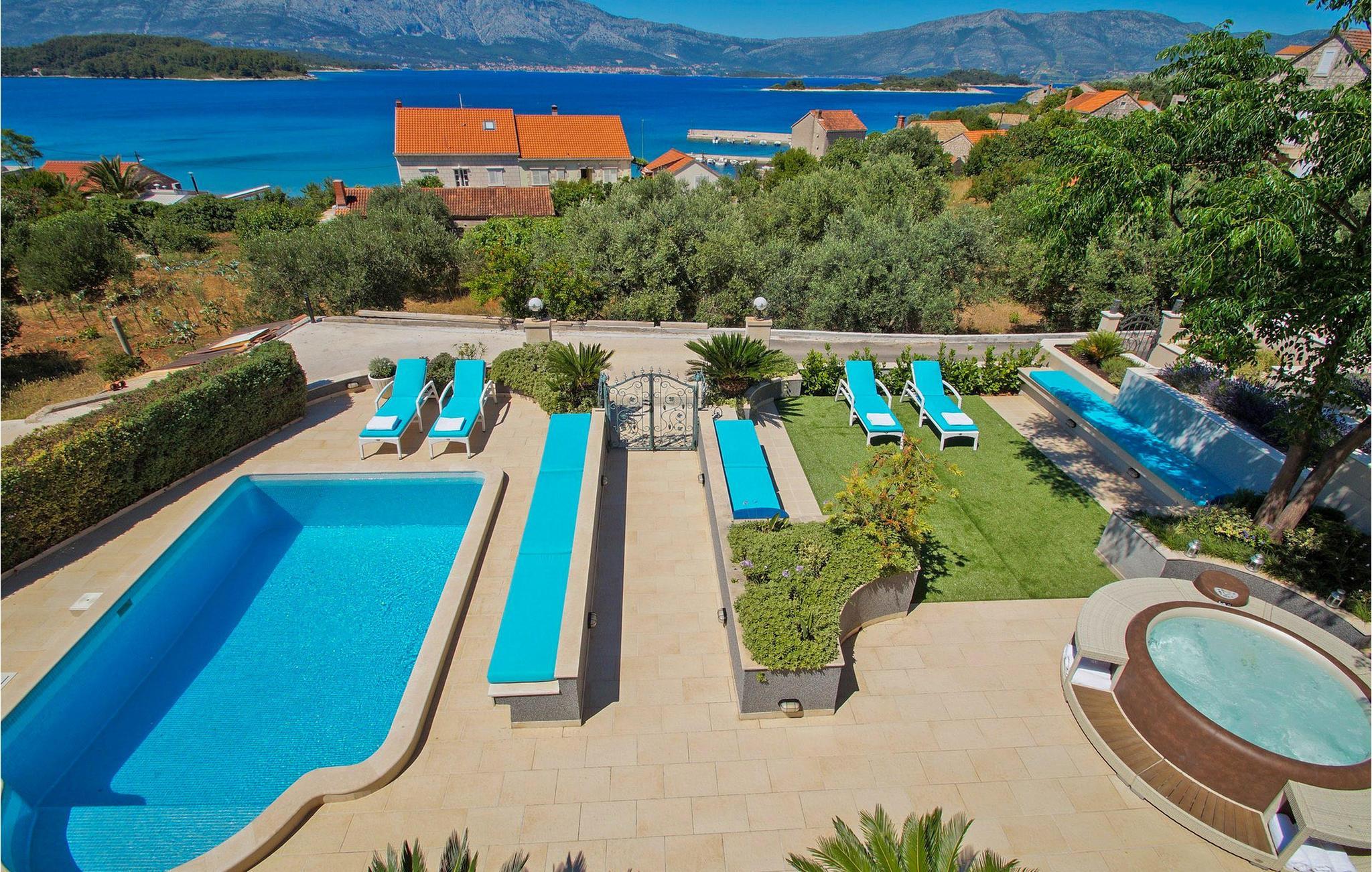 Nyd en fantastisk havudsigt i dette luksuriøse feriehus med pool og spabad. Denne kærligt renoverede og stilfuldt møblerede Villa Veritas består af tre separate boligenheder, hver med sit eget fuldt udstyrede køkken og komfortable opholdsområder, hvilket gør den ideel til en ferie med venner eller flere familier. Lav mad sammen eller individuelt, saml jer til hyggelige måltider og sjove spilleaftener eller træk jer tilbage til jeres yndlingssted med jeres ferielæsning. Det rummelige, velholdte udendørsområde tilbyder en fantastisk udsigt over det turkisblå hav, kun få skridt væk. Eller snup en frisk dukkert i poolen, hvor behagelige liggestole venter på jer. På køligere dage lover spabadet beroligende afslapning, og grillområdet er perfekt til stemningsfulde aftener med venner. Oplev mange smukke sandstrande inden for få minutters kørsel, slentre gennem vinmarkerne eller fordyb jer i det pulserende natteliv i den historiske by Korcula. Kombiner kulturelle begivenheder med gastronomiske udflugter og prøv regionale specialiteter på charmerende markeder eller hyggelige restauranter. Bemærk venligst: Ejendommen accepterer ikke ungdomsgrupper under 30 år eller polterabender. Bookinger fra sådanne grupper vil blive afvist – heller ikke ved ankomst eller under opholdet – og der gives ingen refusion.