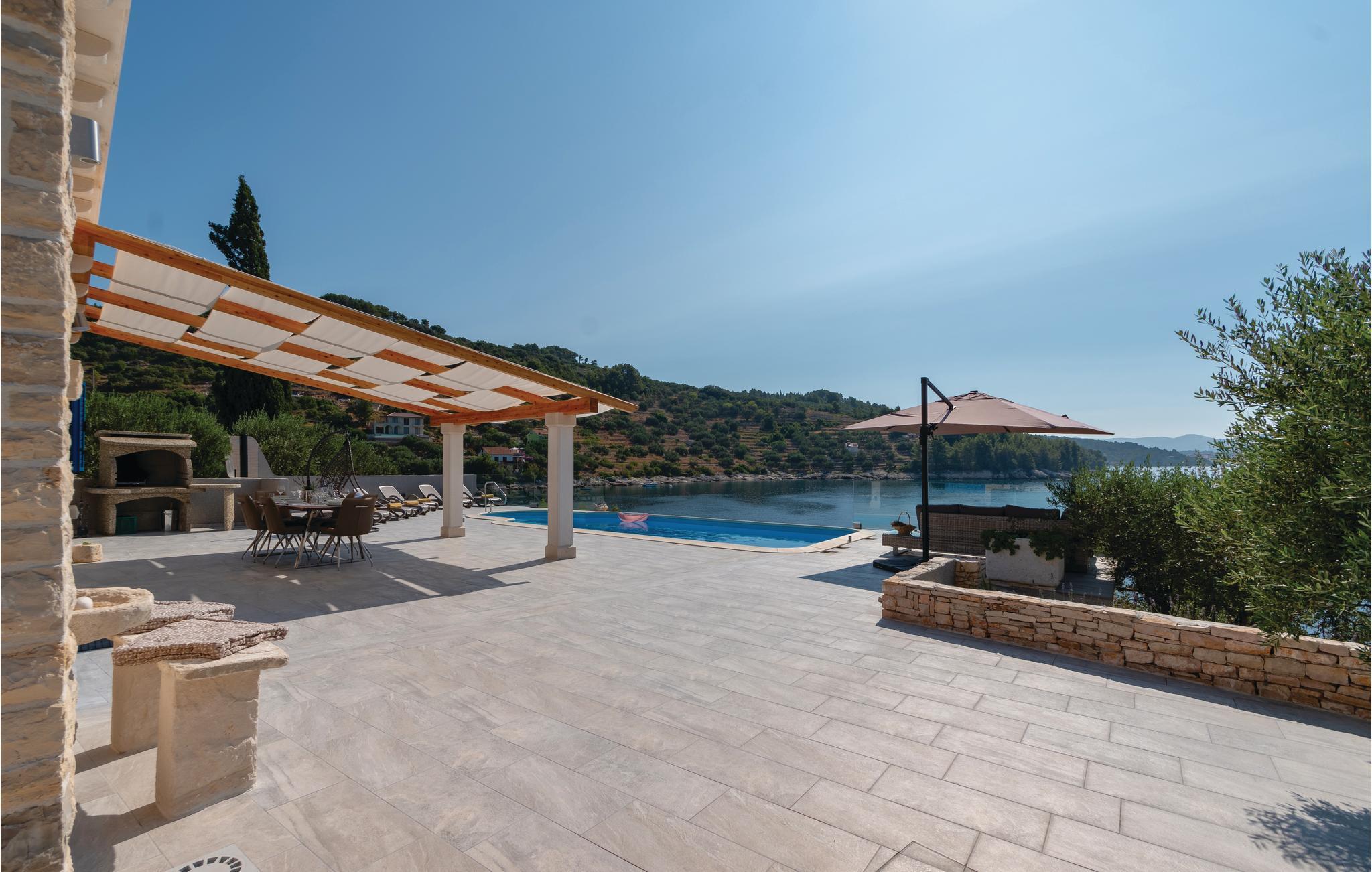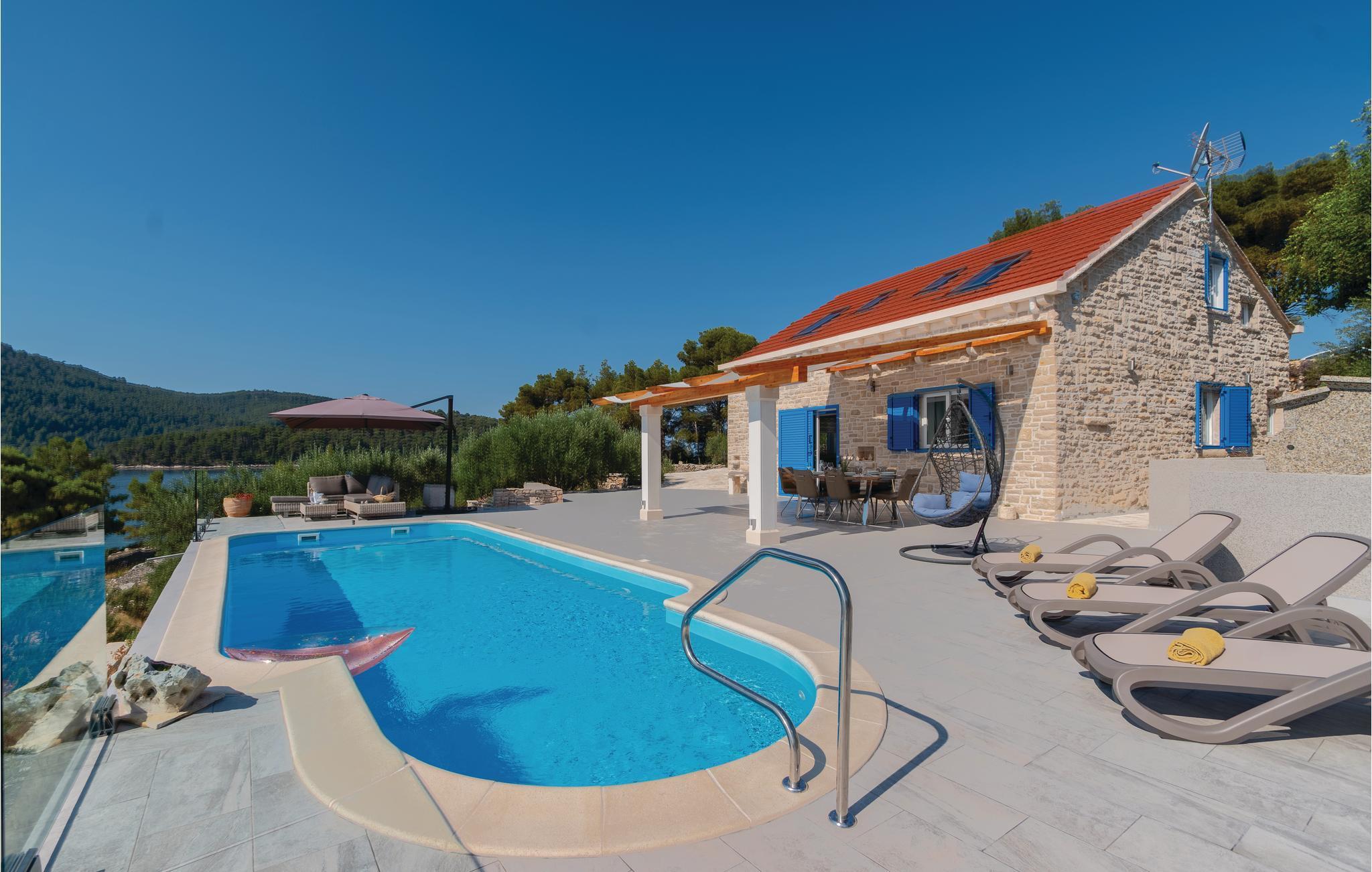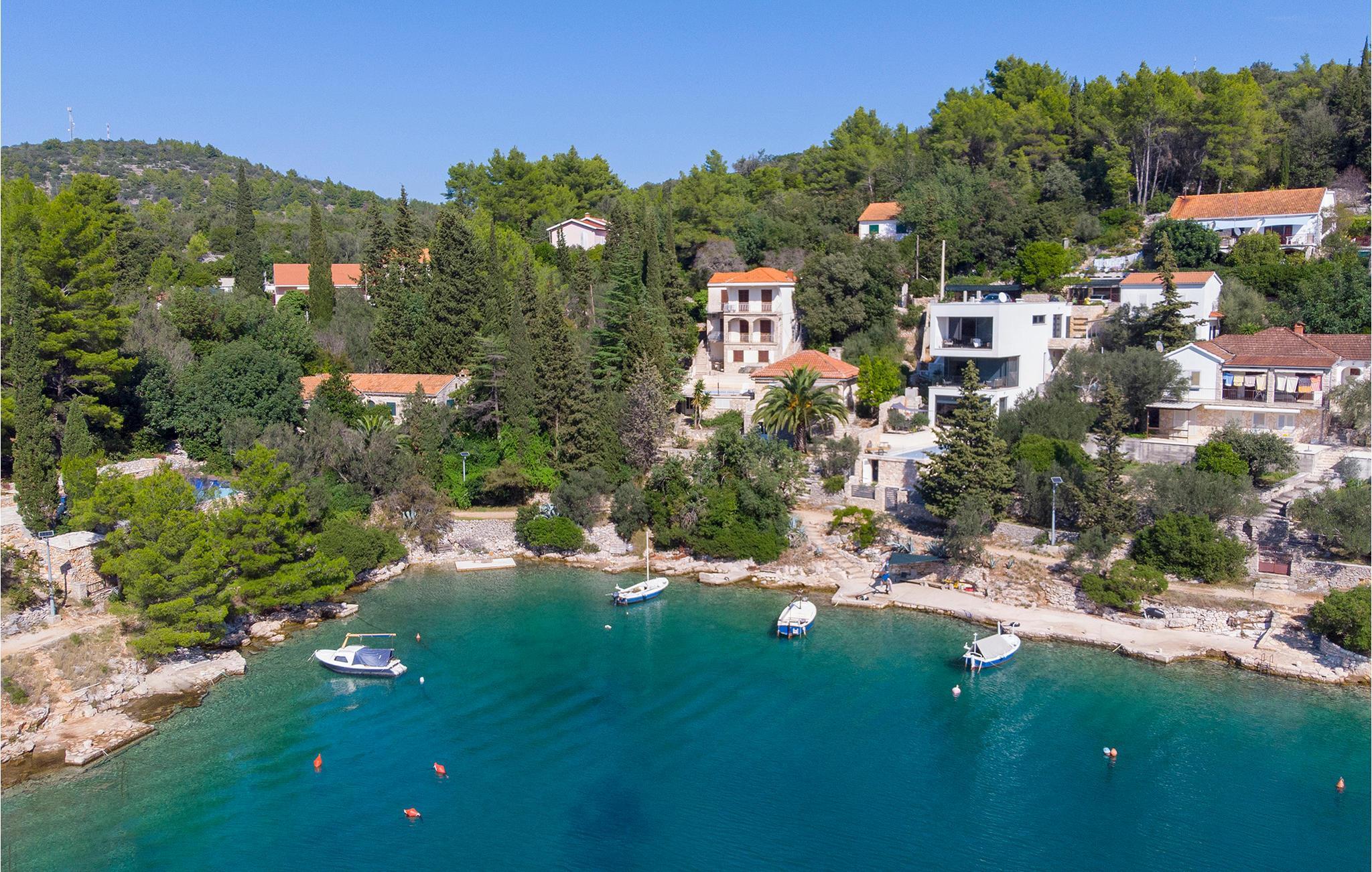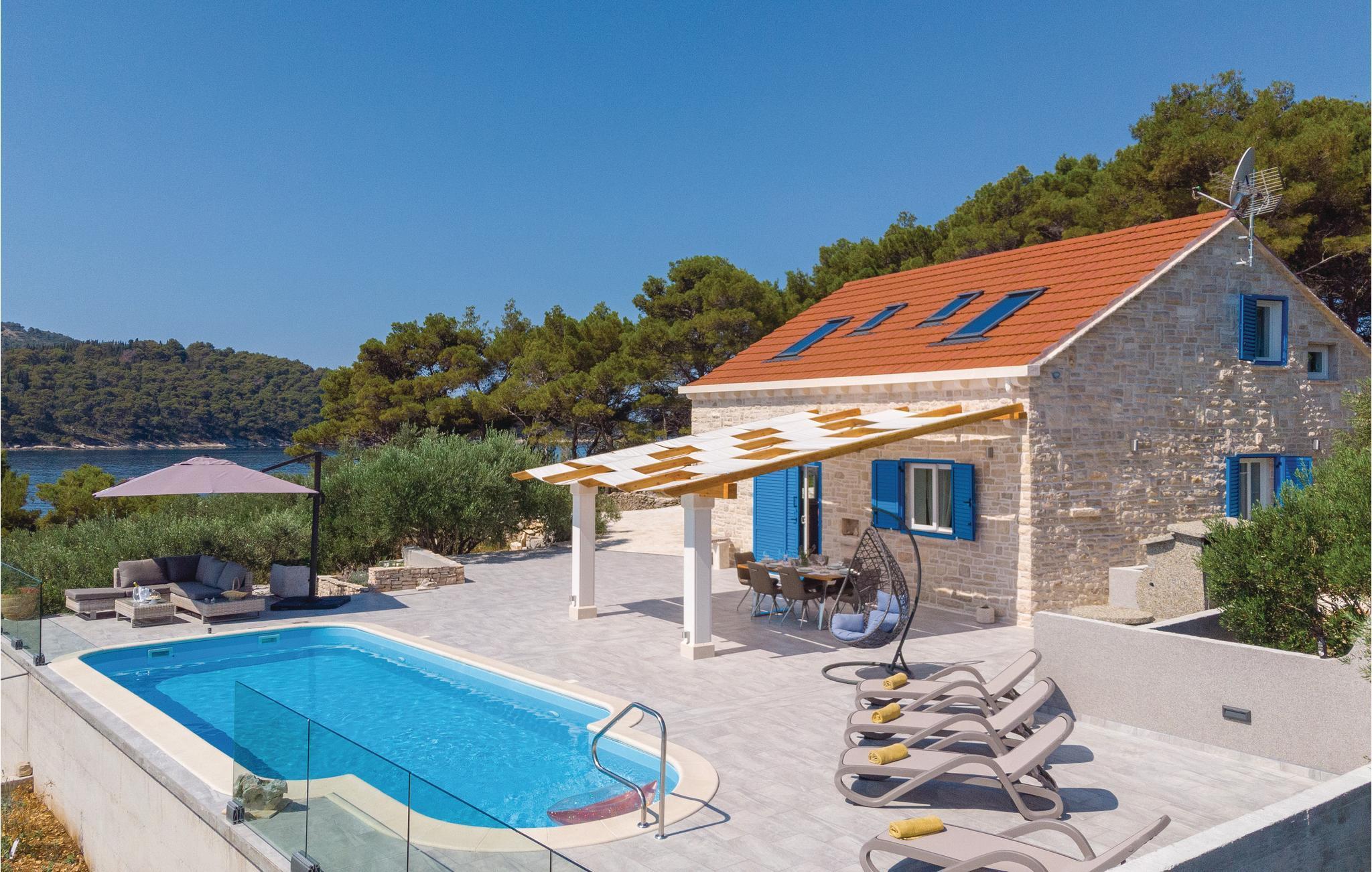 Så snart færgen lægger til ved Vela Luka, møder øjet dette smukke feriehus på en dejlig grund. Det skønne hus med egen pool, ligger ud til stranden på den lille halvø, som delvist vender mod vest og delvist mod øst, en del med udsigt over Vela Luka, få kilometer væk. Et paradis til en afslappet ferie. Husets stilfulde indretning og gode faciliteter giver en høj grad af komfort. Den laveste lofthøjde på øverste etage med skrå vægge er 80 cm. Udforsk øen Korcula og de smukke olivenlunde, vinmarker og tætte fyrreskove. Øens mange restauranter byder på lækre og unikke specialiteter med frisk fisk og mediterrane krydderurter. Vil I vide mere om områdets kulturelle og underholdende arrangementer, skal besøg det lokale turistkontor, også få en oversigt så I ikke går glip af koncerter, udstillinger eller autentiske folklore- og fiskerifestivaler. Opkørslen til huset er en grusvej.