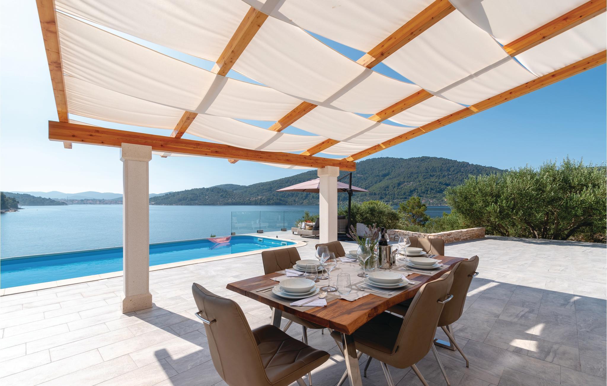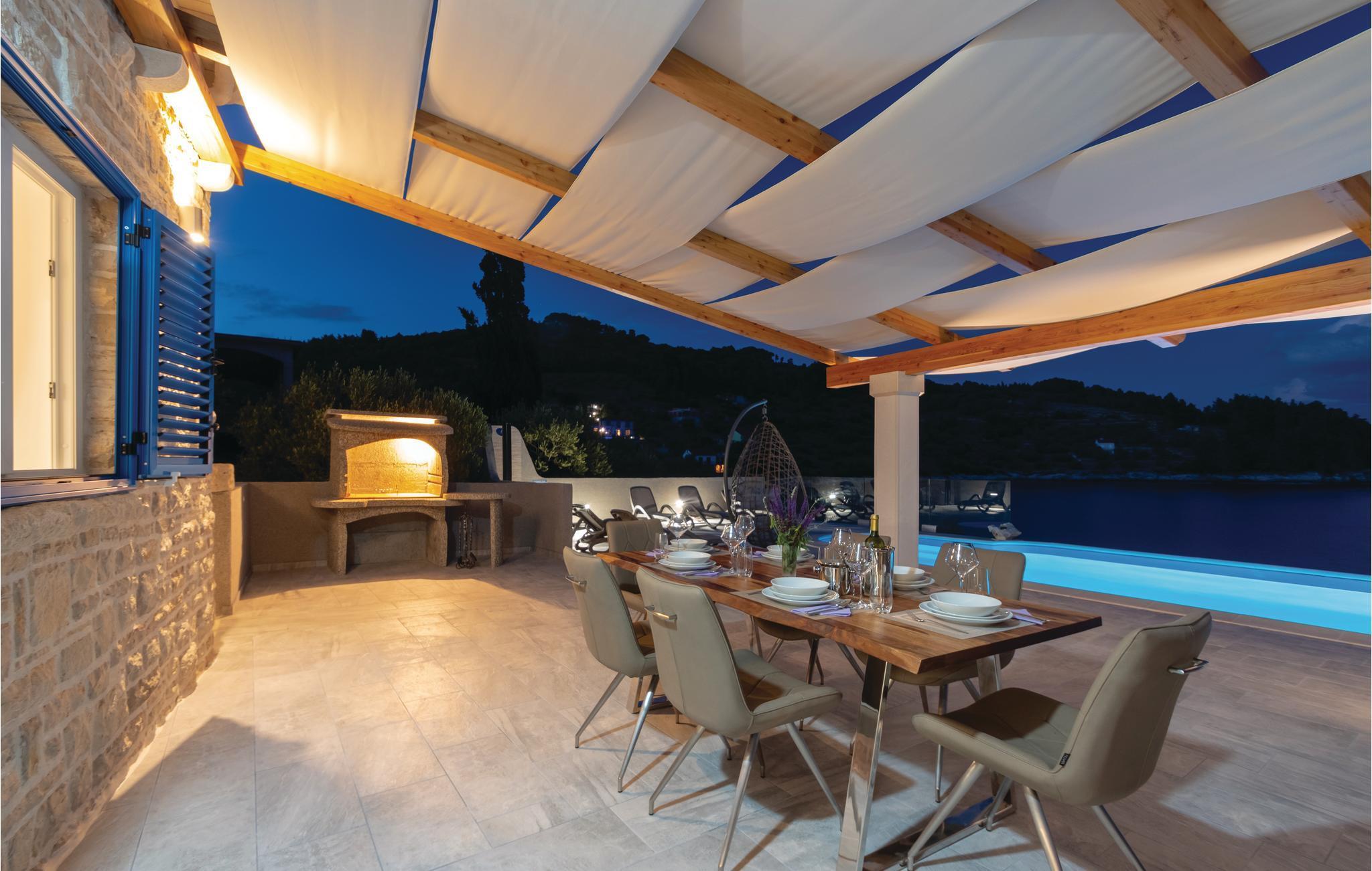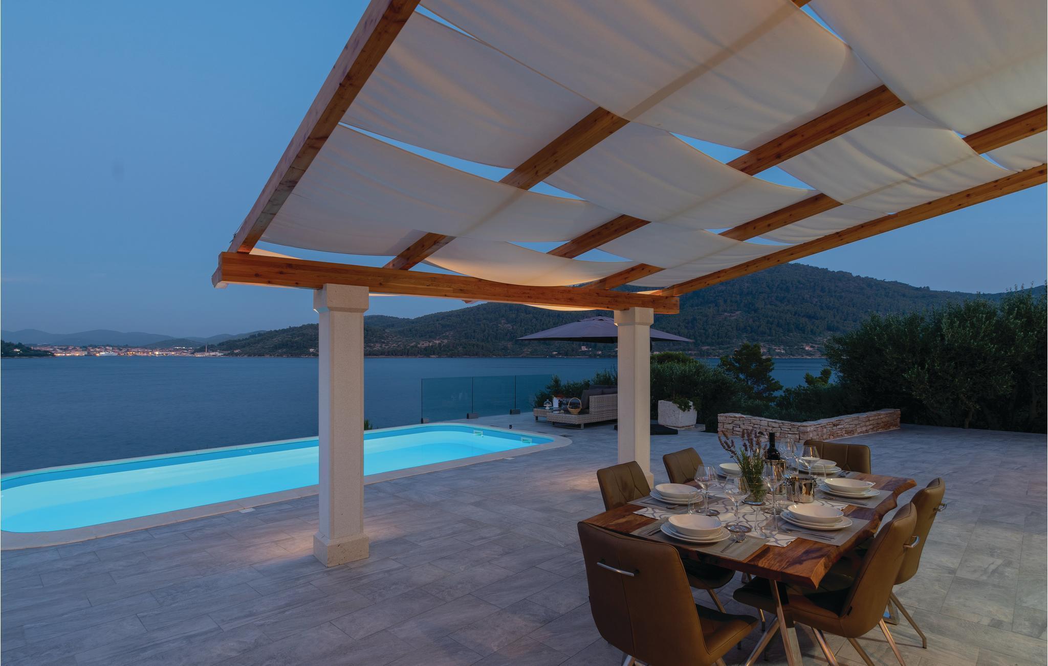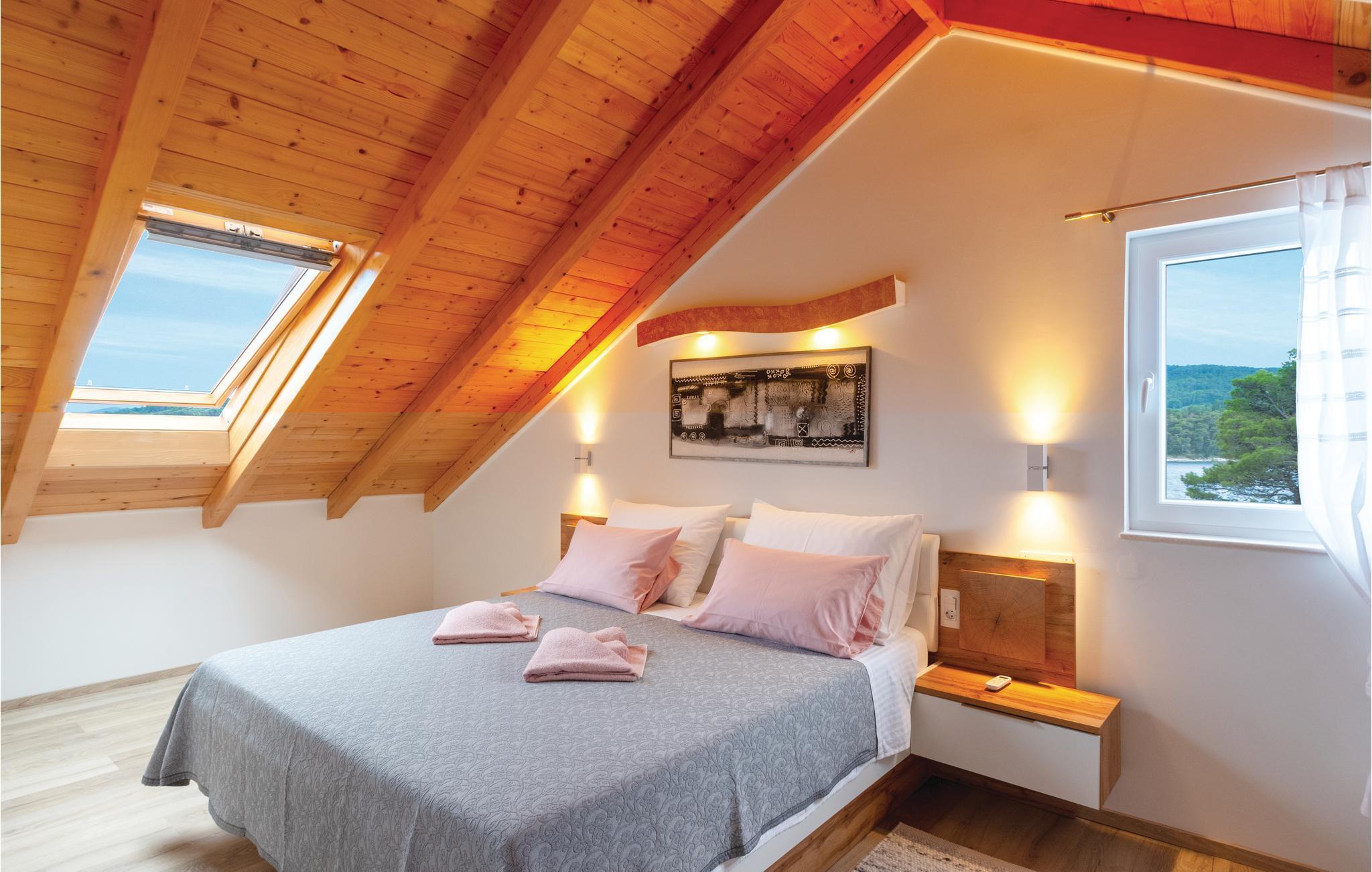 Så snart færgen lægger til ved Vela Luka, møder øjet dette smukke feriehus på en dejlig grund. Det skønne hus med egen pool, ligger ud til stranden på den lille halvø, som delvist vender mod vest og delvist mod øst, en del med udsigt over Vela Luka, få kilometer væk. Et paradis til en afslappet ferie. Husets stilfulde indretning og gode faciliteter giver en høj grad af komfort. Den laveste lofthøjde på øverste etage med skrå vægge er 80 cm. Udforsk øen Korcula og de smukke olivenlunde, vinmarker og tætte fyrreskove. Øens mange restauranter byder på lækre og unikke specialiteter med frisk fisk og mediterrane krydderurter. Vil I vide mere om områdets kulturelle og underholdende arrangementer, skal besøg det lokale turistkontor, også få en oversigt så I ikke går glip af koncerter, udstillinger eller autentiske folklore- og fiskerifestivaler. Opkørslen til huset er en grusvej.
