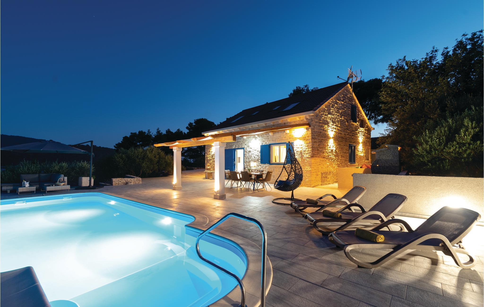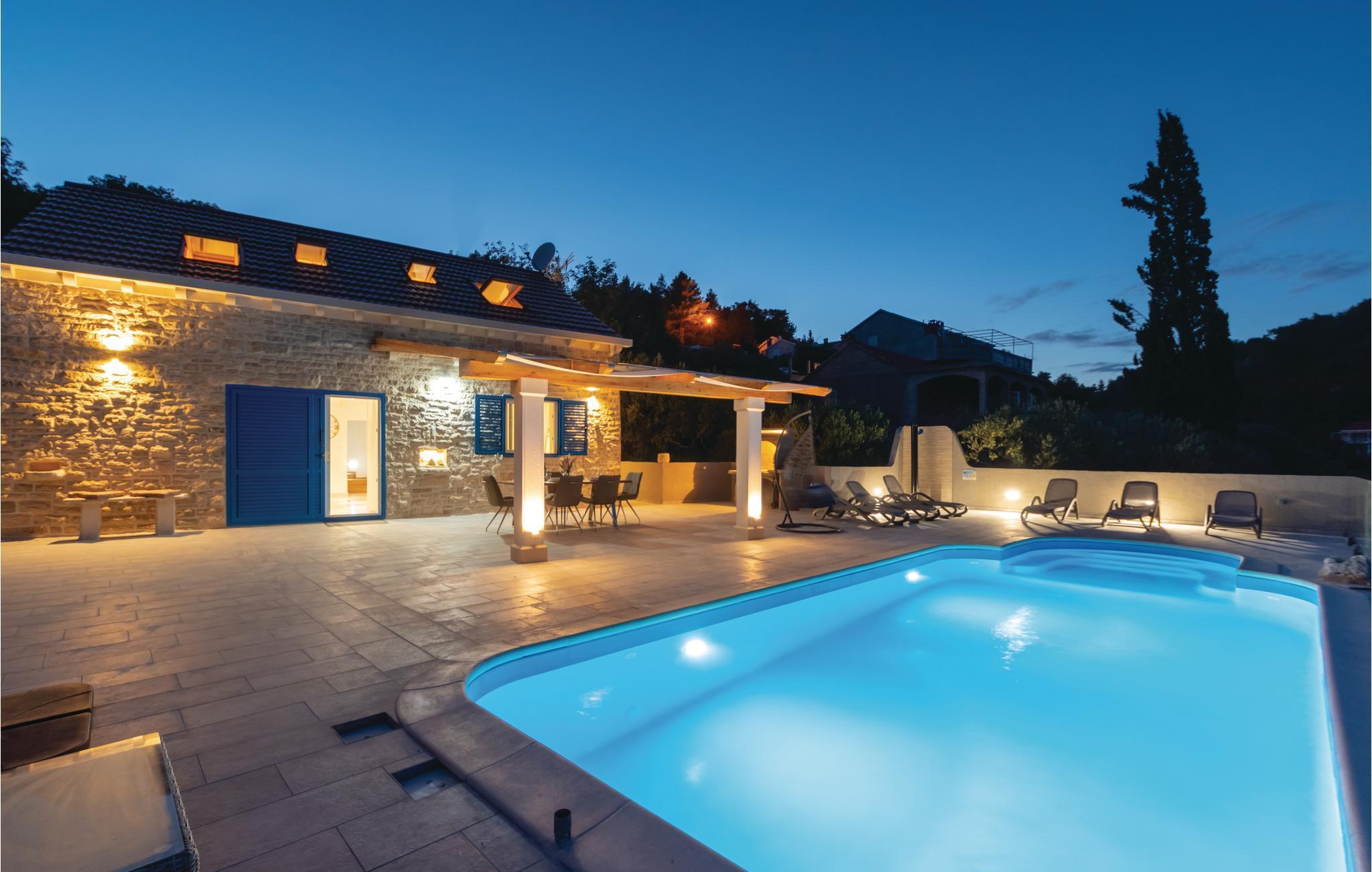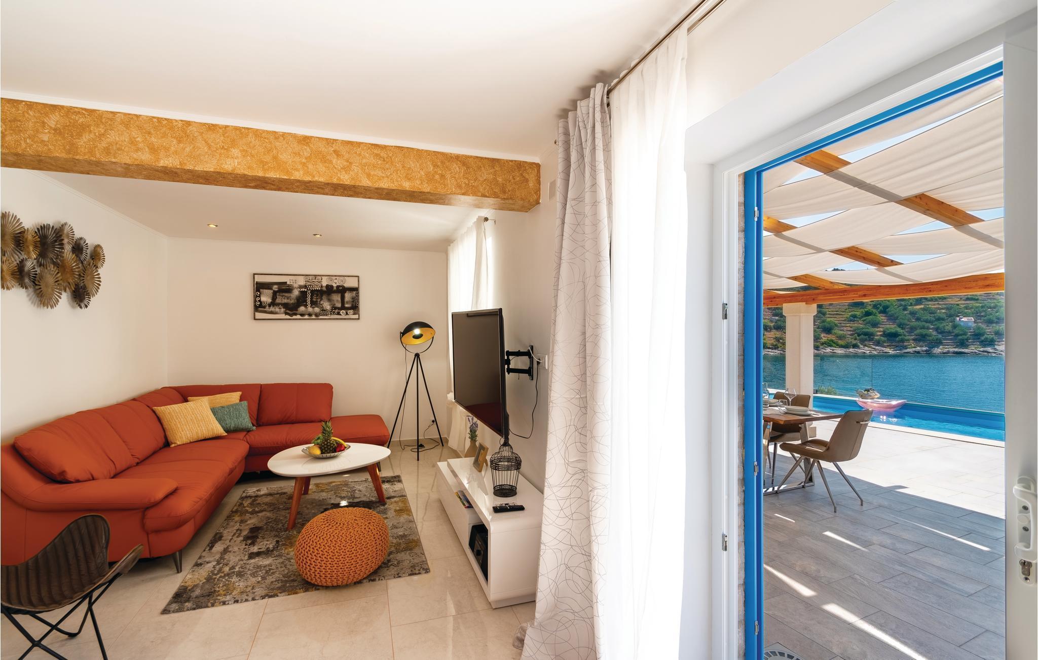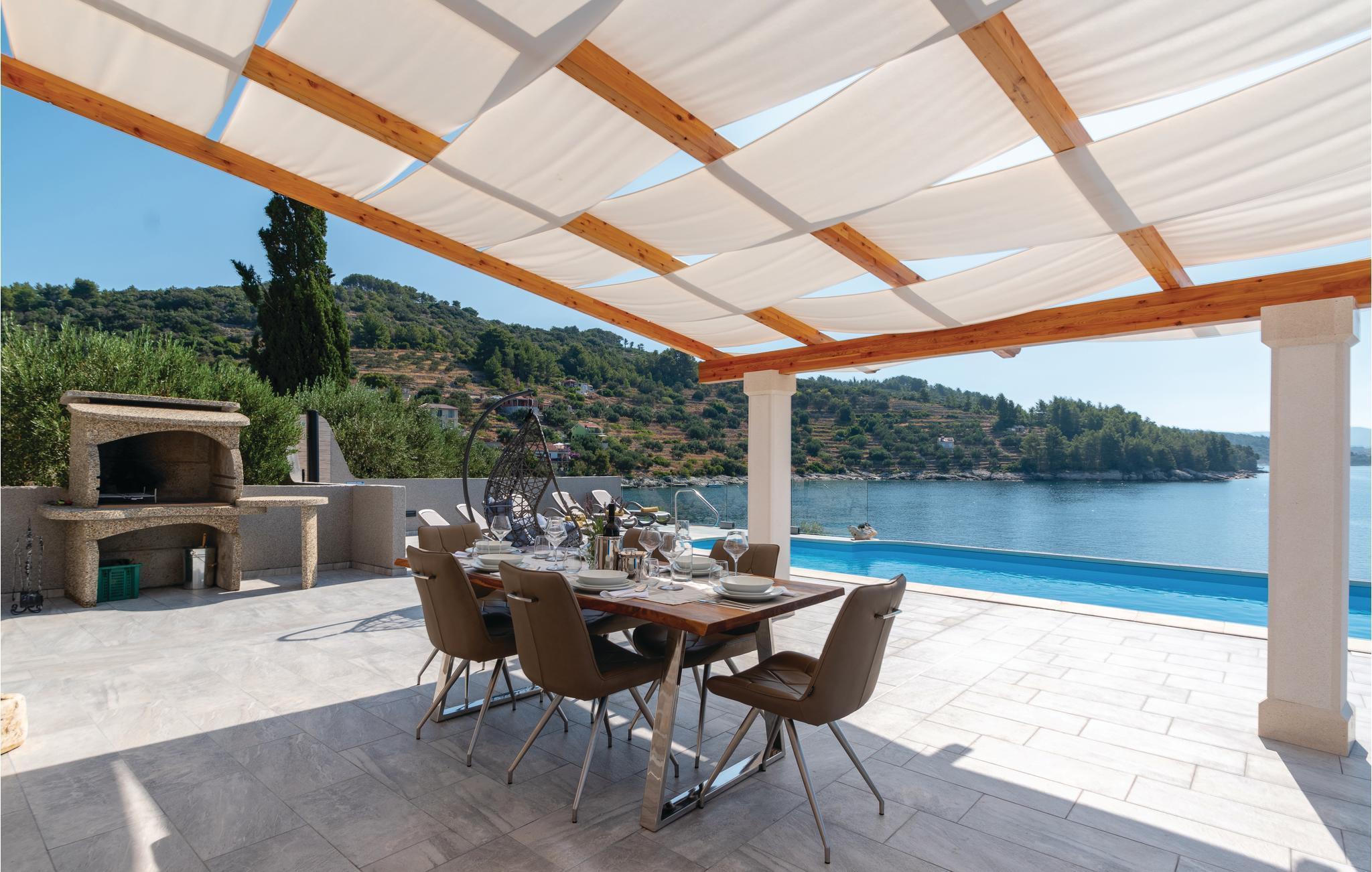Så snart færgen lægger til ved Vela Luka, møder øjet dette smukke feriehus på en dejlig grund. Det skønne hus med egen pool, ligger ud til stranden på den lille halvø, som delvist vender mod vest og delvist mod øst, en del med udsigt over Vela Luka, få kilometer væk. Et paradis til en afslappet ferie. Husets stilfulde indretning og gode faciliteter giver en høj grad af komfort. Den laveste lofthøjde på øverste etage med skrå vægge er 80 cm. Udforsk øen Korcula og de smukke olivenlunde, vinmarker og tætte fyrreskove. Øens mange restauranter byder på lækre og unikke specialiteter med frisk fisk og mediterrane krydderurter. Vil I vide mere om områdets kulturelle og underholdende arrangementer, skal besøg det lokale turistkontor, også få en oversigt så I ikke går glip af koncerter, udstillinger eller autentiske folklore- og fiskerifestivaler. Opkørslen til huset er en grusvej.