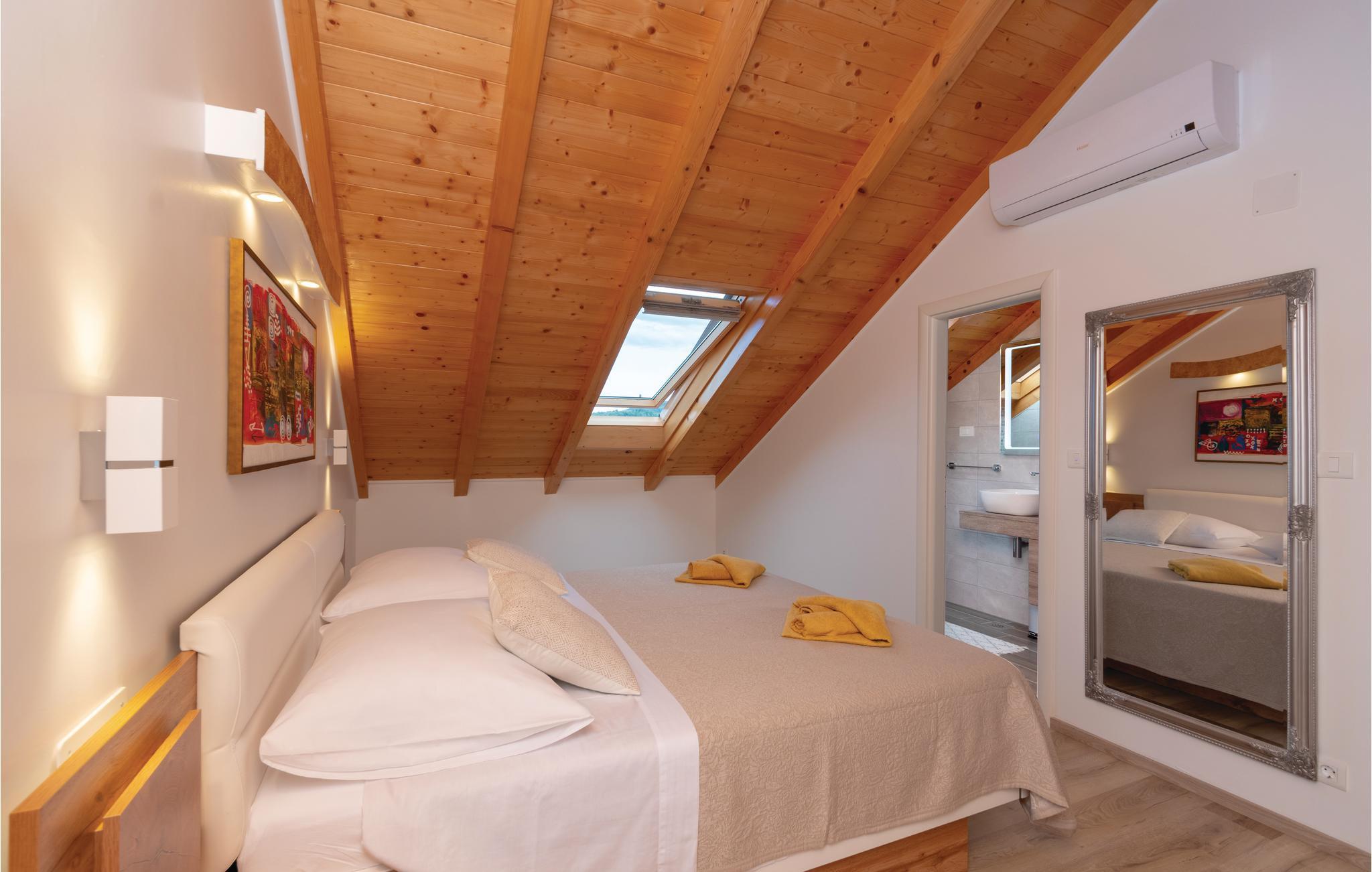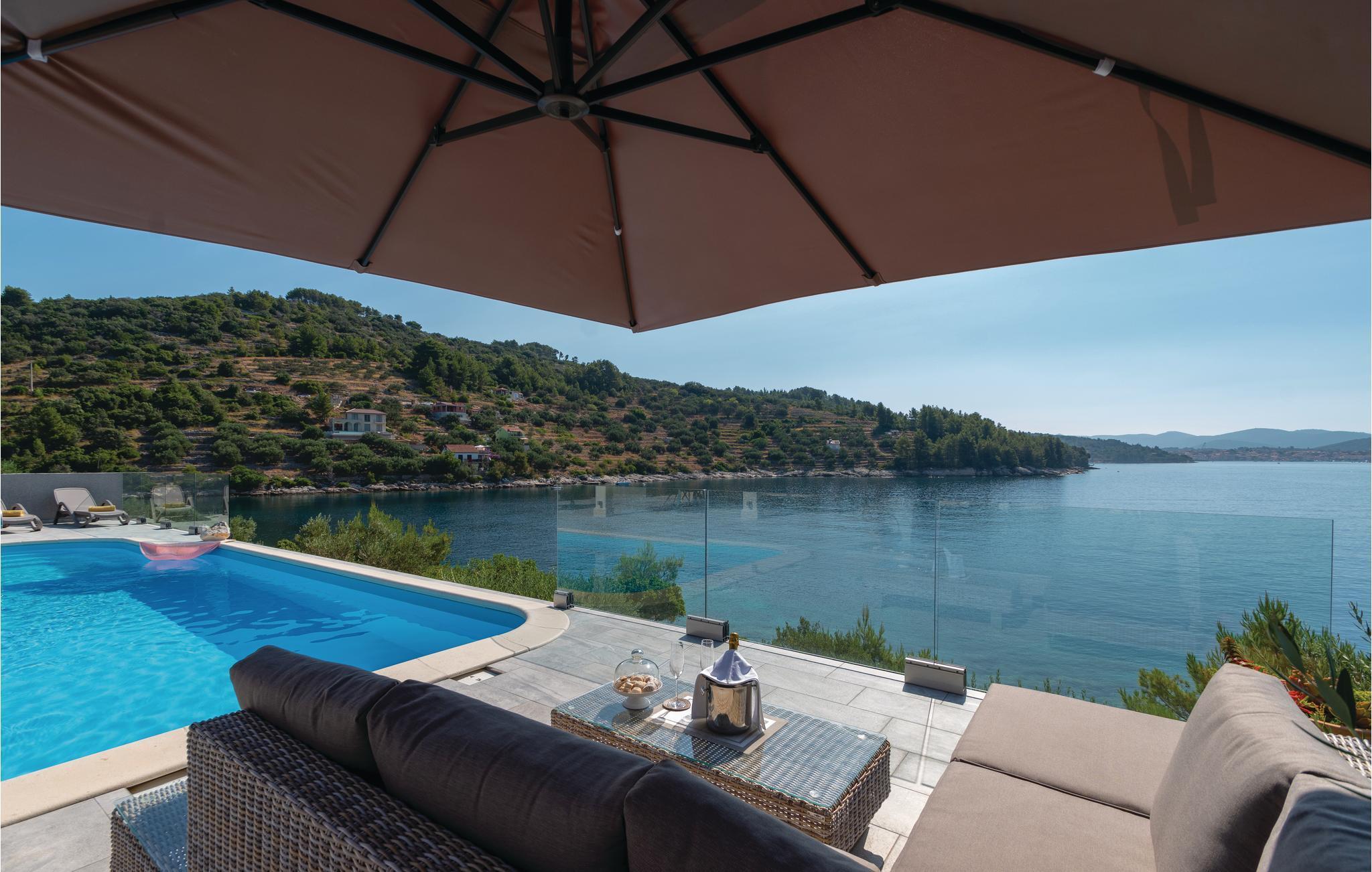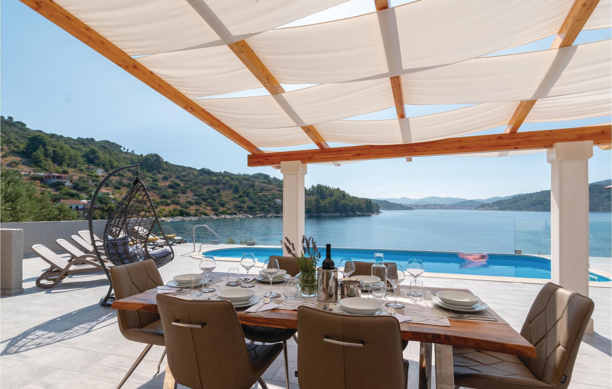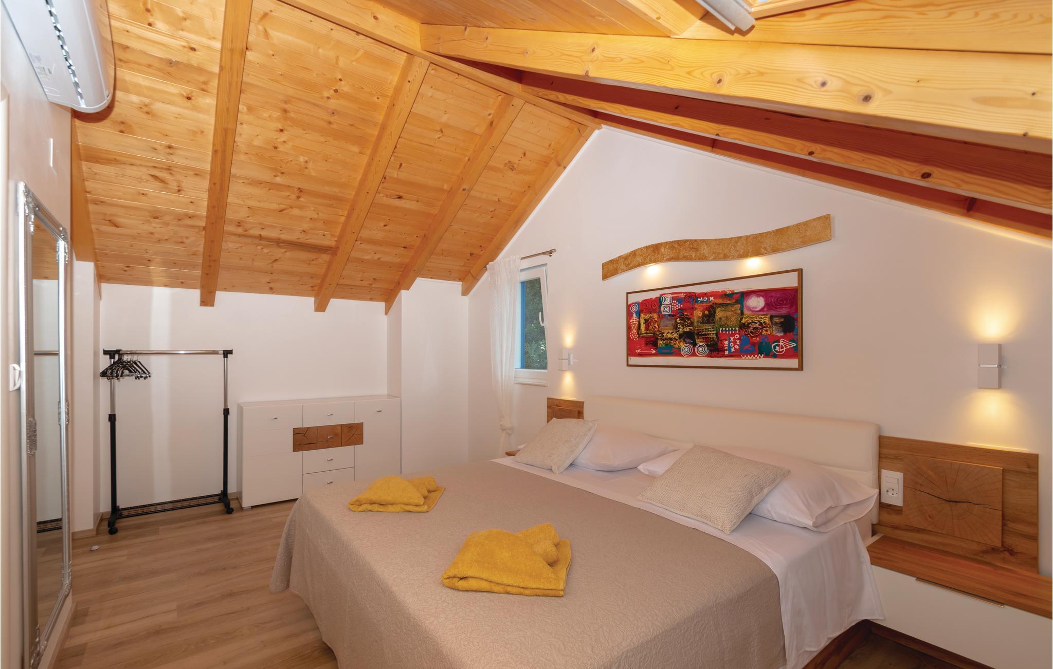 Så snart færgen lægger til ved Vela Luka, møder øjet dette smukke feriehus på en dejlig grund. Det skønne hus med egen pool, ligger ud til stranden på den lille halvø, som delvist vender mod vest og delvist mod øst, en del med udsigt over Vela Luka, få kilometer væk. Et paradis til en afslappet ferie. Husets stilfulde indretning og gode faciliteter giver en høj grad af komfort. Den laveste lofthøjde på øverste etage med skrå vægge er 80 cm. Udforsk øen Korcula og de smukke olivenlunde, vinmarker og tætte fyrreskove. Øens mange restauranter byder på lækre og unikke specialiteter med frisk fisk og mediterrane krydderurter. Vil I vide mere om områdets kulturelle og underholdende arrangementer, skal besøg det lokale turistkontor, også få en oversigt så I ikke går glip af koncerter, udstillinger eller autentiske folklore- og fiskerifestivaler. Opkørslen til huset er en grusvej.