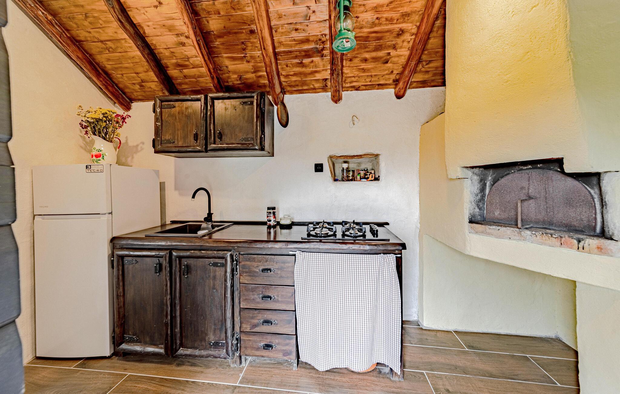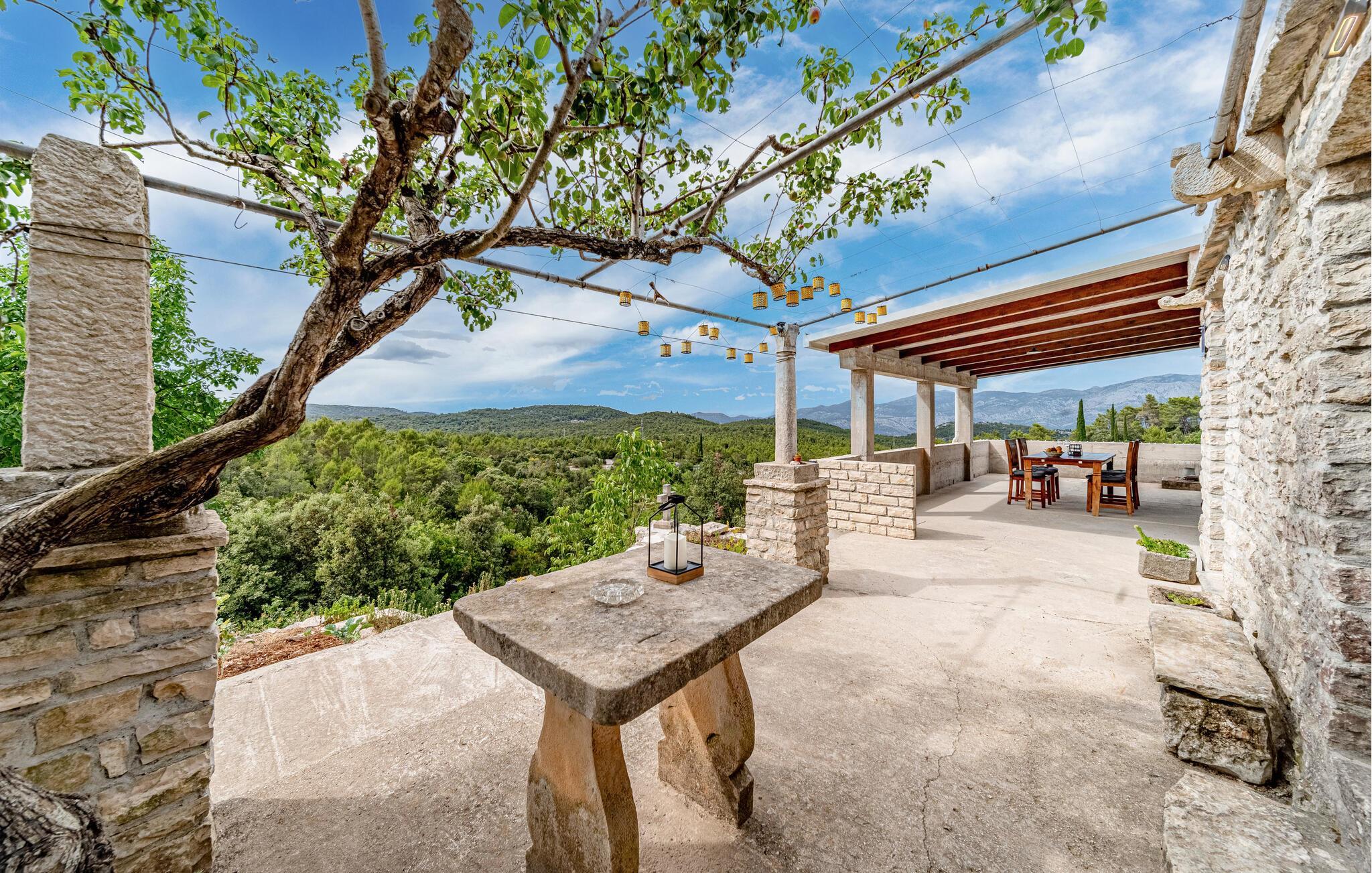 Et stykke væk fra turistbyerne ligger dette charmerende stenhus i en afsondret beliggenhed, midt i naturen. Her kan I nyde stemningen, som understreges af rustikke trælofter, et traditionelt køkken og stuen med åben pejs. Boligen er det optimale sted at trække sig tilbage og forlade den hektiske hverdag. Læn jer godt tilbage i sofaen om aftenen eller nyd de lune sommeraftener på den store, delvist overdækkede terrasse, hvor I ikke bare kan kigge ud på den skønne have, men også tilberede lækre retter på grillen.