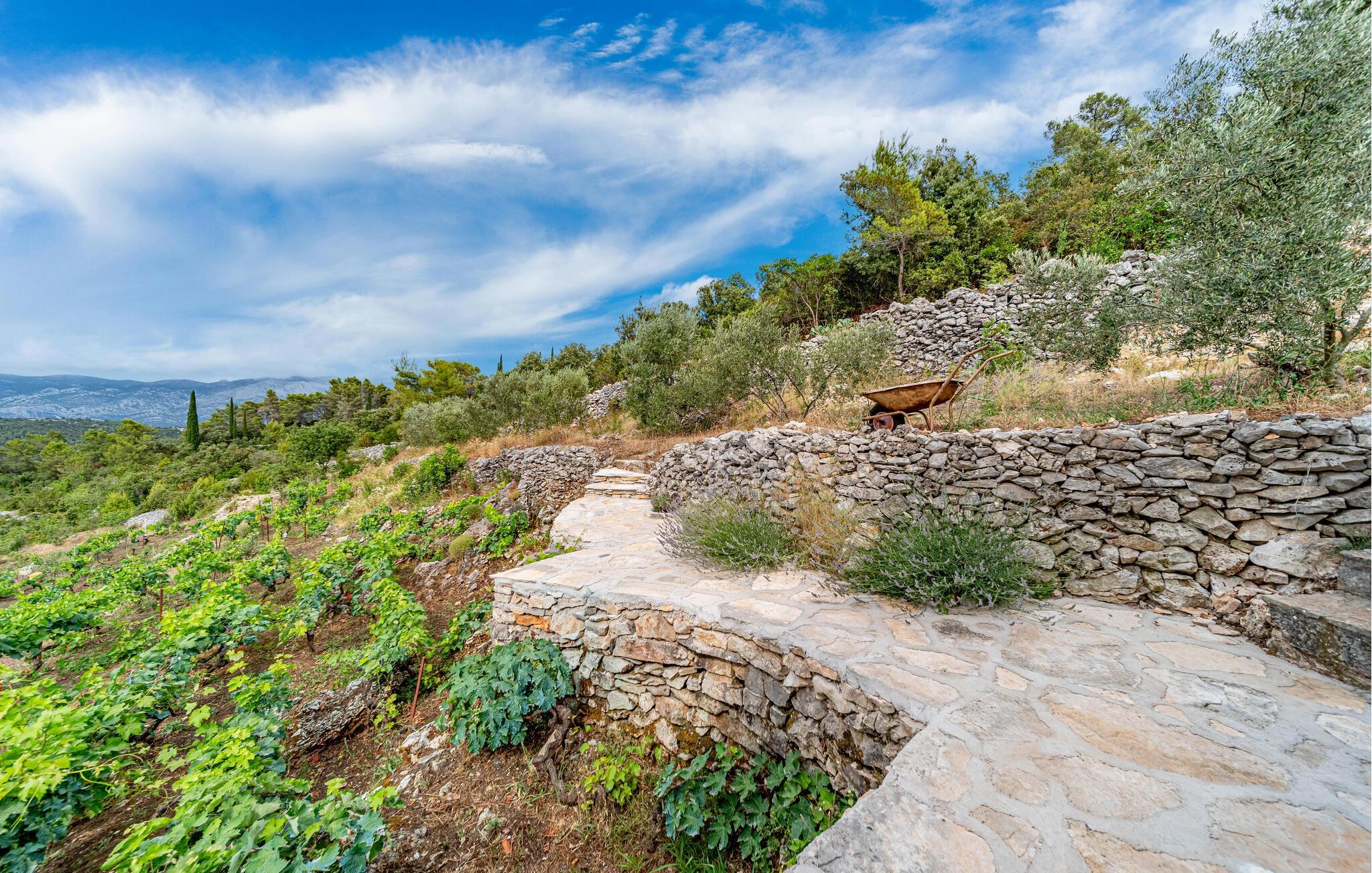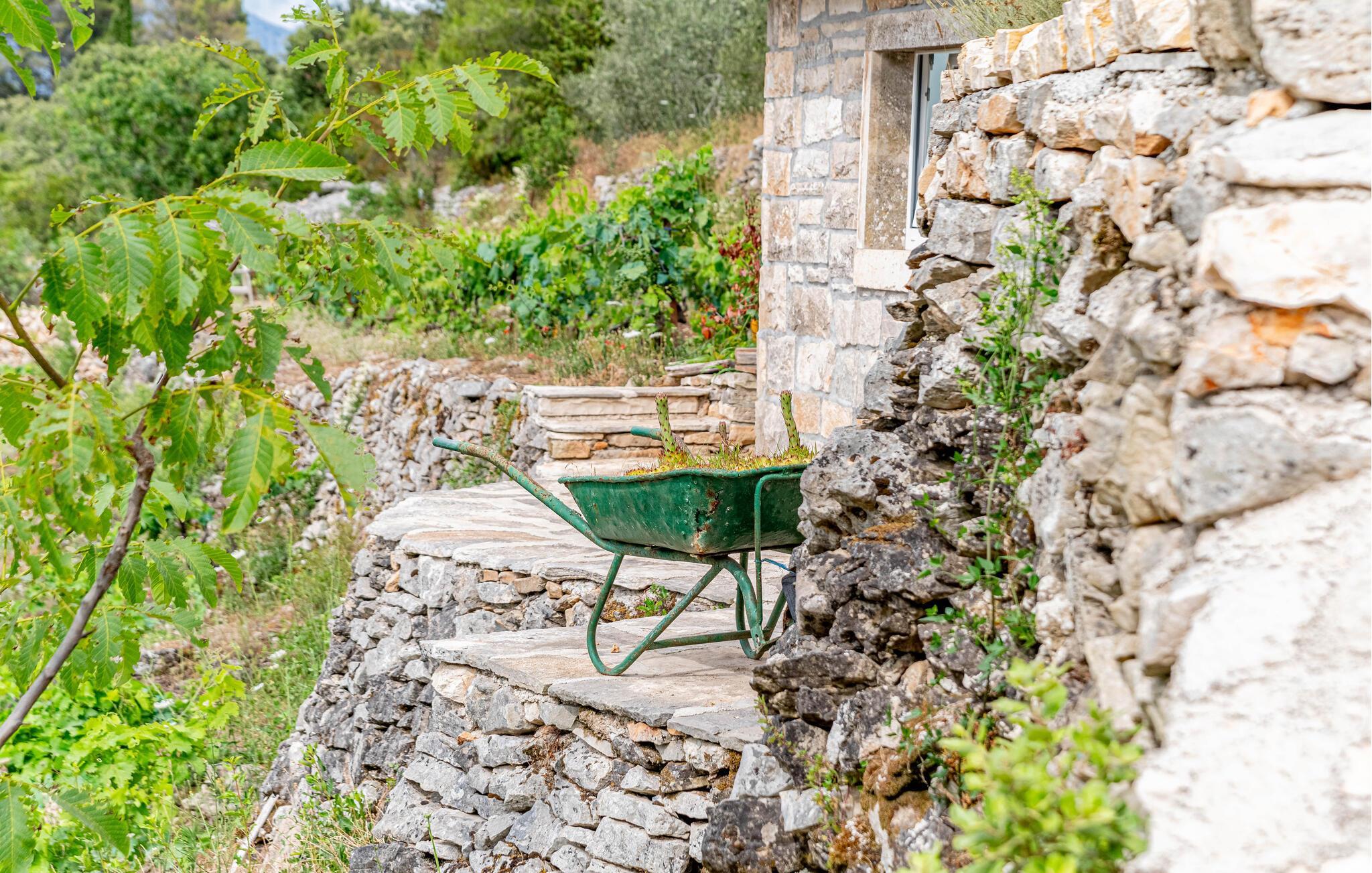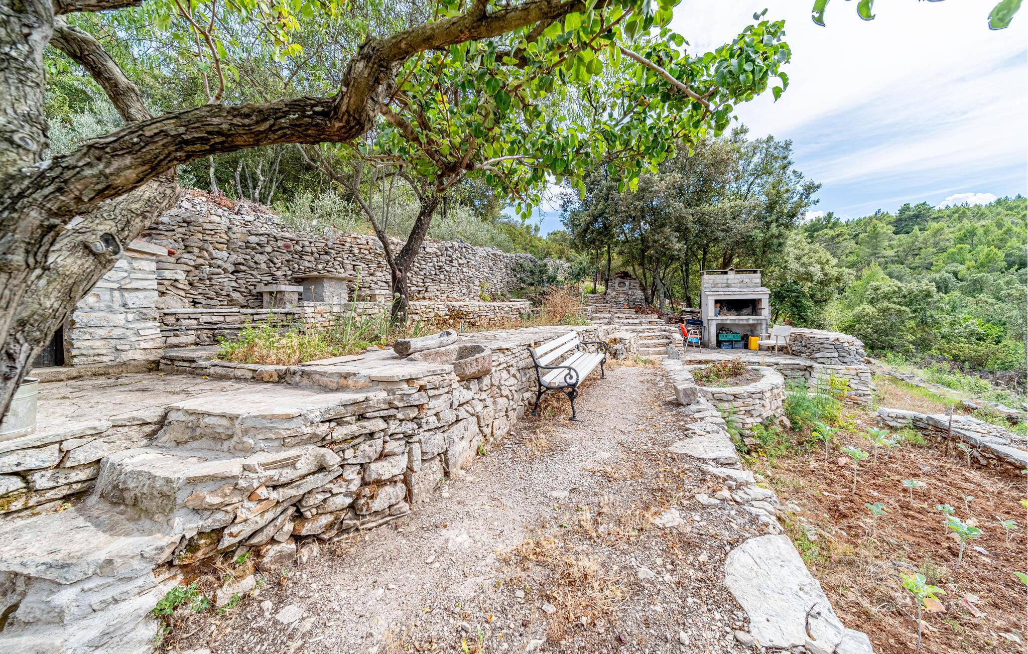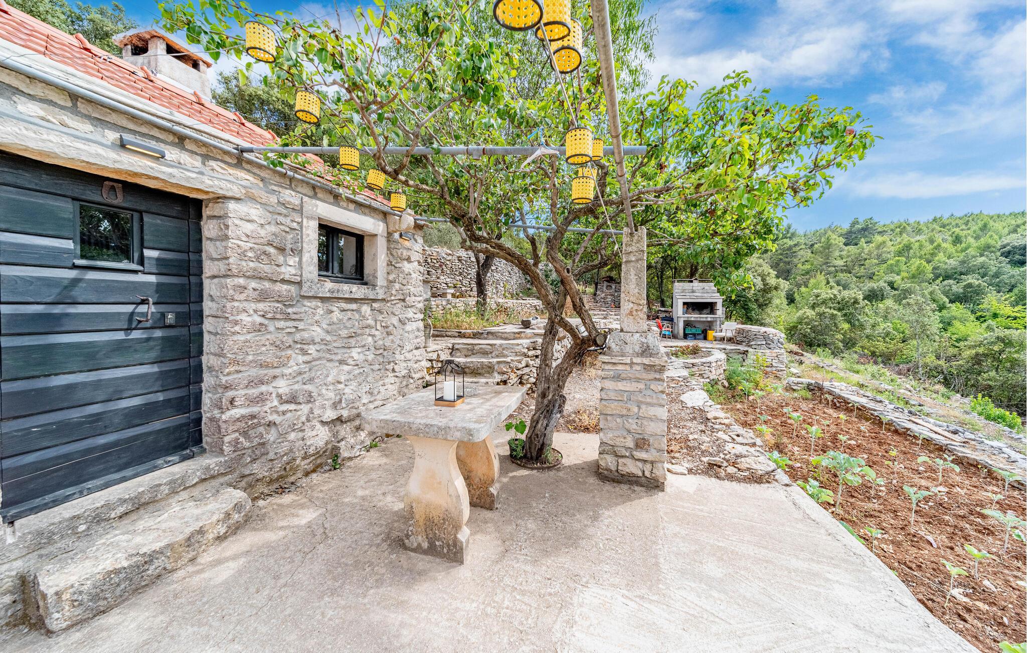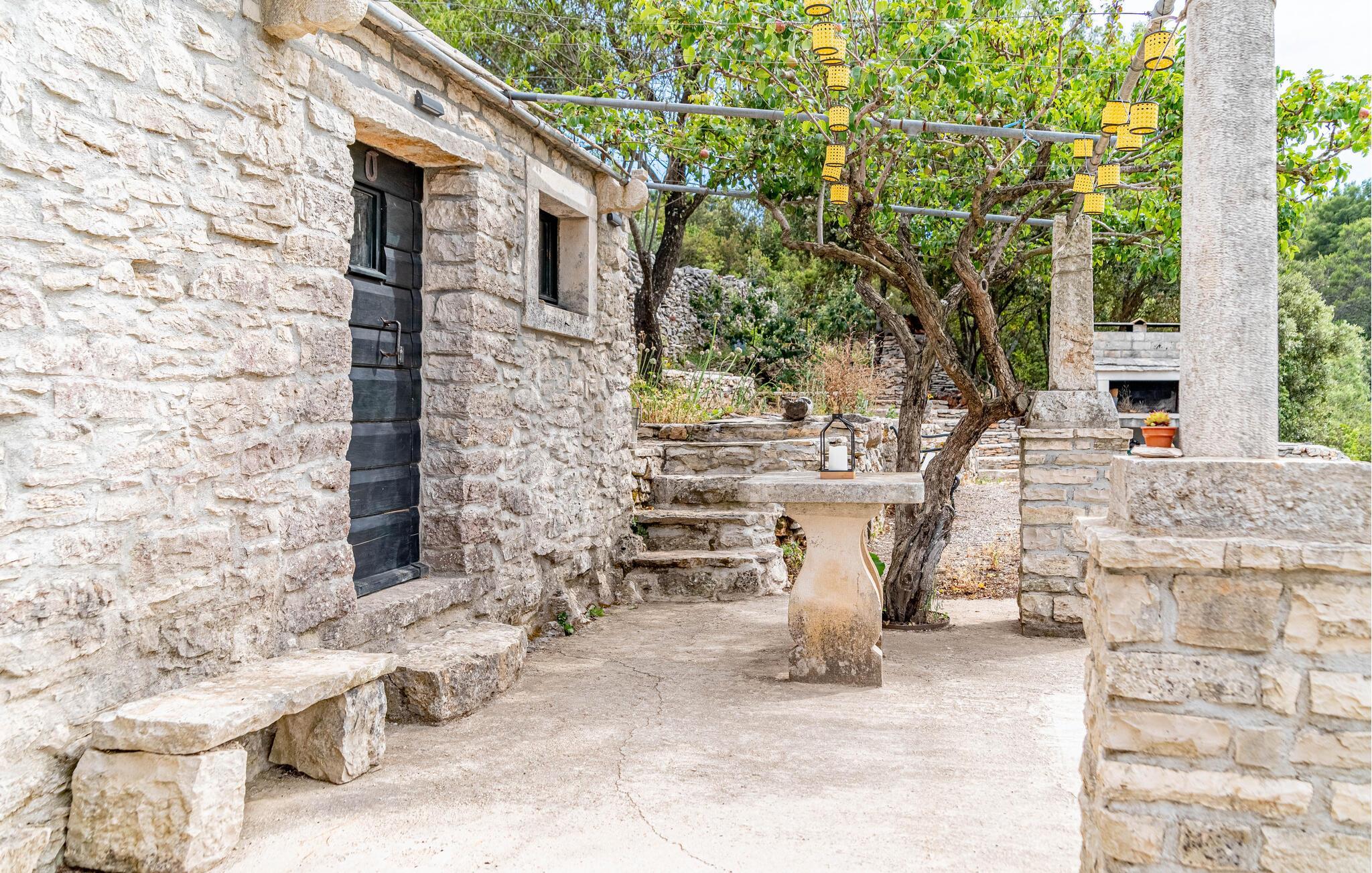 Dette charmerende stenhus med udsigt over bjergene ligger i de grønne bakker på Korcula.
