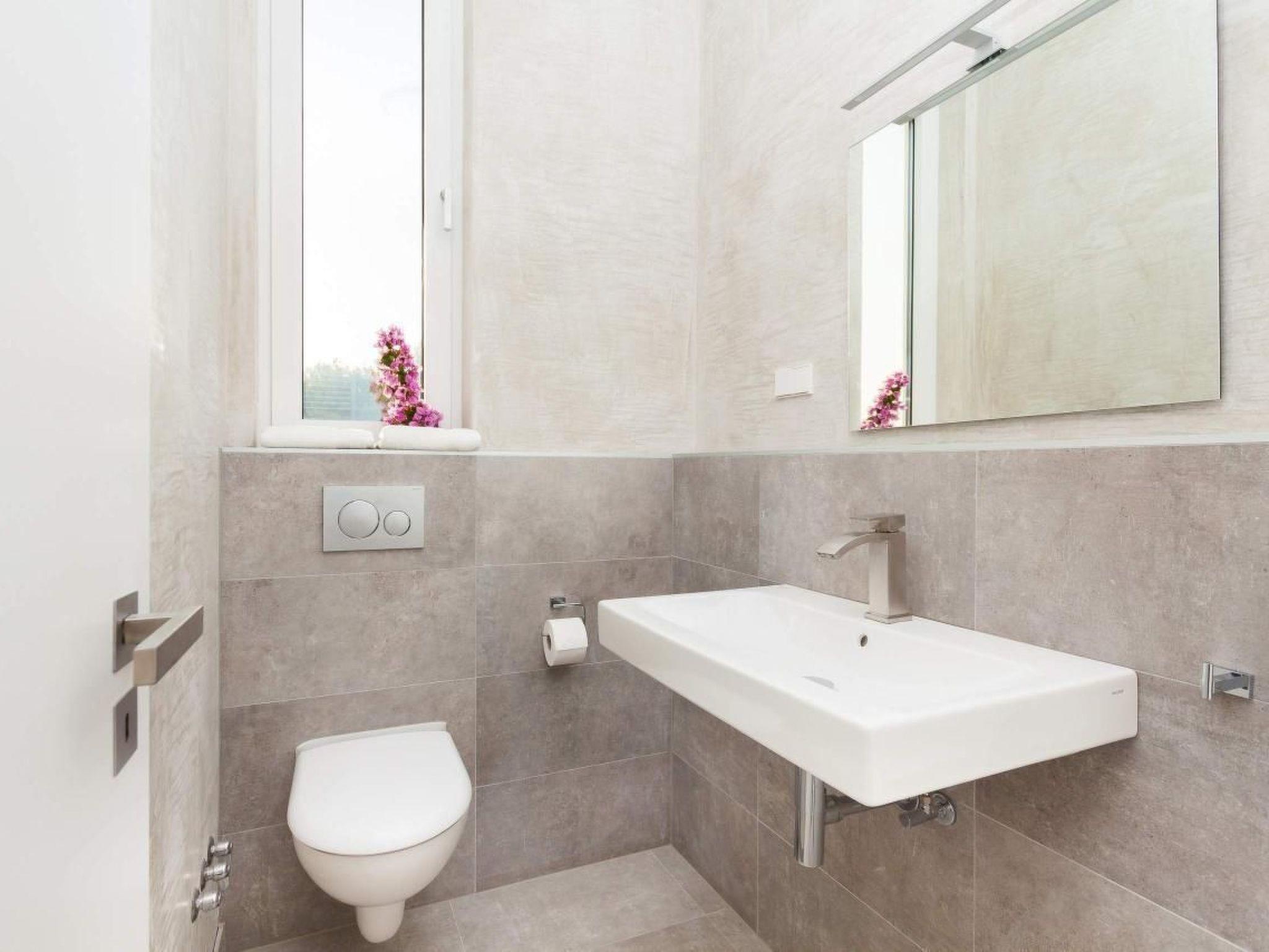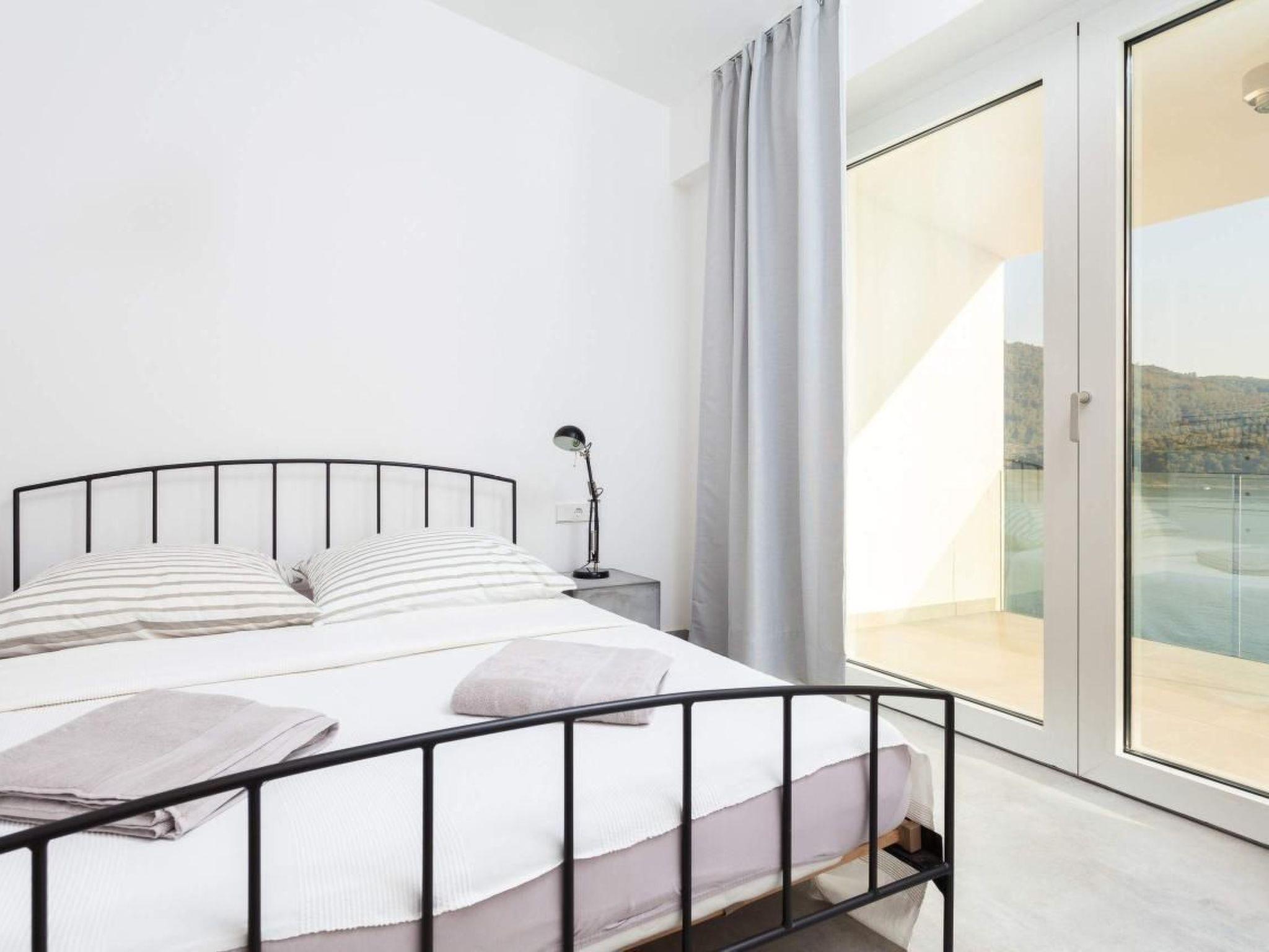 Just a few steps away is the private concrete plateau with bathing and swimming facilities and a buoy for your own boat or the motor speedboat you can hire from us. The spacious, heated and illuminated outdoor infinity pool (14 m x 3.50 m x 1.60 m) with waterfall leaves nothing to be desired. The pool bar invites you to linger and relax. The pool can be used by all holiday guests (guests of the Maisonette App. and the Penthouse App.).