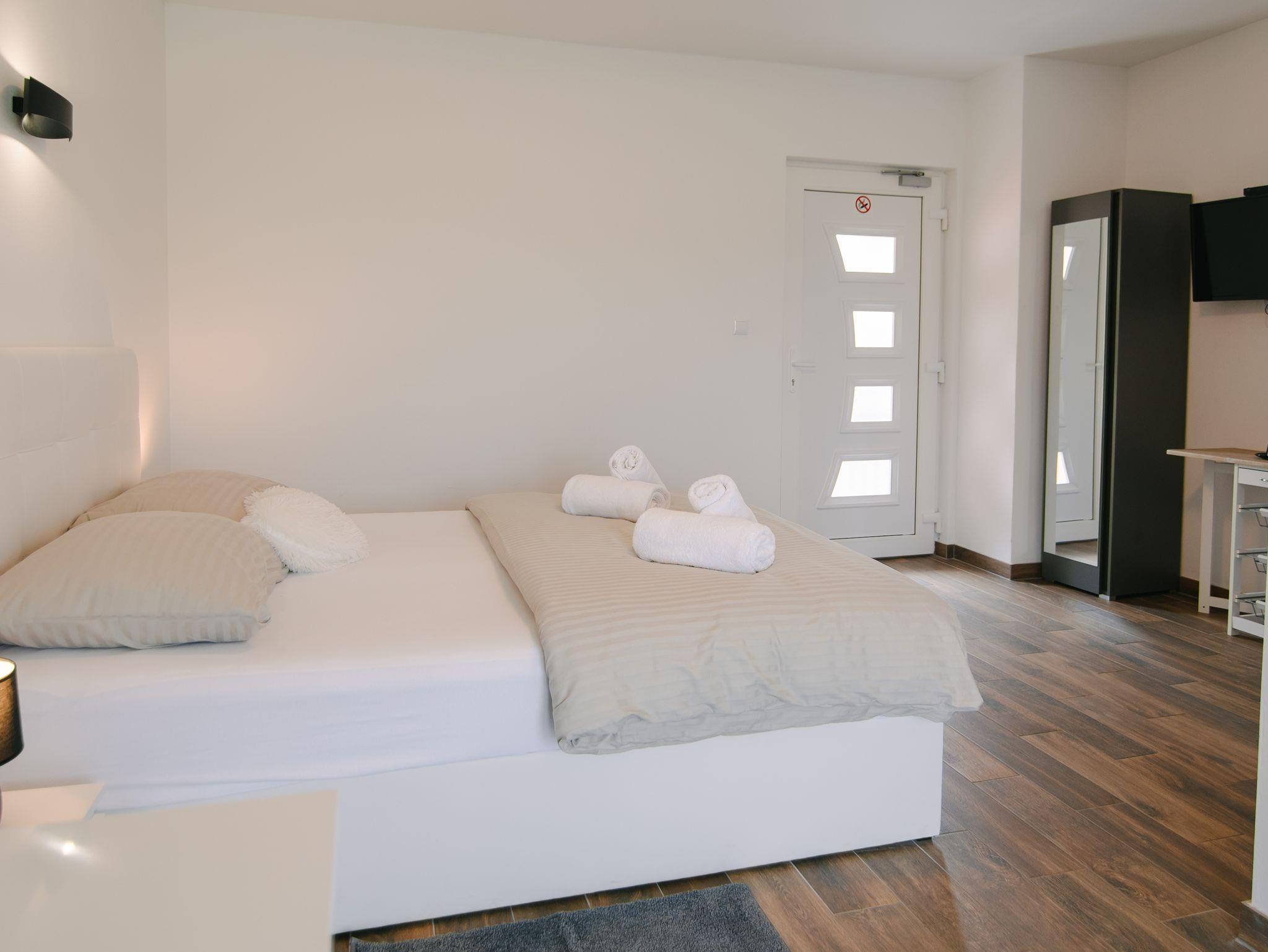 Zimmer bietet Platz für 2 Gäste. Die Betten sind in Schlafzimmern, die es 1 gibt, innerhalb einer Gesamtfläche von 22m2, angeordnet. Die Gäste haben einen eigenen Balkon zur Verfügung, auf der sie in warmen Sommernächten genießen können. Die reservierte Unterkunftseinheit ist ein Zimmer mit eigenem Badezimmer ohne die Möglichkeit der Nutzung einer Küche. IM PREIS INBEGRIFFEN: Kurtaxe, Endreinigung, Klimatisierung, Zentralheizung, Parkplatz, Internet, Föhn. Die Verfügbarkeit zusätzlicher Dienstleistungen in Ihrem reservierten Termin und die Preise derselben (falls nicht aufgeführt) müssen im Voraus überprüft werden. Zusätzliche Dienstleistungen die in der Zahlungsaufforderung nicht aufgeführt sind werden direkt beim Vermieter bezahlt, angenommen der Gast nutzt auch diese.